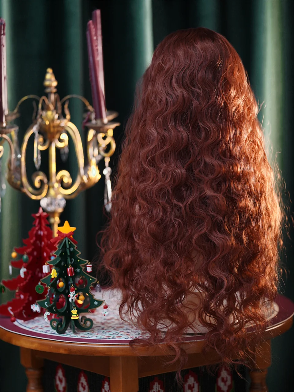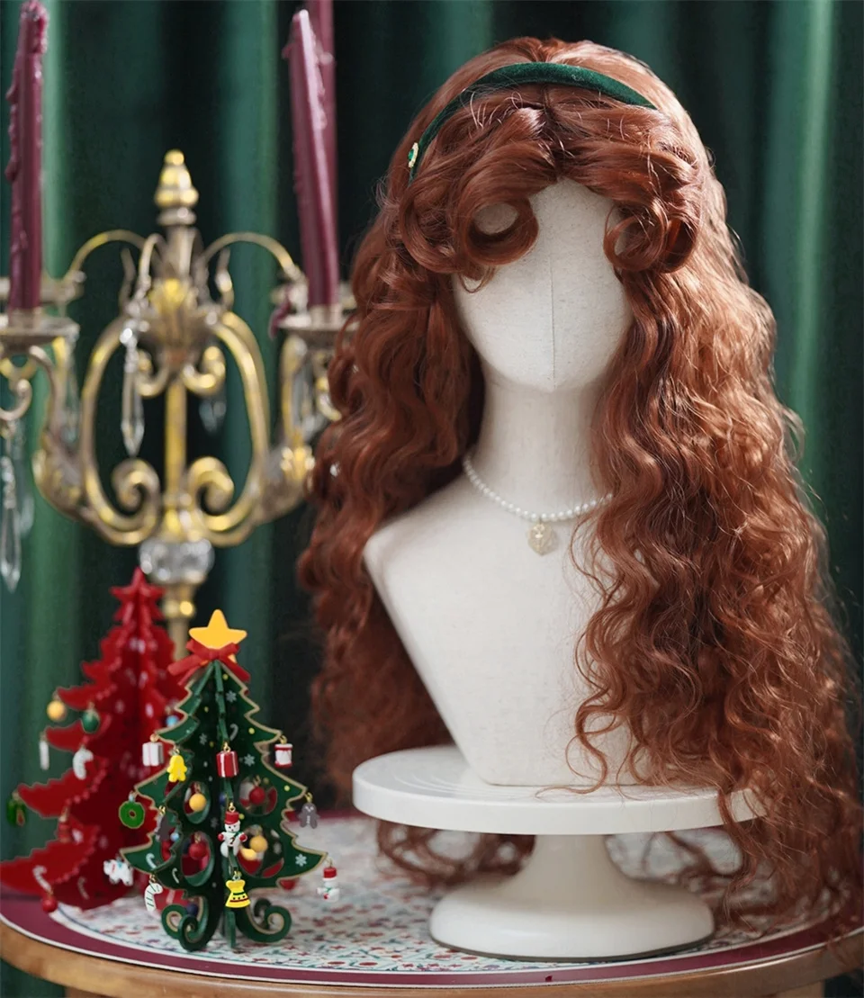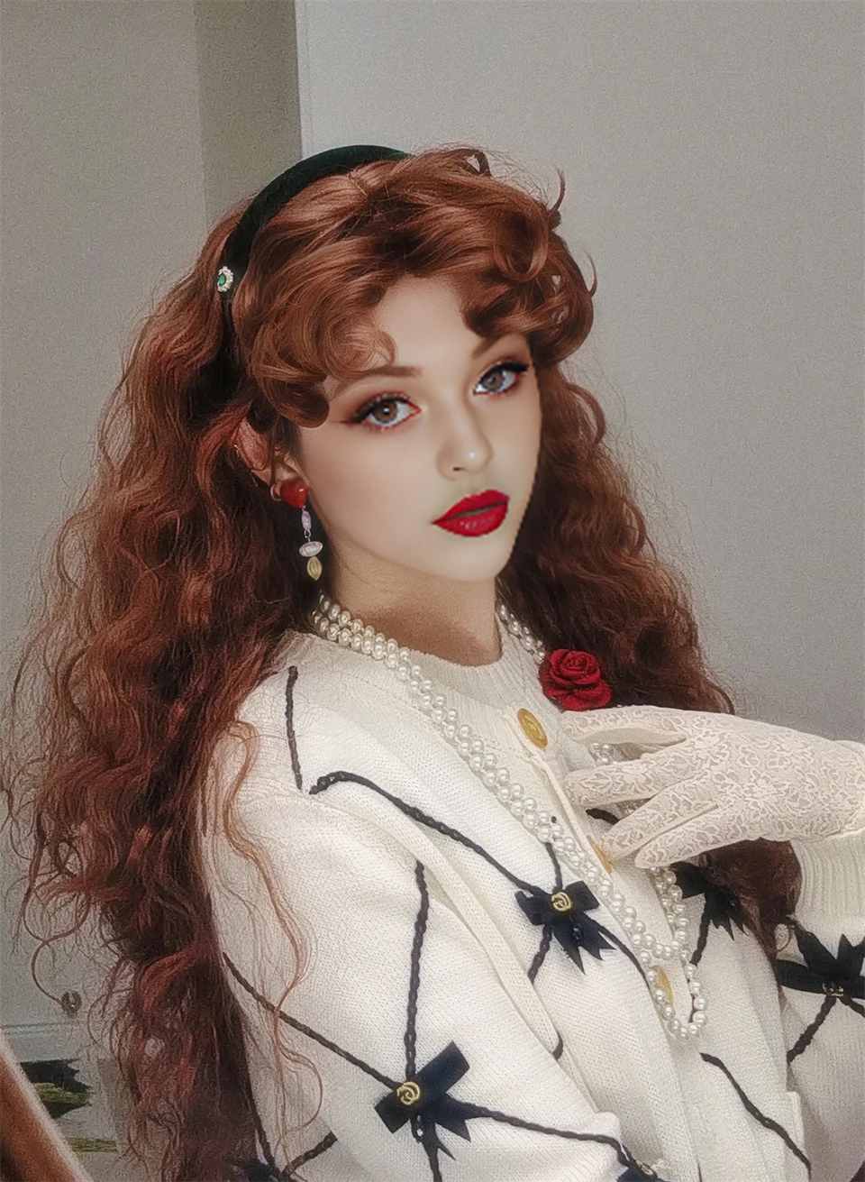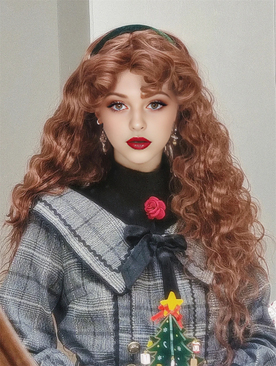 LM Red Brown Copper Ginger Short Curly Synthetic Wigs for Women Natural Wave Wigs with Bangs Heat Resistant Cosplay Hair