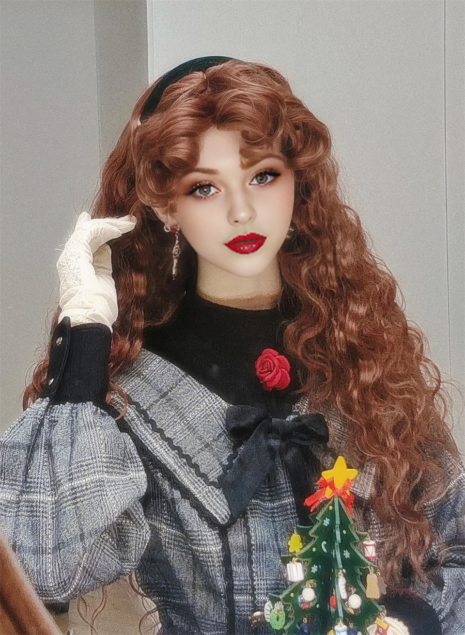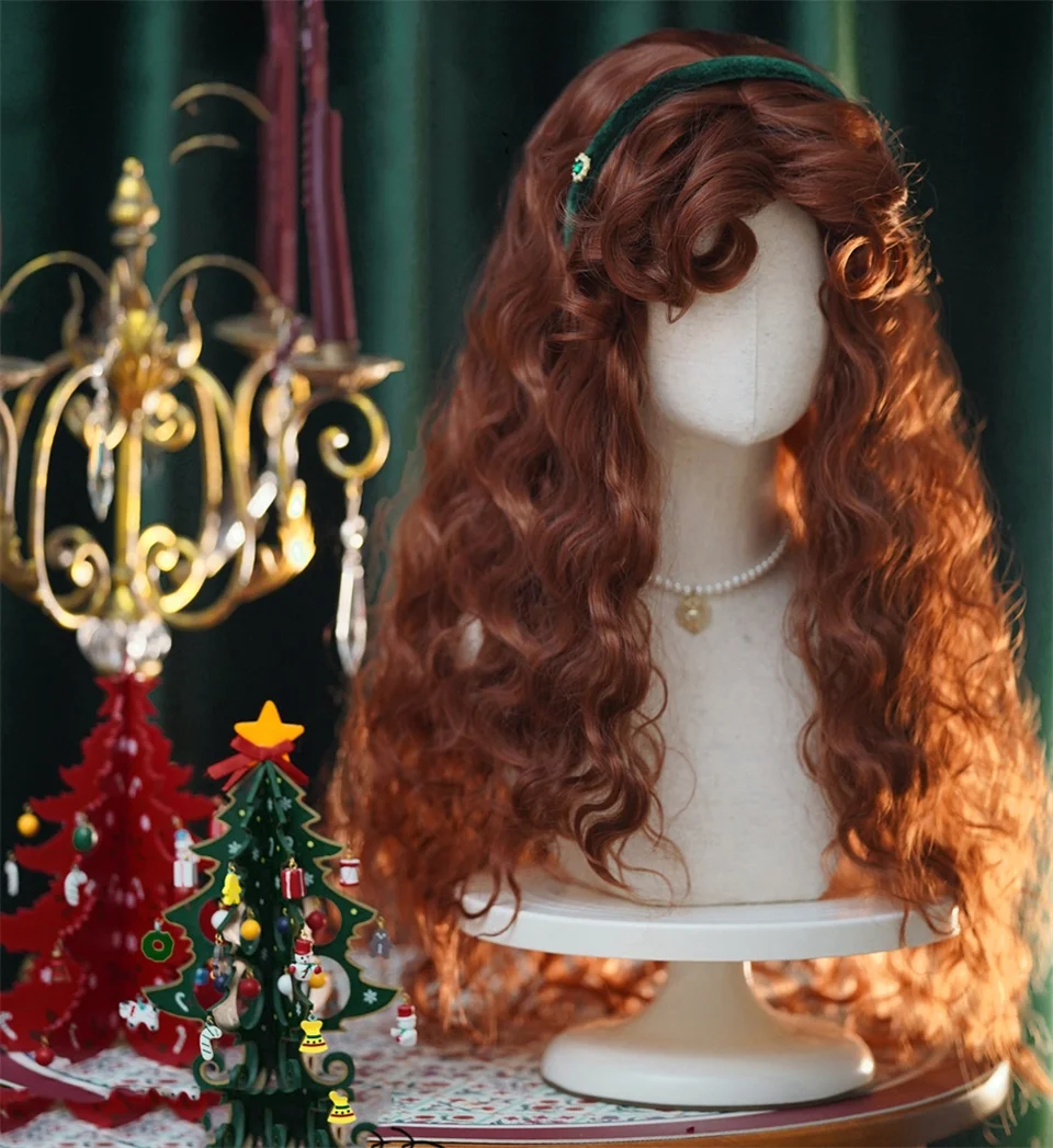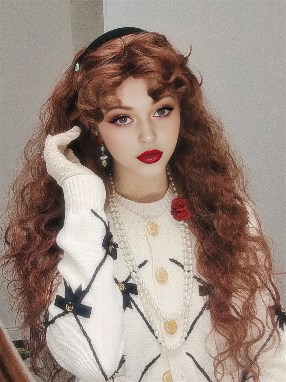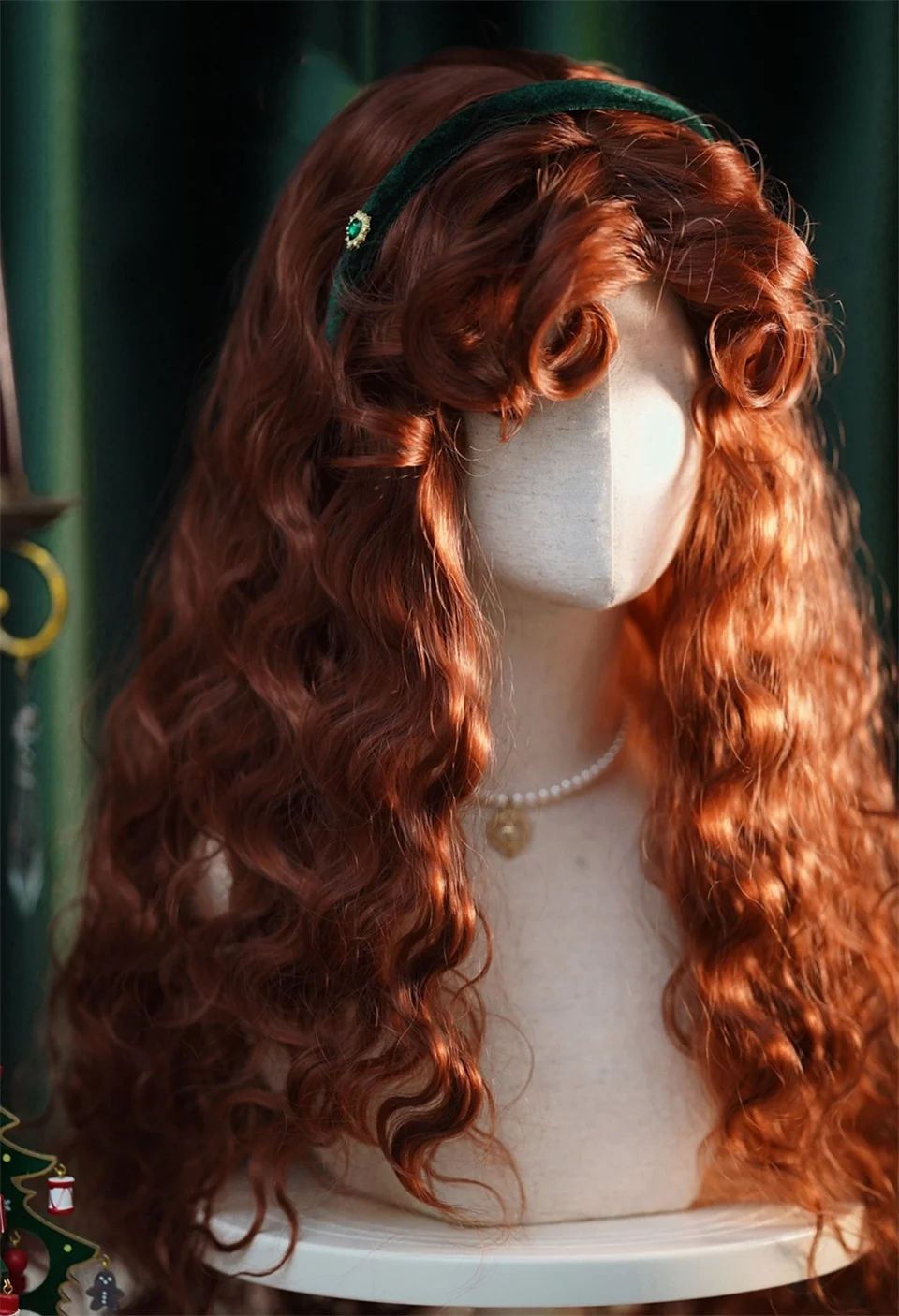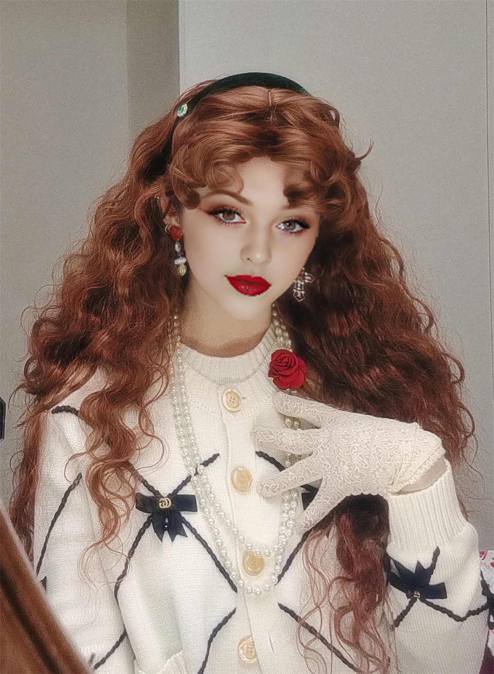 LM Red Brown Copper Ginger Short Curly Synthetic Wigs for Women Natural Wave Wigs with Bangs Heat Resistant Cosplay Hair