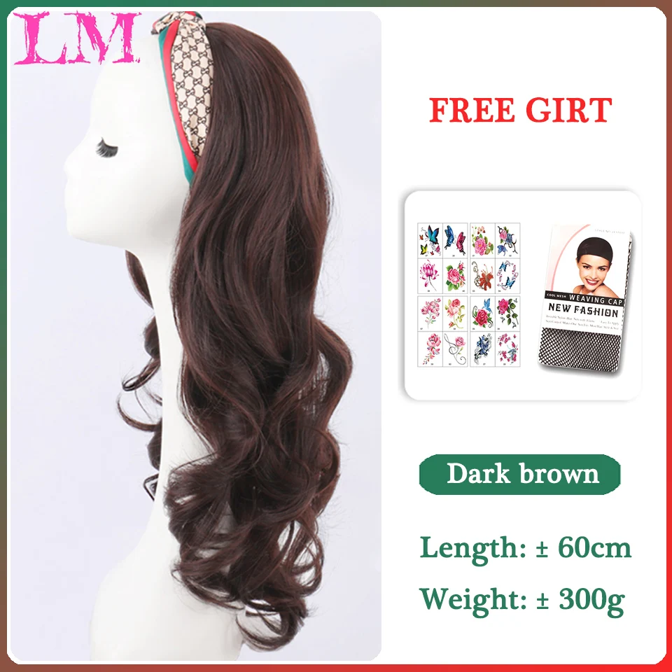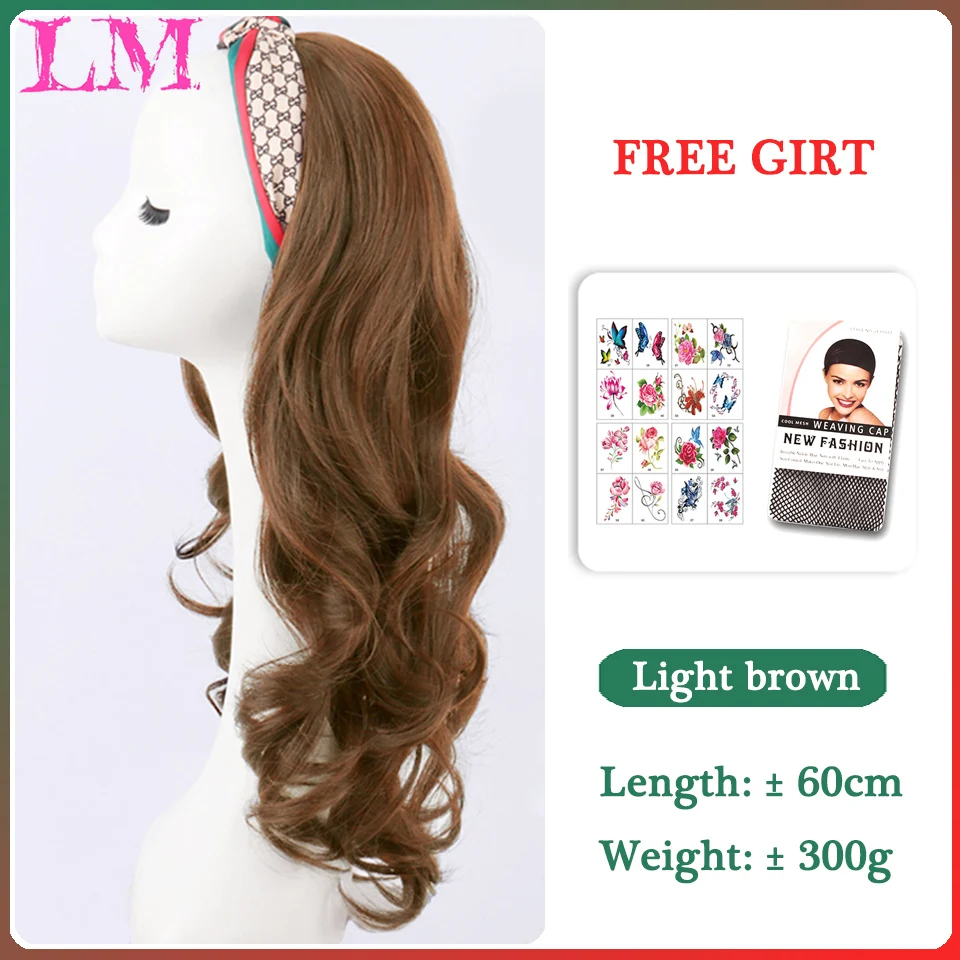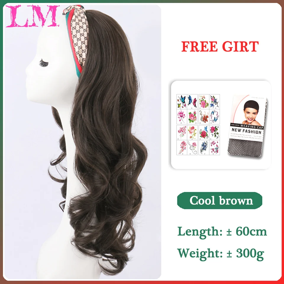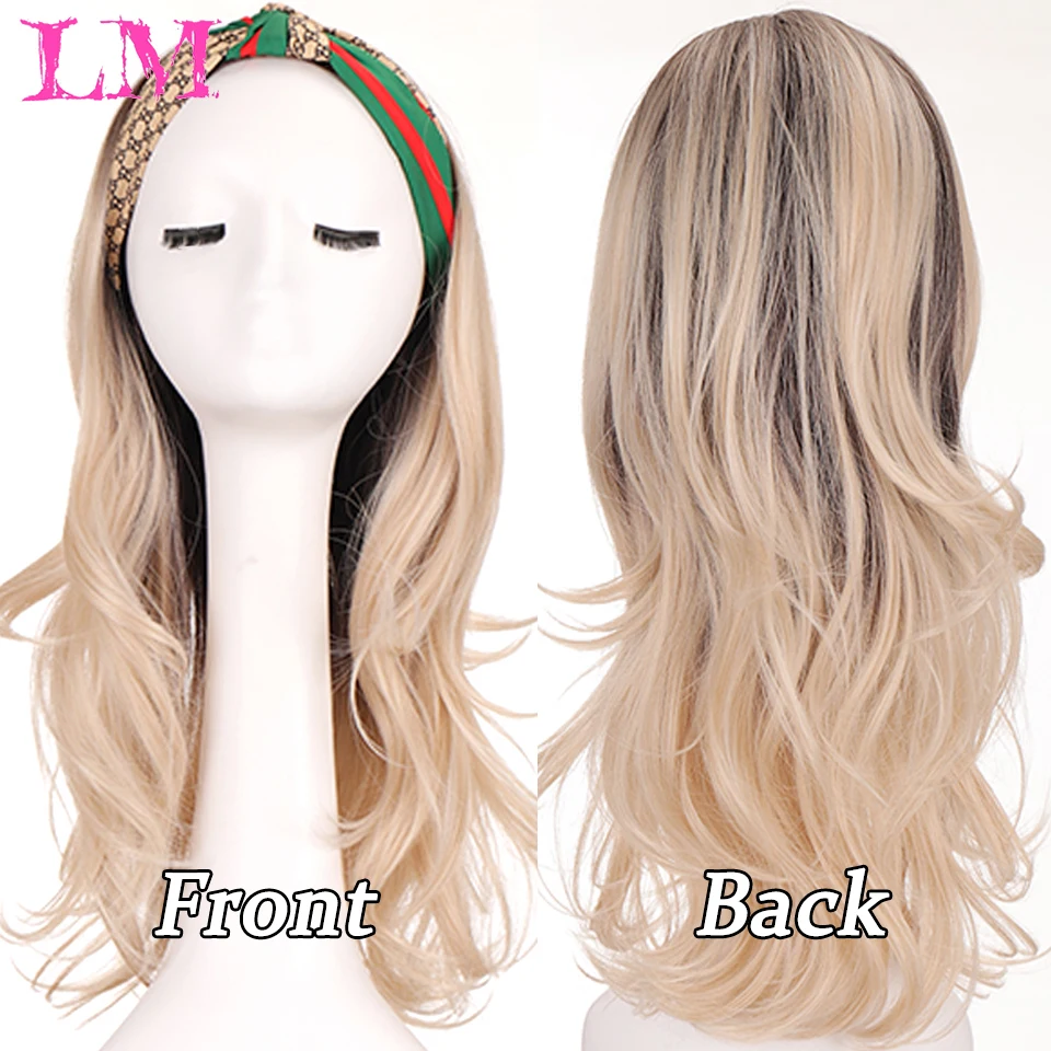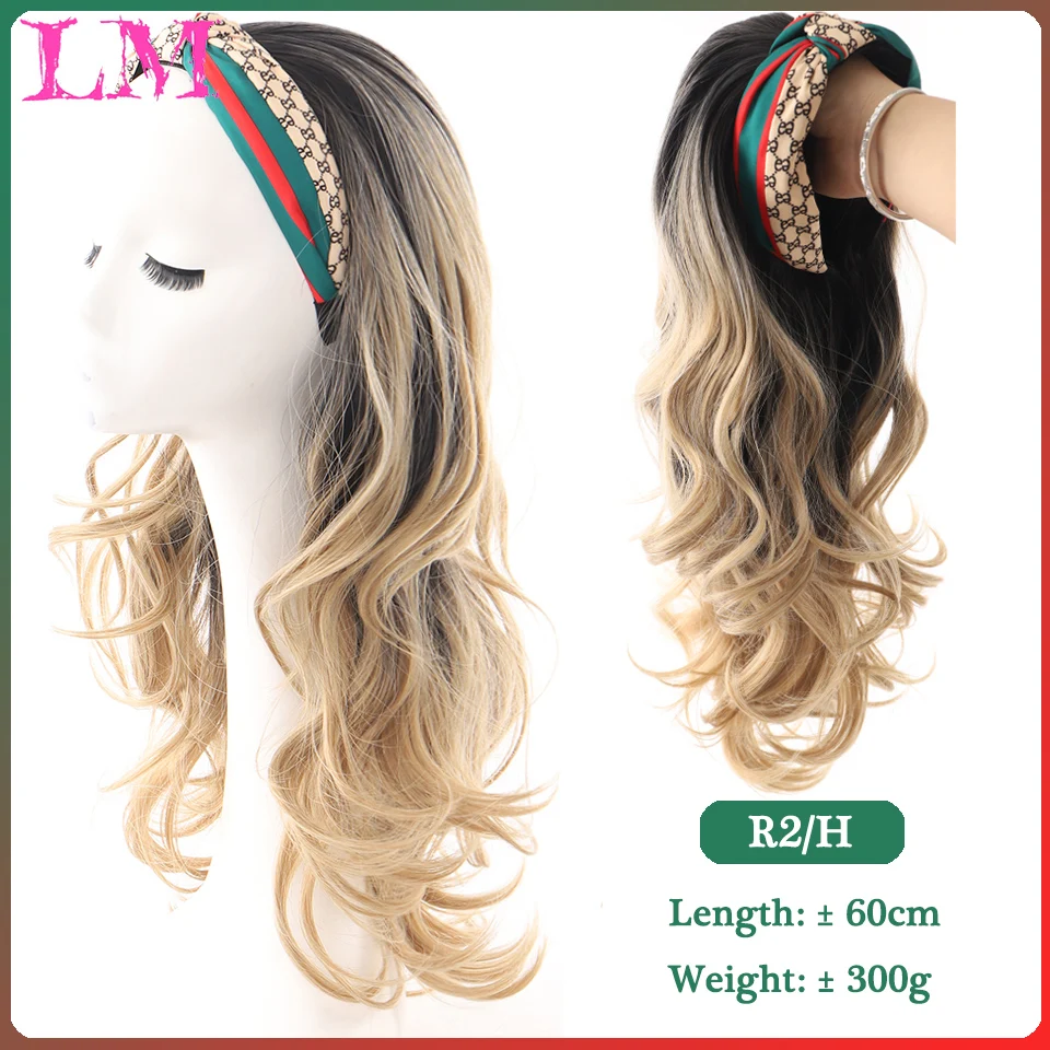 LM Synthetic Long Wavy Headband Wig Female Ombre Brown Black Blonde Cosplay Natural Heat Resistant Half Hair Wig for Women
