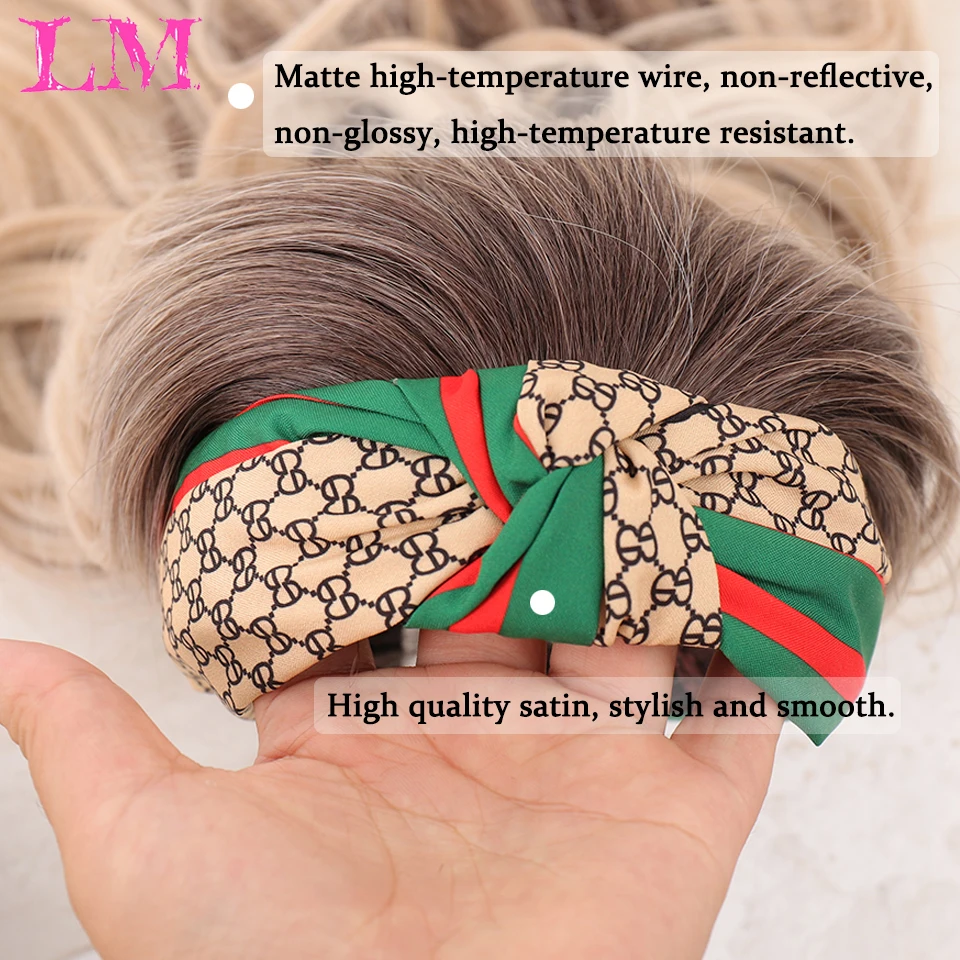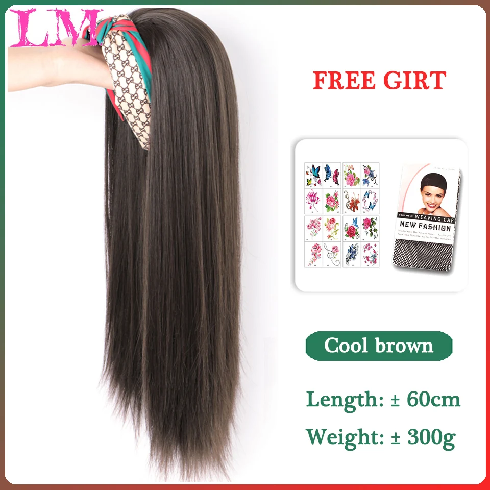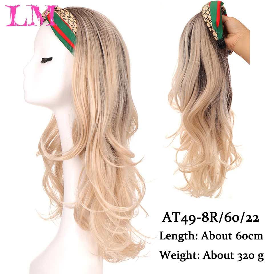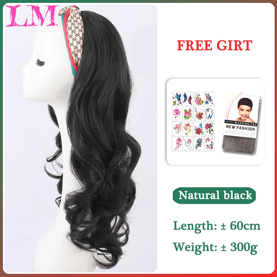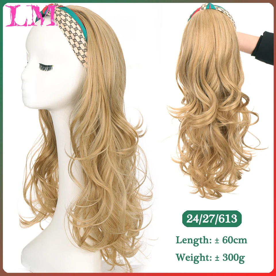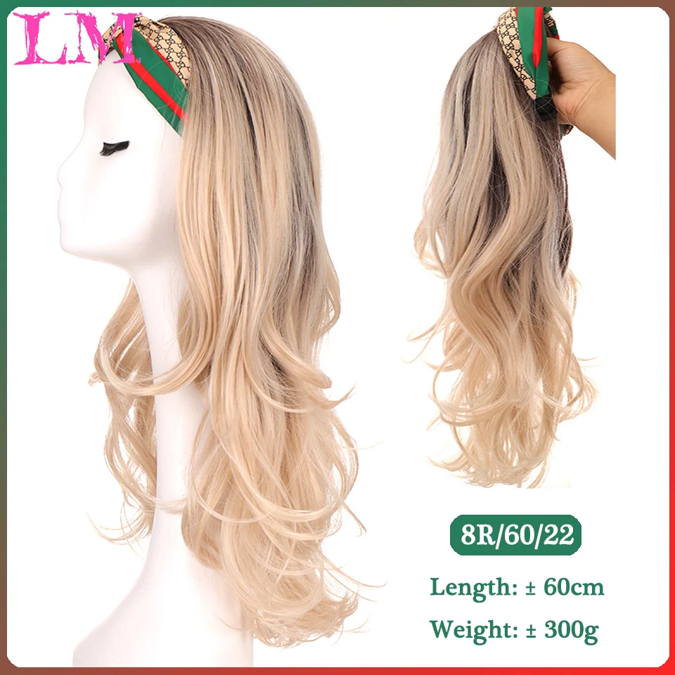 LM Synthetic Long Wavy Headband Wig Female Ombre Brown Black Blonde Cosplay Natural Heat Resistant Half Hair Wig for Women