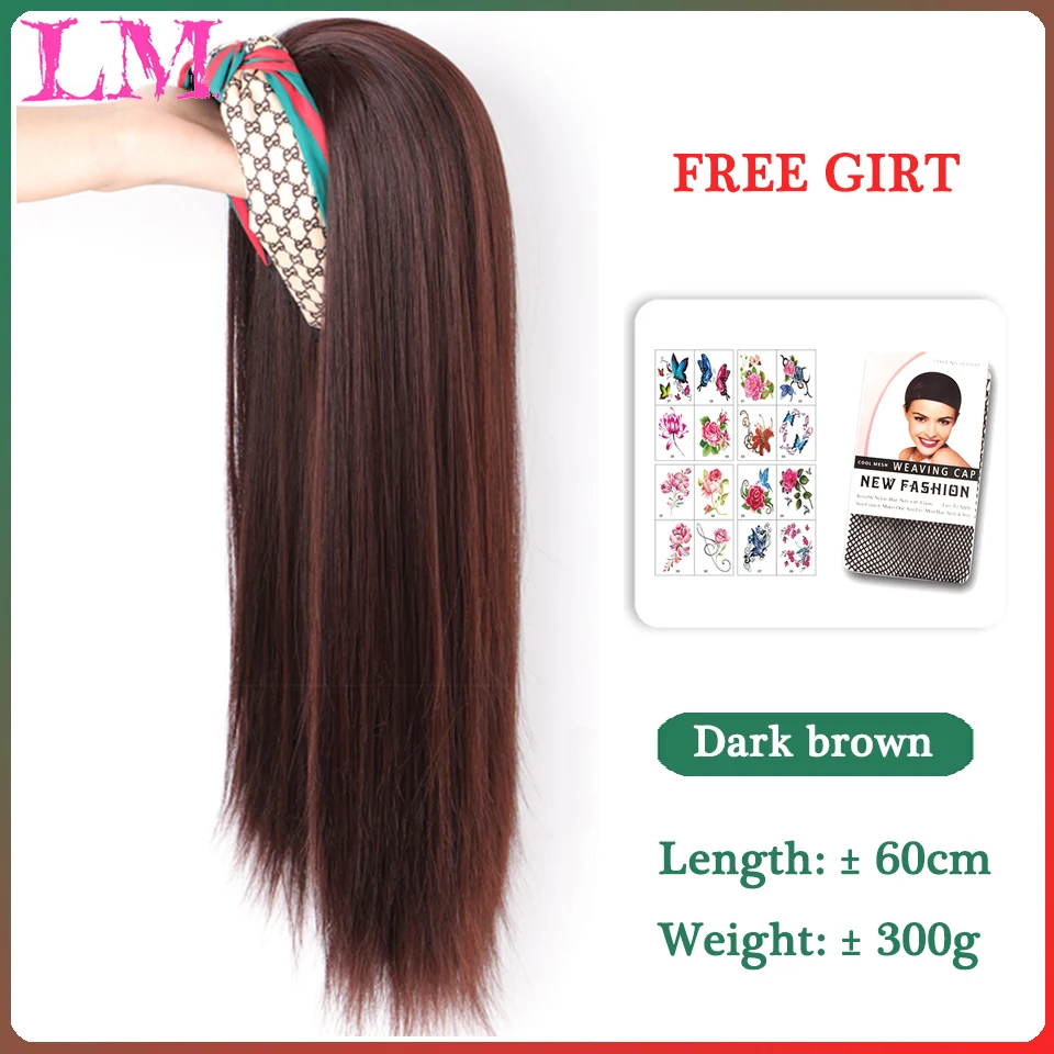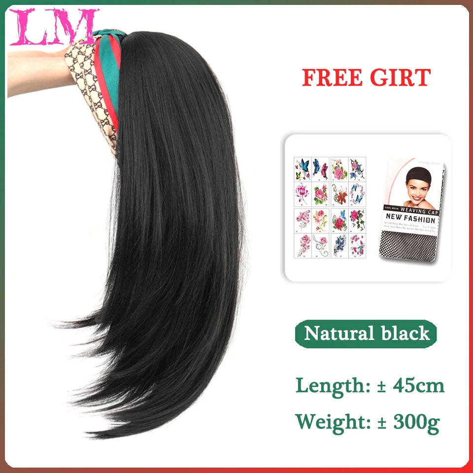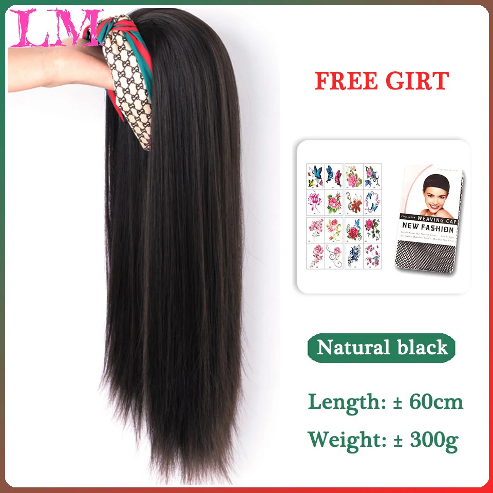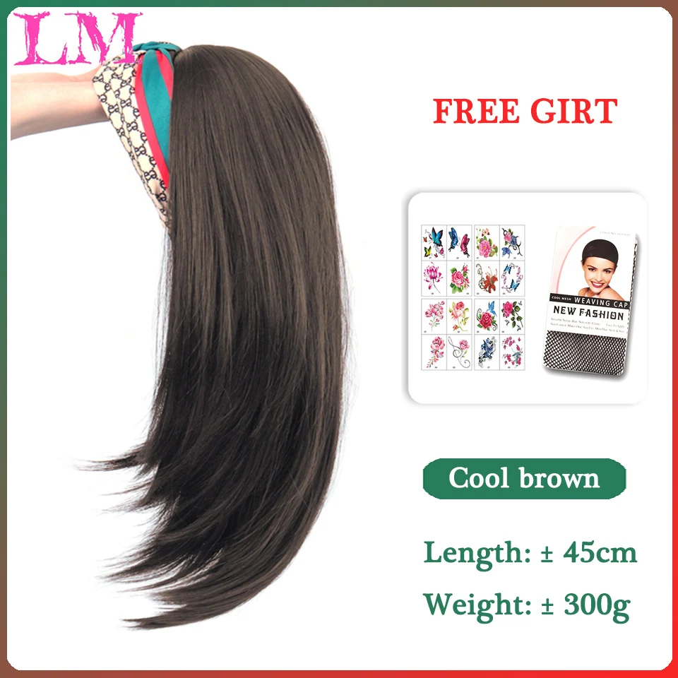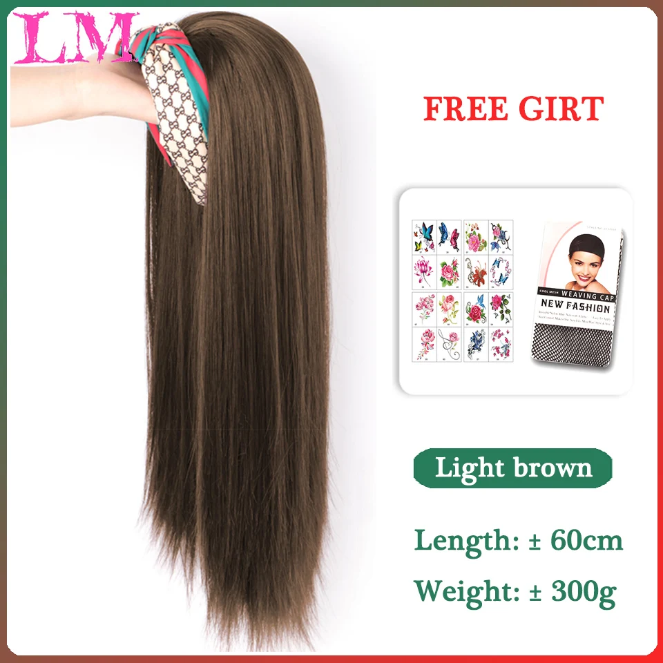LM Synthetic Long Wavy Headband Wig Female Ombre Brown Black Blonde Cosplay Natural Heat Resistant Half Hair Wig for Women