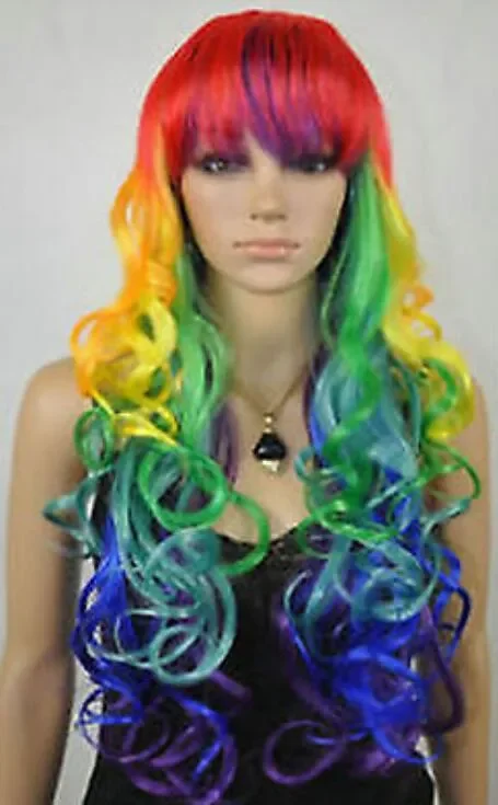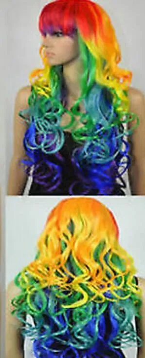 Lolita Long Wavy Curly Multi-Color Colorful Rainbow Full Hair Wig Cosplay Party Wigs