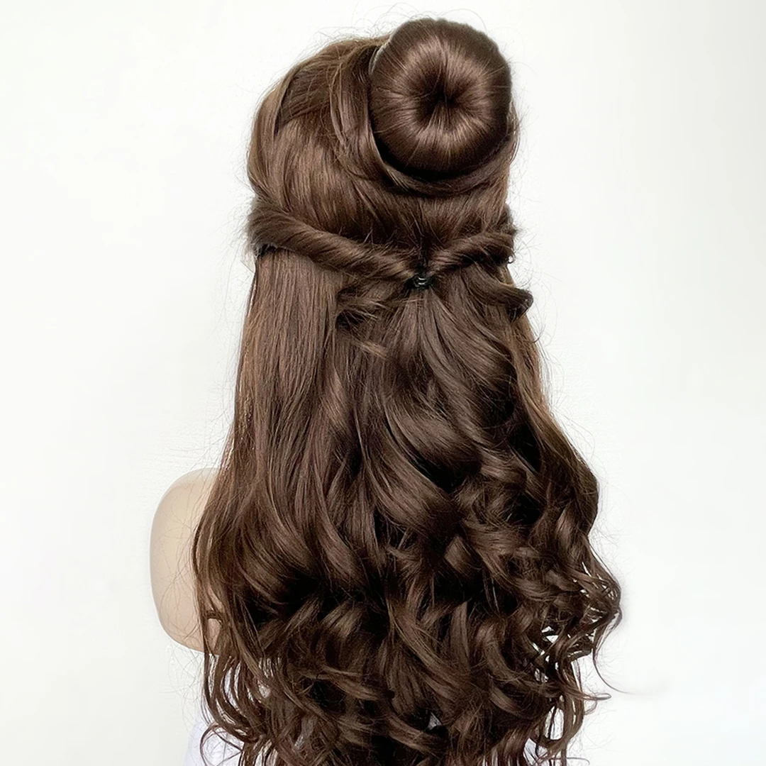 Long 26Inches Wavy Dark Chestnut Brown 13x4 Transparent Lace Front Women Wigs with Baby Hair Glueless Systhetic Hair Wigs