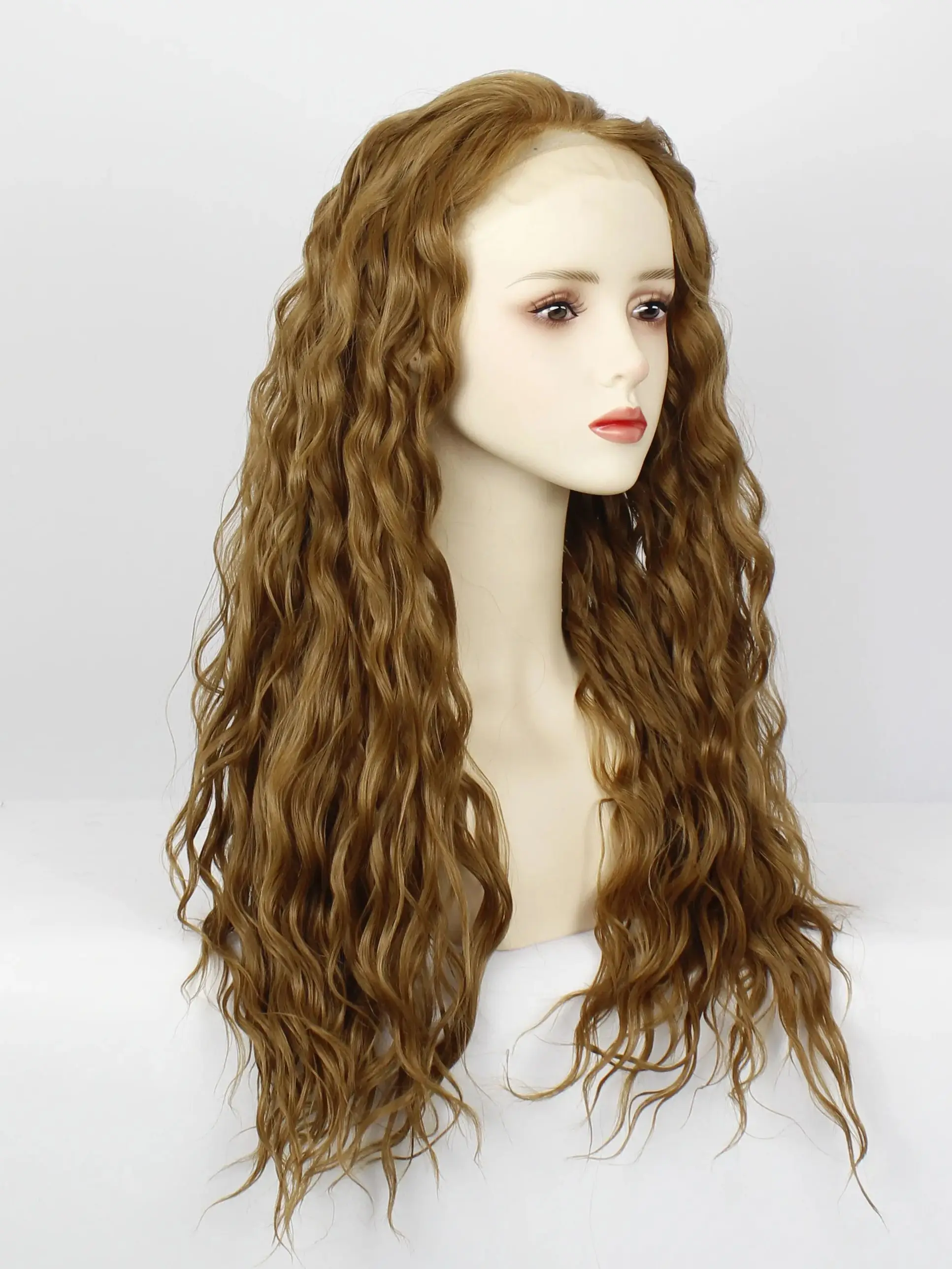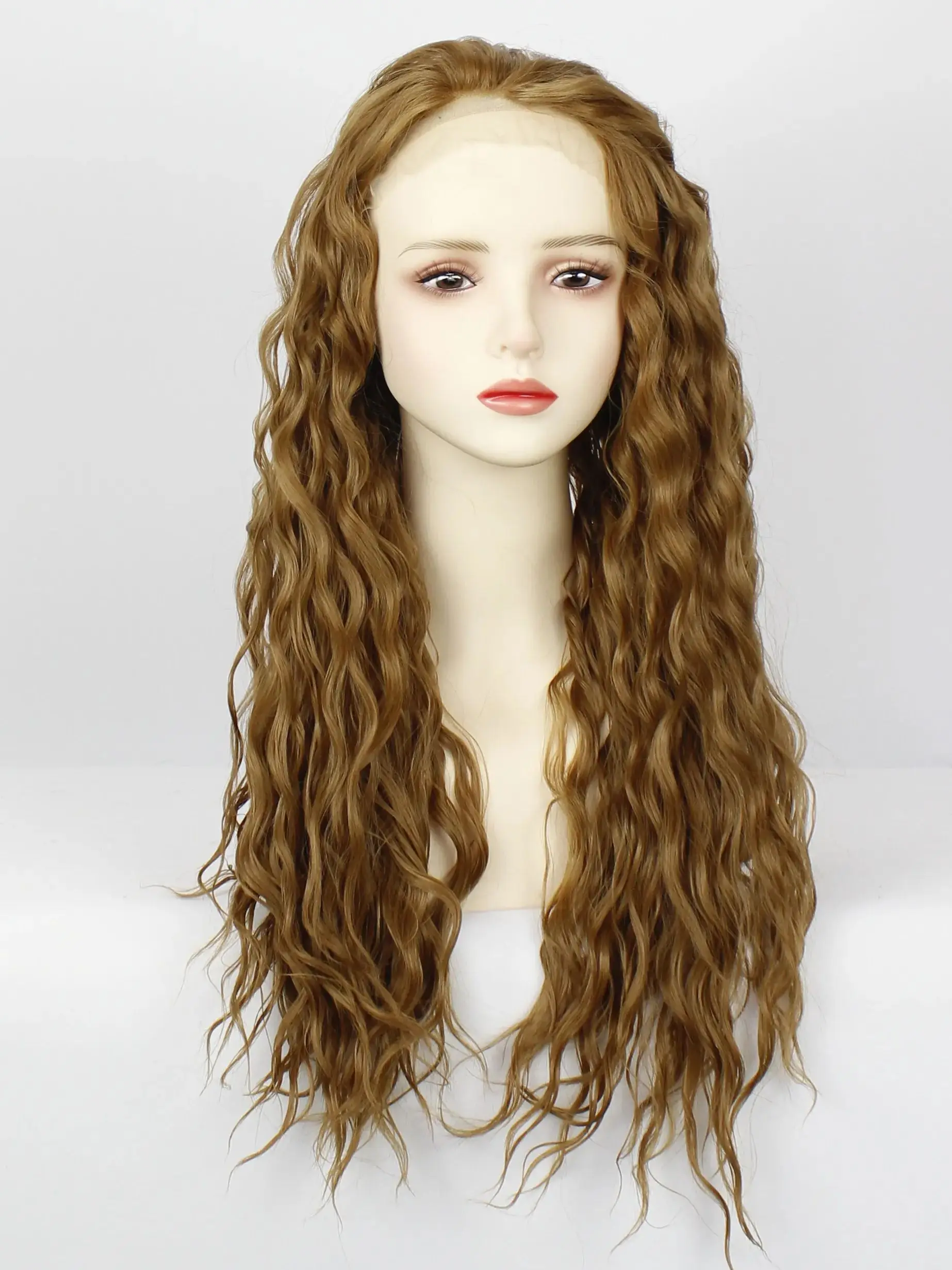 Long Brown Curly Transparent Lace Synthetic Human Hair Front Curly Lace Female Wig