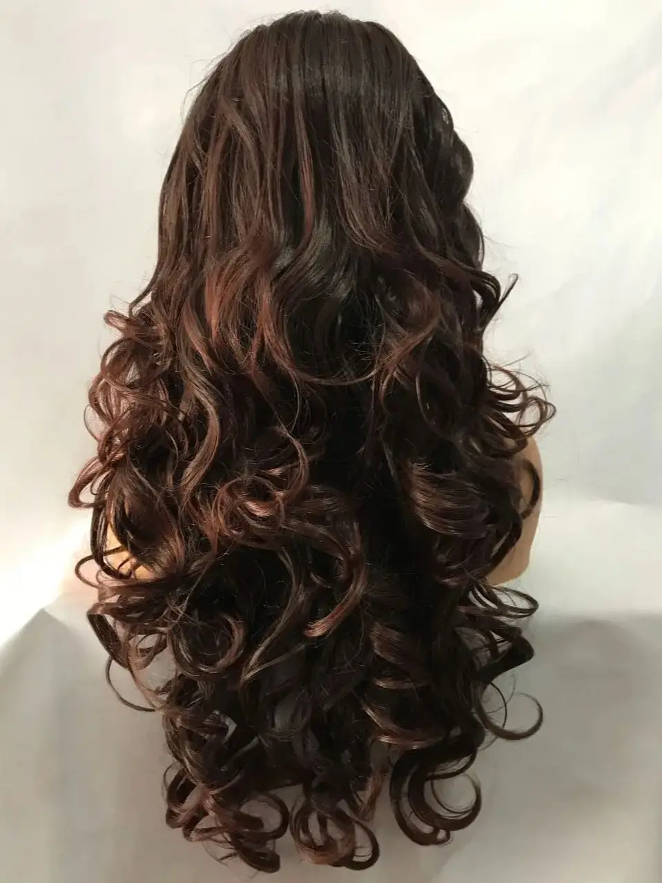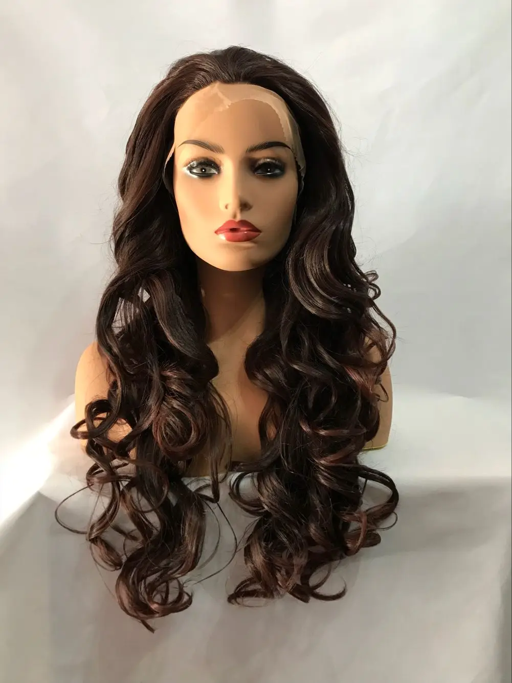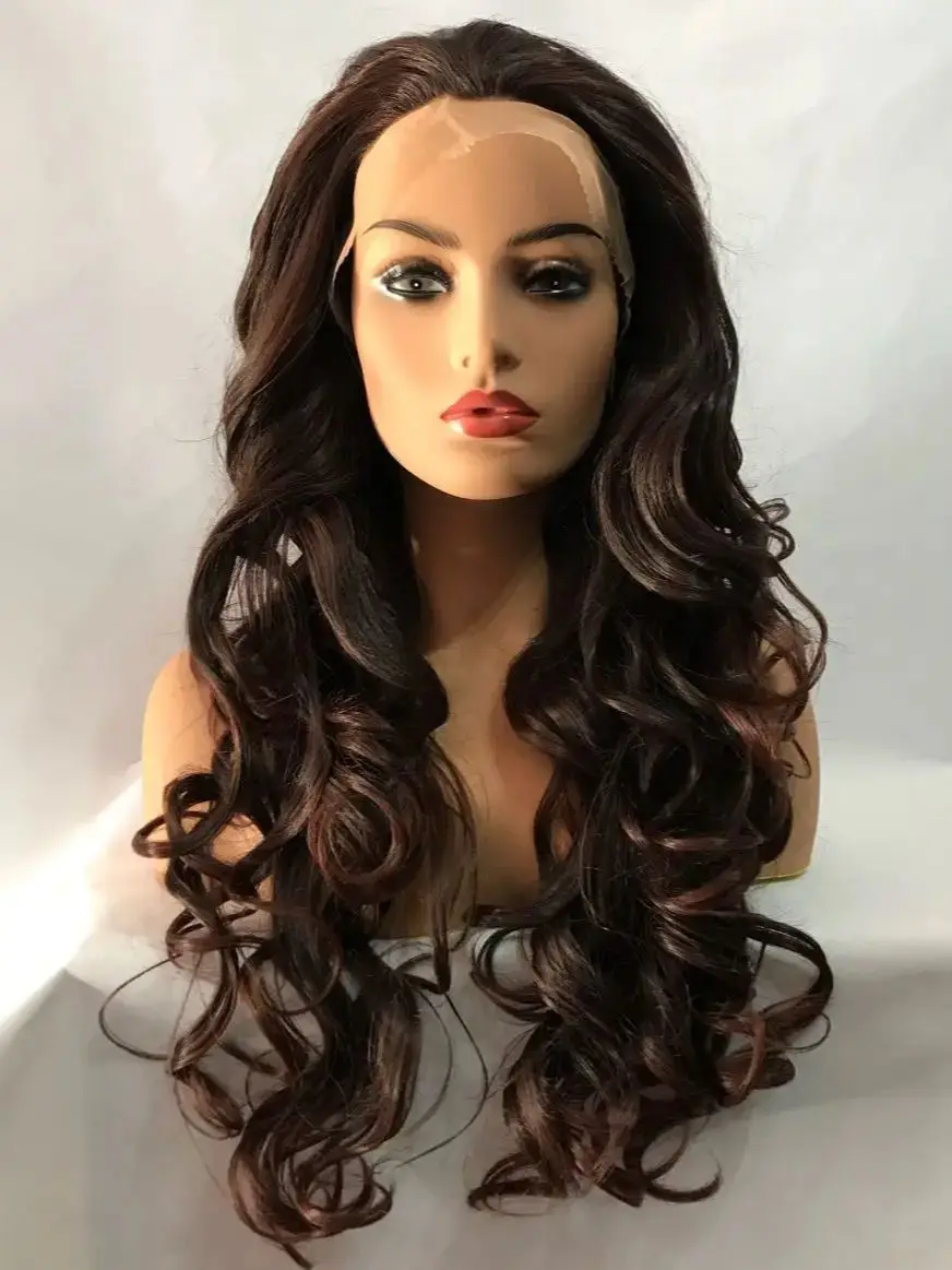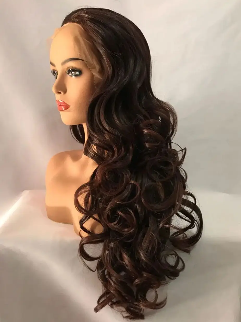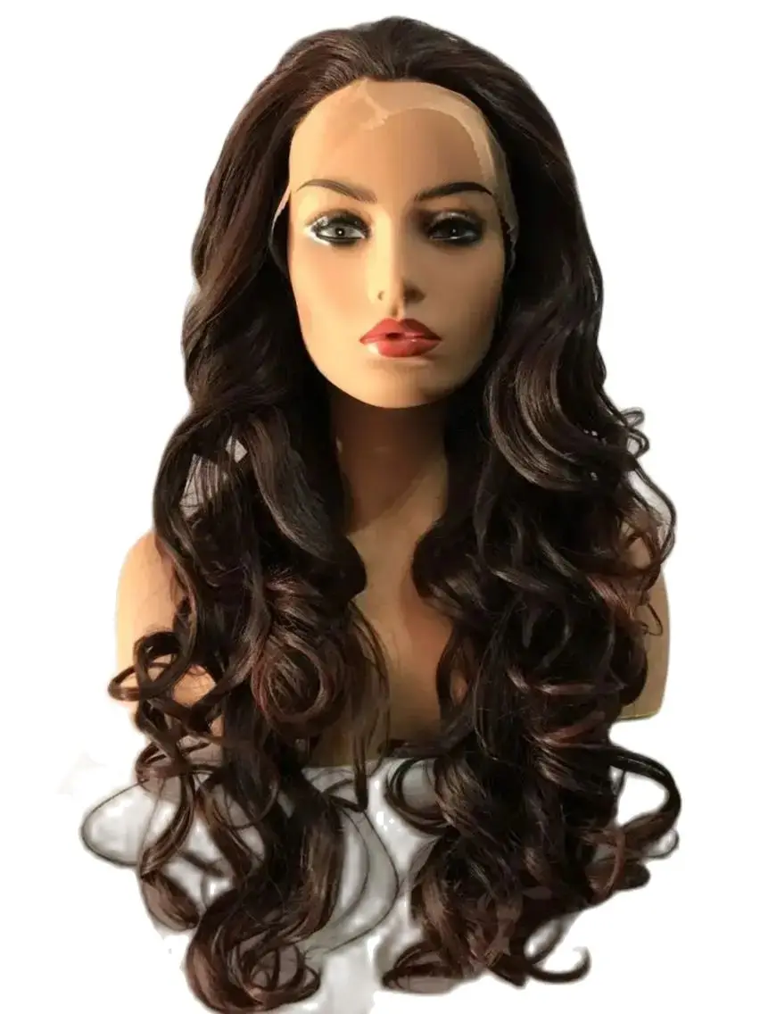 Long Dark brown Curl Loose Transparent Lace Front Hair Synthetic Daily Heat Resistant Fibre Female Wig