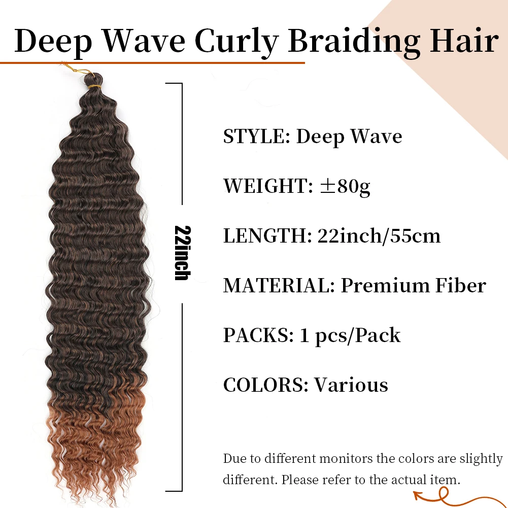Long Deep Wave Curly Synthetic Braiding Hair Ocean Wave 22 inch Crochet Hair Soft Curly Crochet Hair For Women