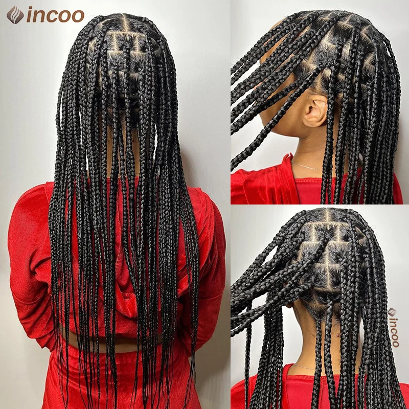 Large Box Braided Wigs Synthetic Glueless Full Lace Front Braided Wigs For Black Women 36 Inch Jumbo Braids Cornrows Wigs Onsale