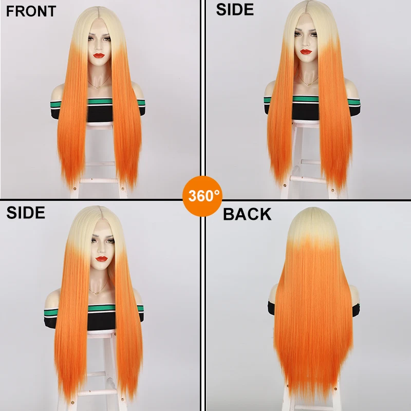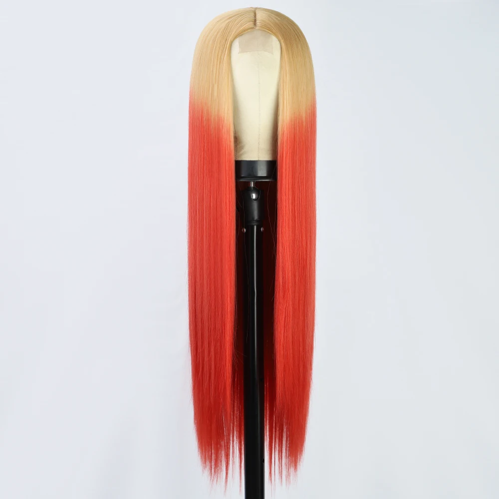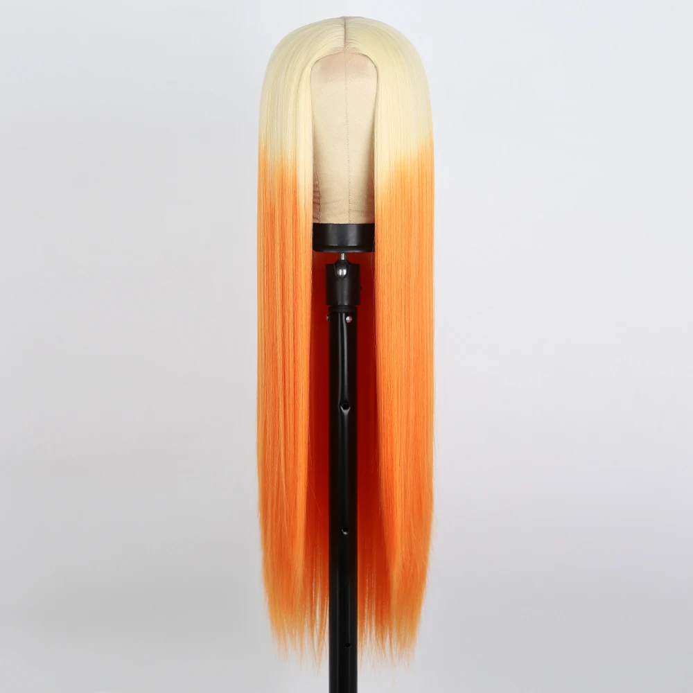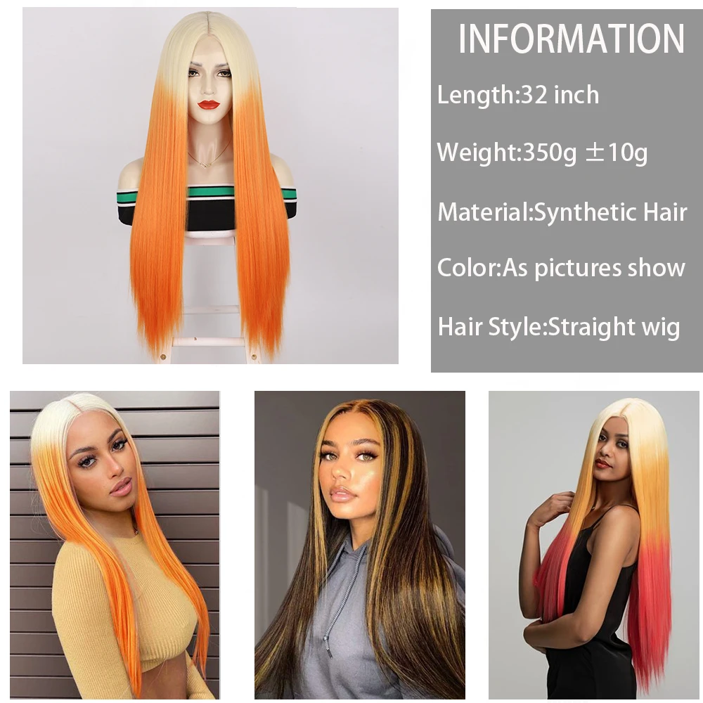 Long Straight Hair Wigs Blond Ginger Orange Middle Part Wig for Women Ombre Synthetic Cosplay Wig Heat Resistant Fiber Fake Hair