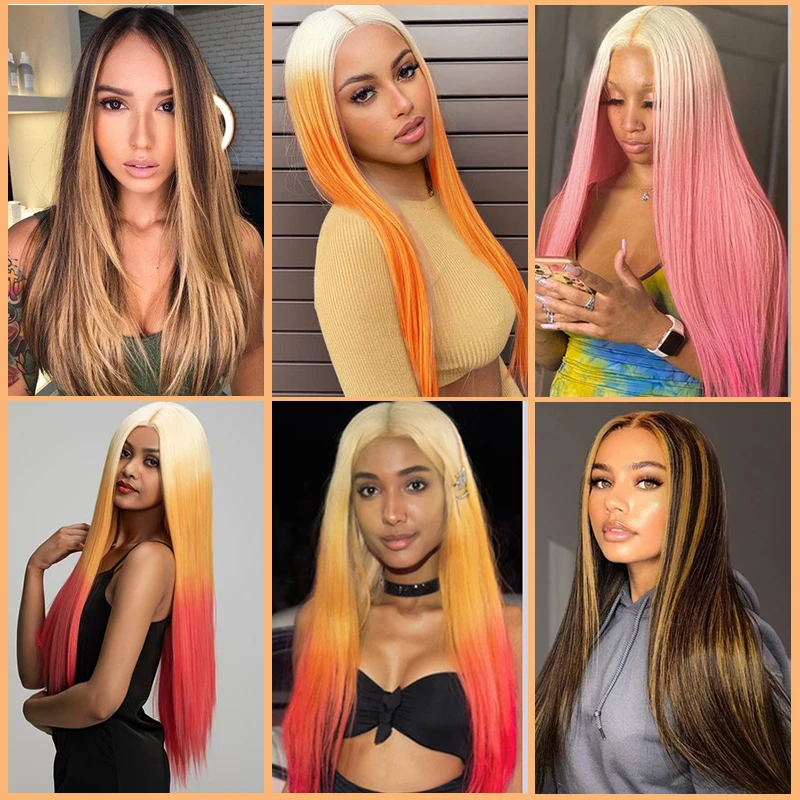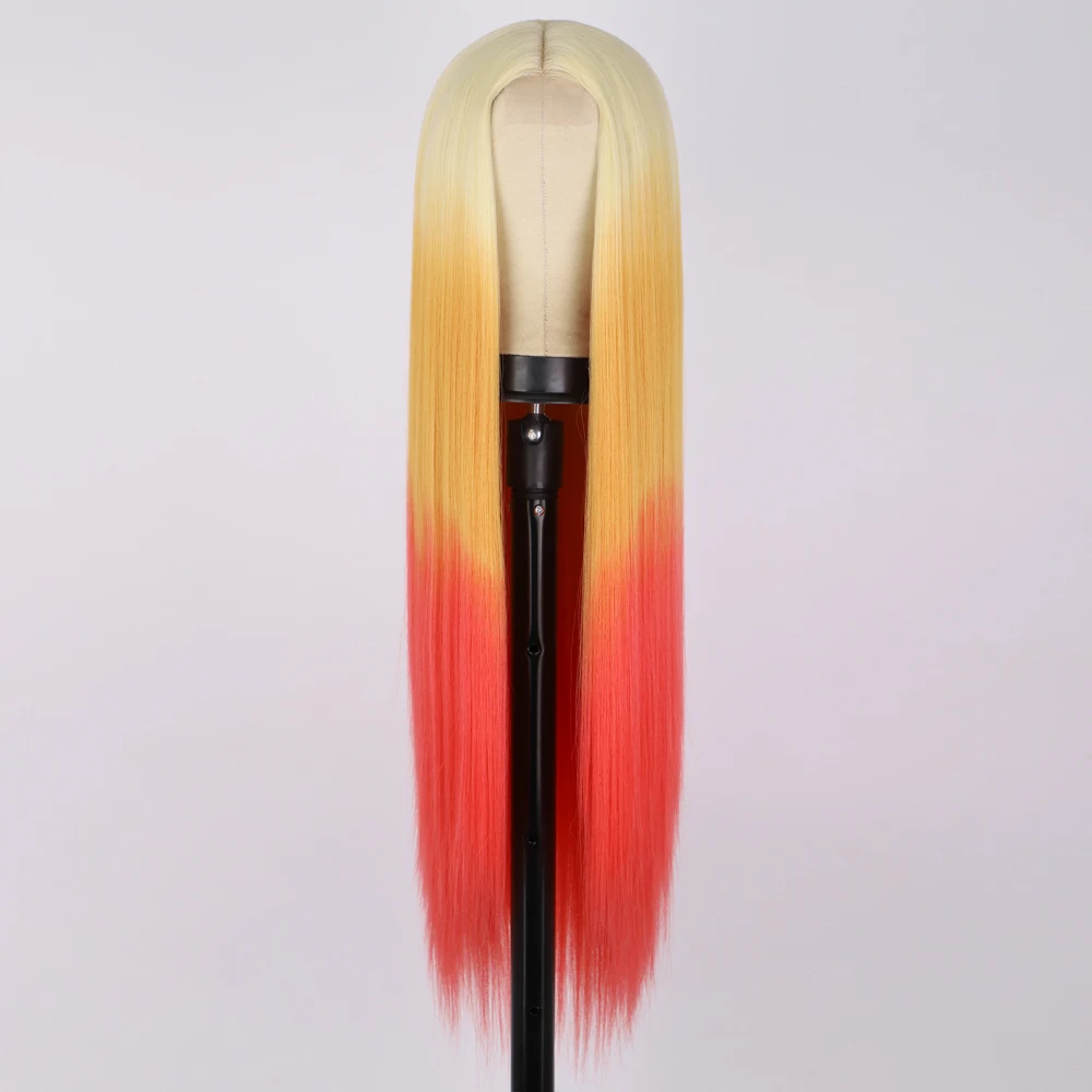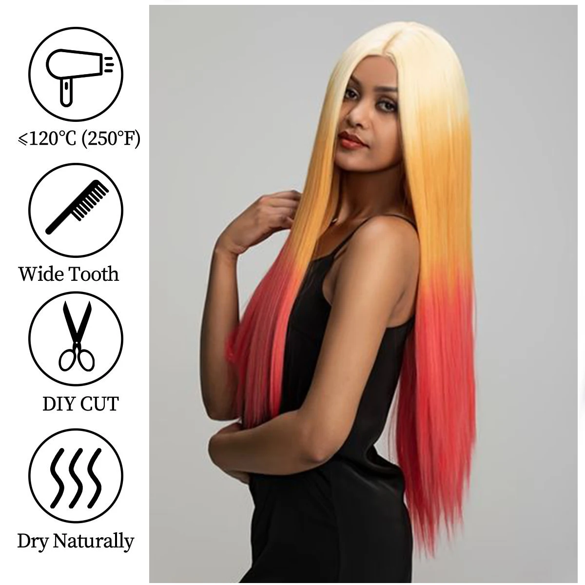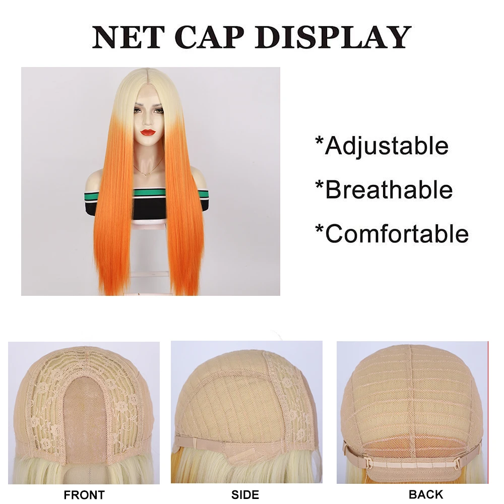 Long Straight Hair Wigs Blond Ginger Orange Middle Part Wig for Women Ombre Synthetic Cosplay Wig Heat Resistant Fiber Fake Hair