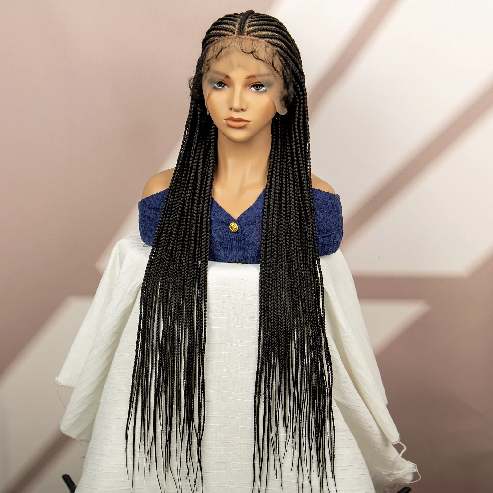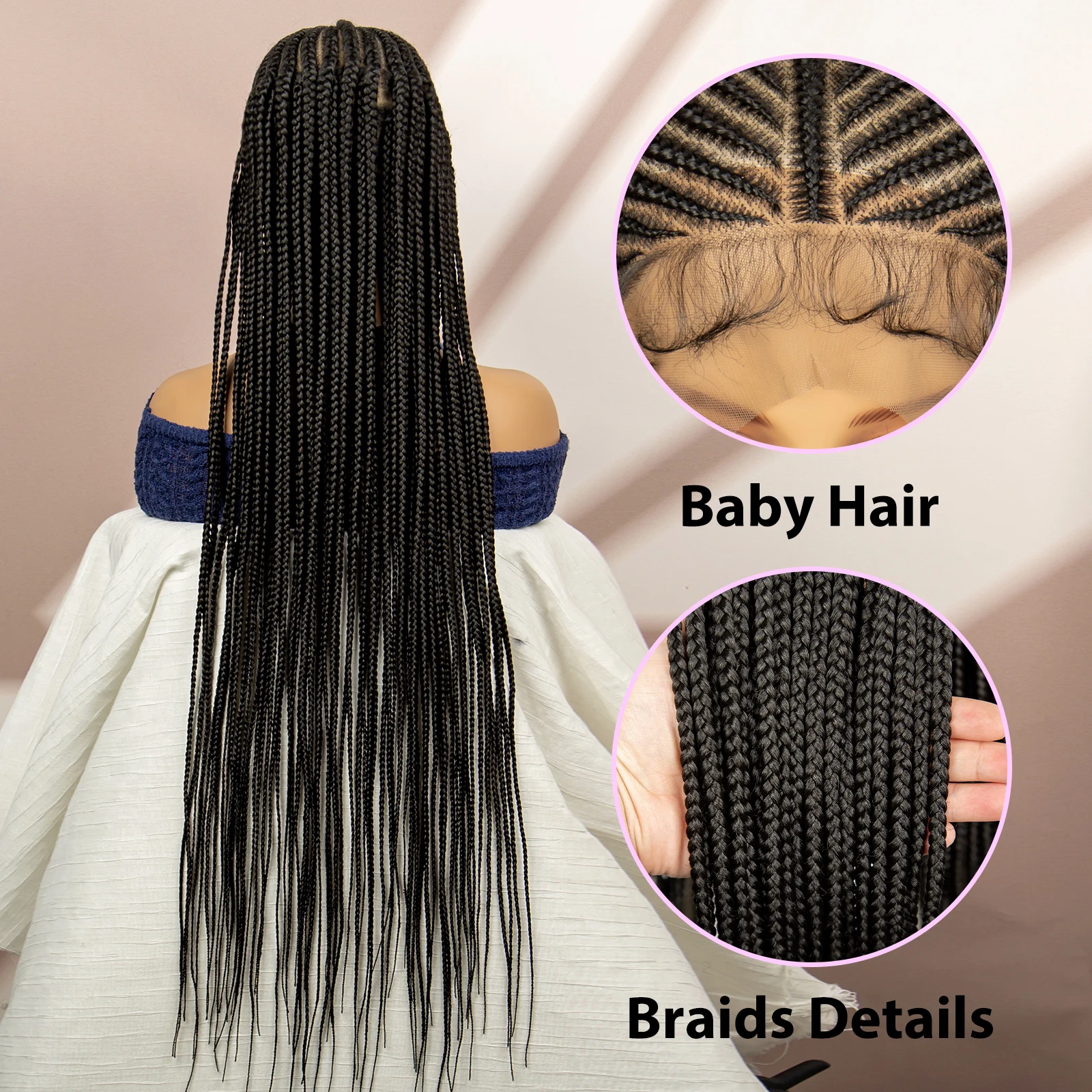 Long Synthetic Braiding Wigs 36 inches Cornrow Braided Wigs with Baby Hair Synthetic Afro Braids Wigs for Black Women