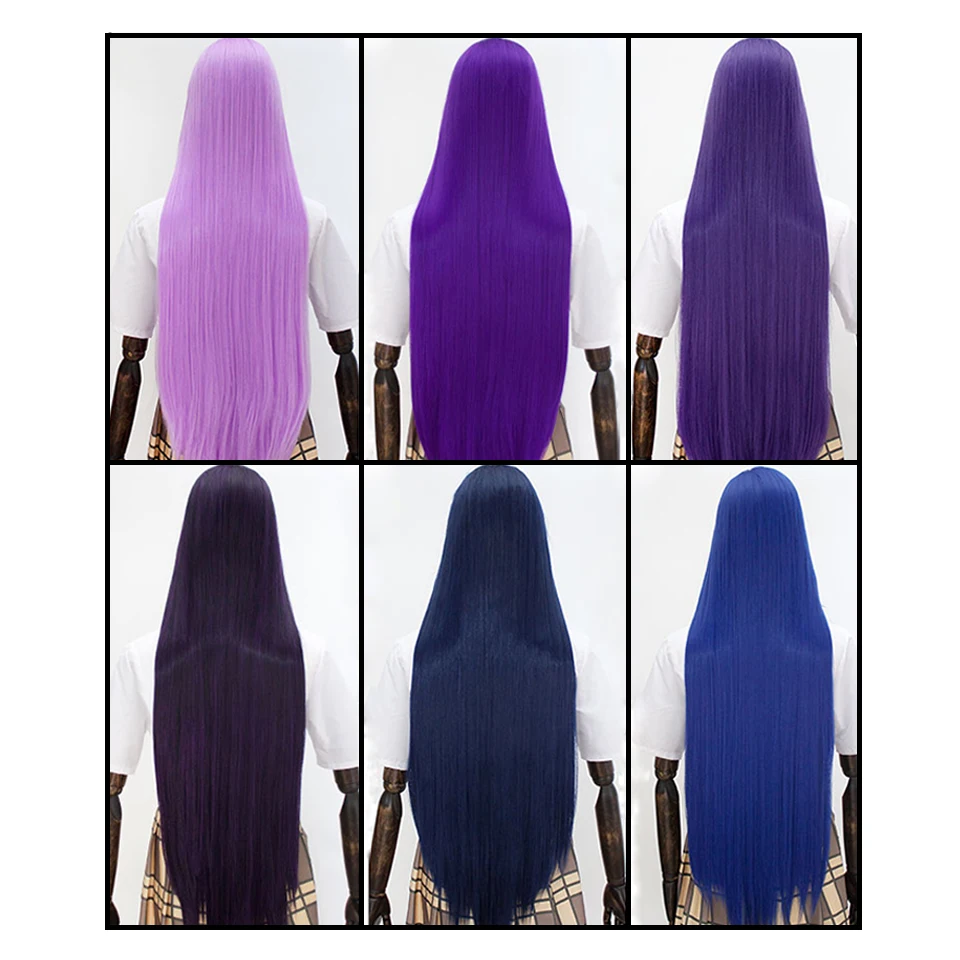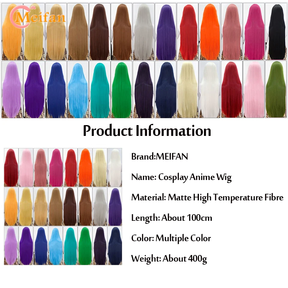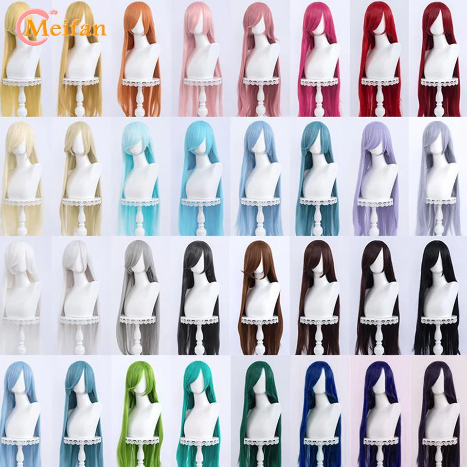 MEIFAN Long Straight Lolita 100CM Wig Synthetic Hair Anime Cosplay Black Brown Pink Purple Wigs for Black/White Women