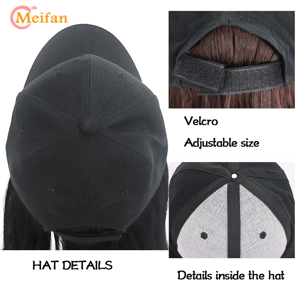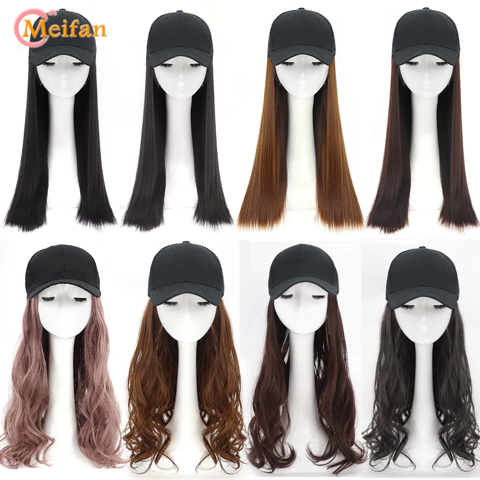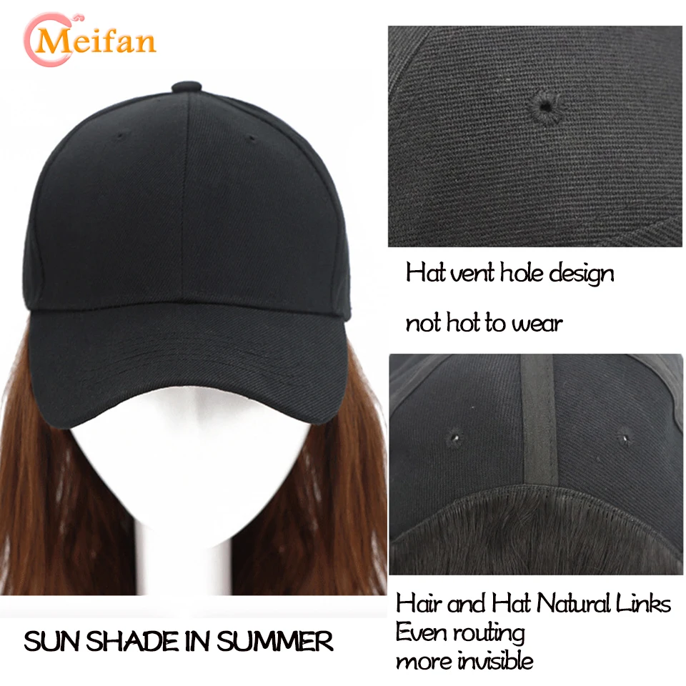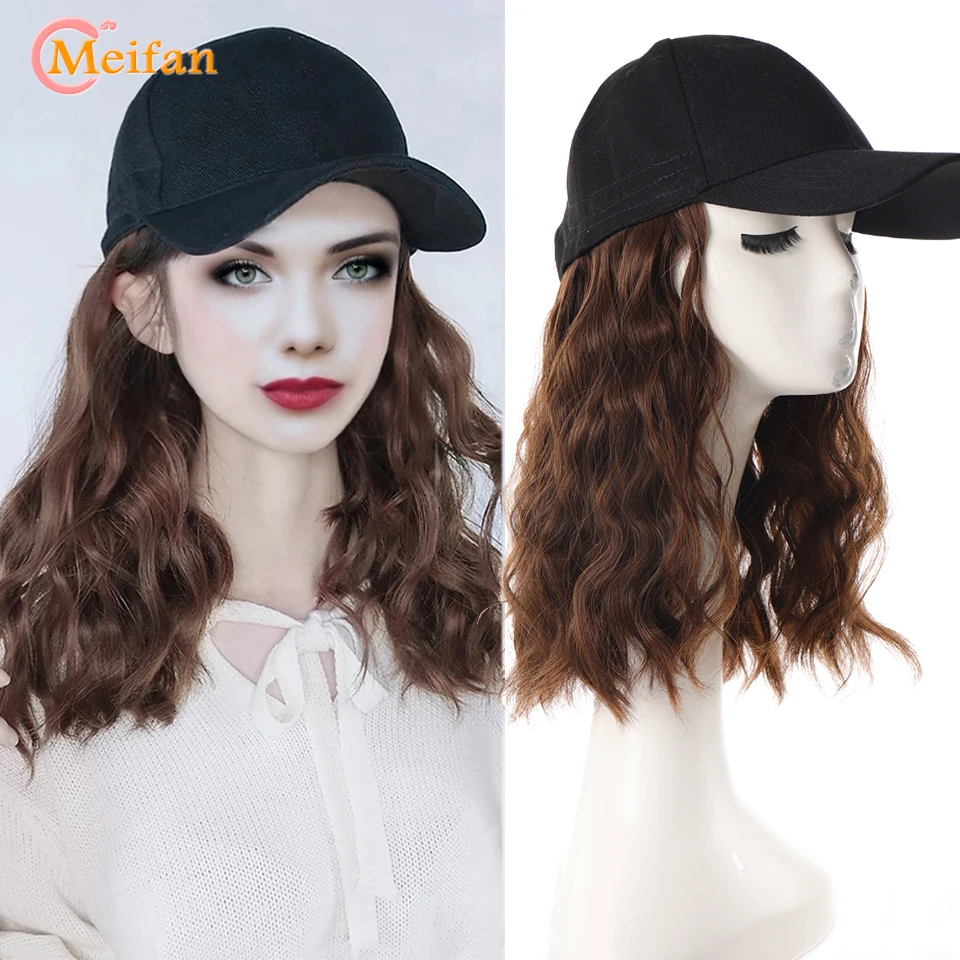MEIFAN Long Synthetic Fluffy Natural Wave Wavy Curly Hair Wigs with Hat Baseball Cap Naturally Connect Adjustable Hat Wig