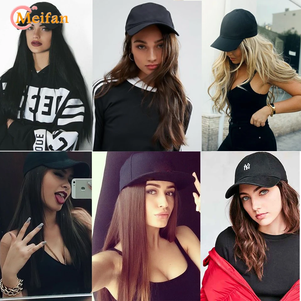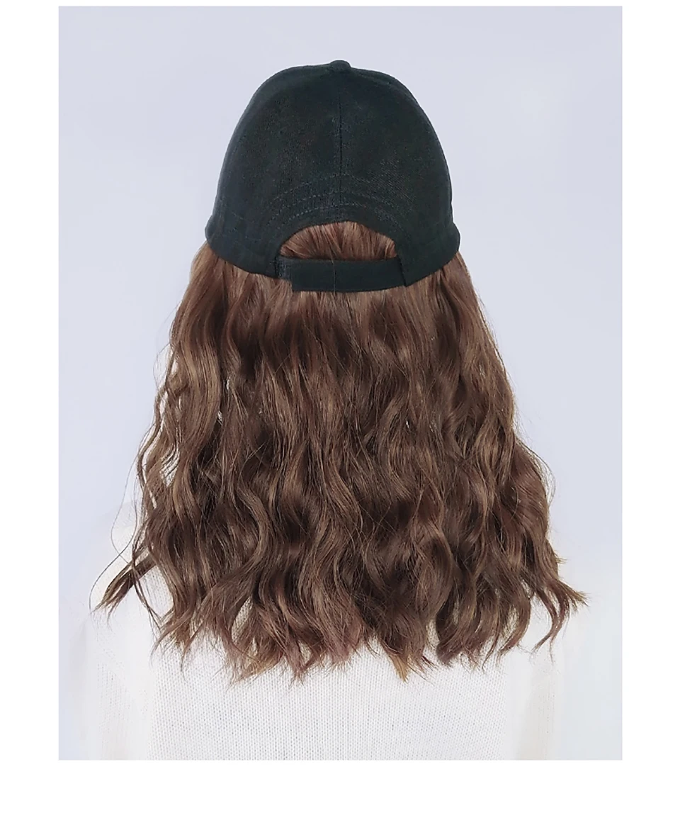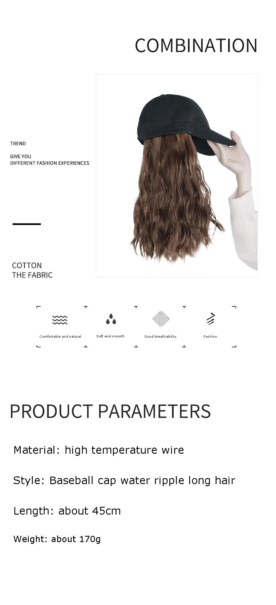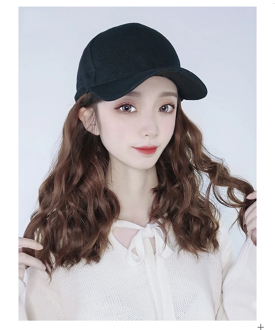 MEIFAN Long Synthetic Fluffy Natural Wave Wavy Curly Hair Wigs with Hat Baseball Cap Naturally Connect Adjustable Hat Wig