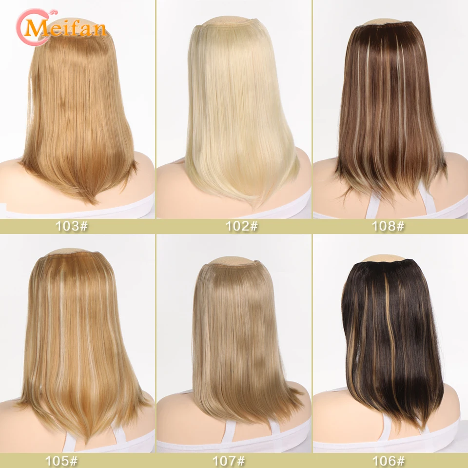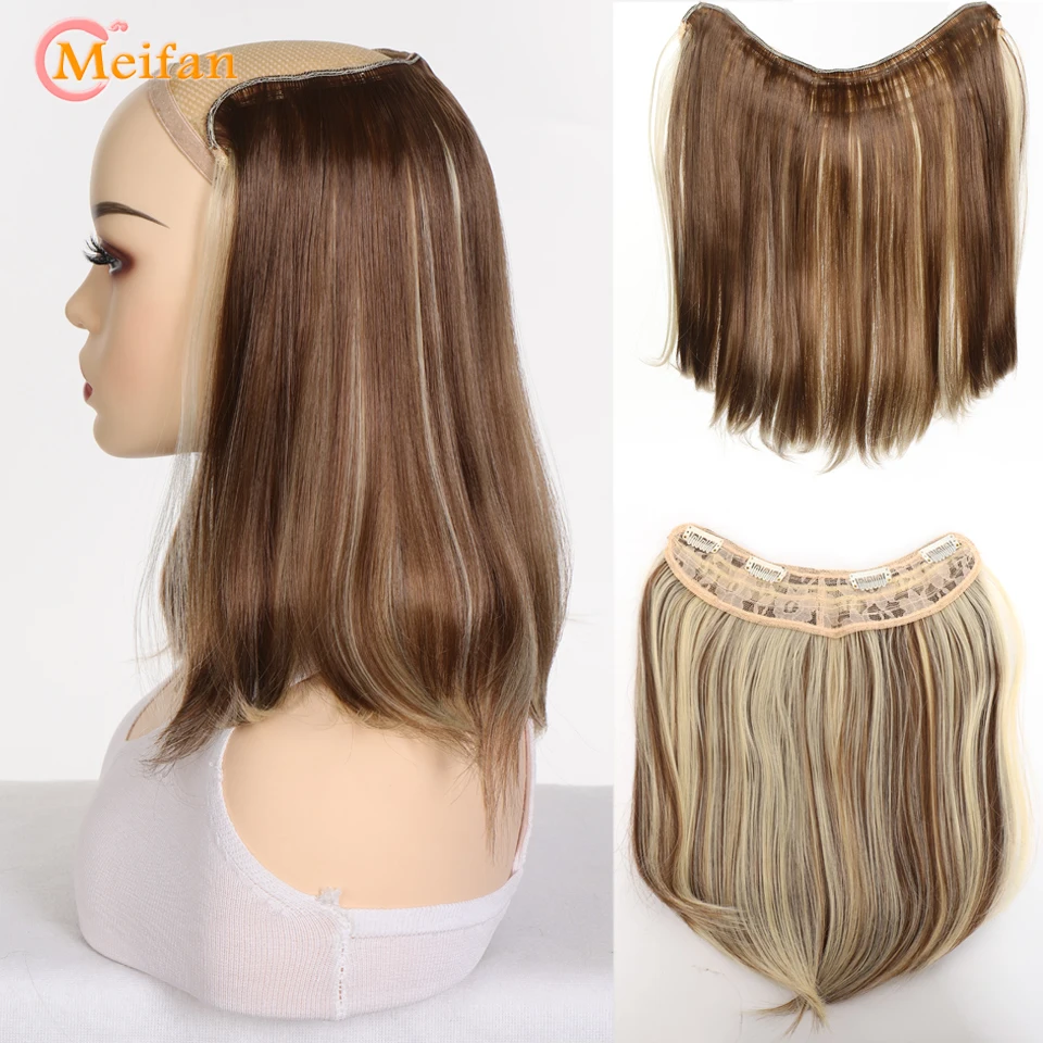 MEIFAN Synthetic Long Straight U-Shaped Half Wig Hair Clip in One-piece Hair Extension Invisible Natural Fake Hairpiece for Wome