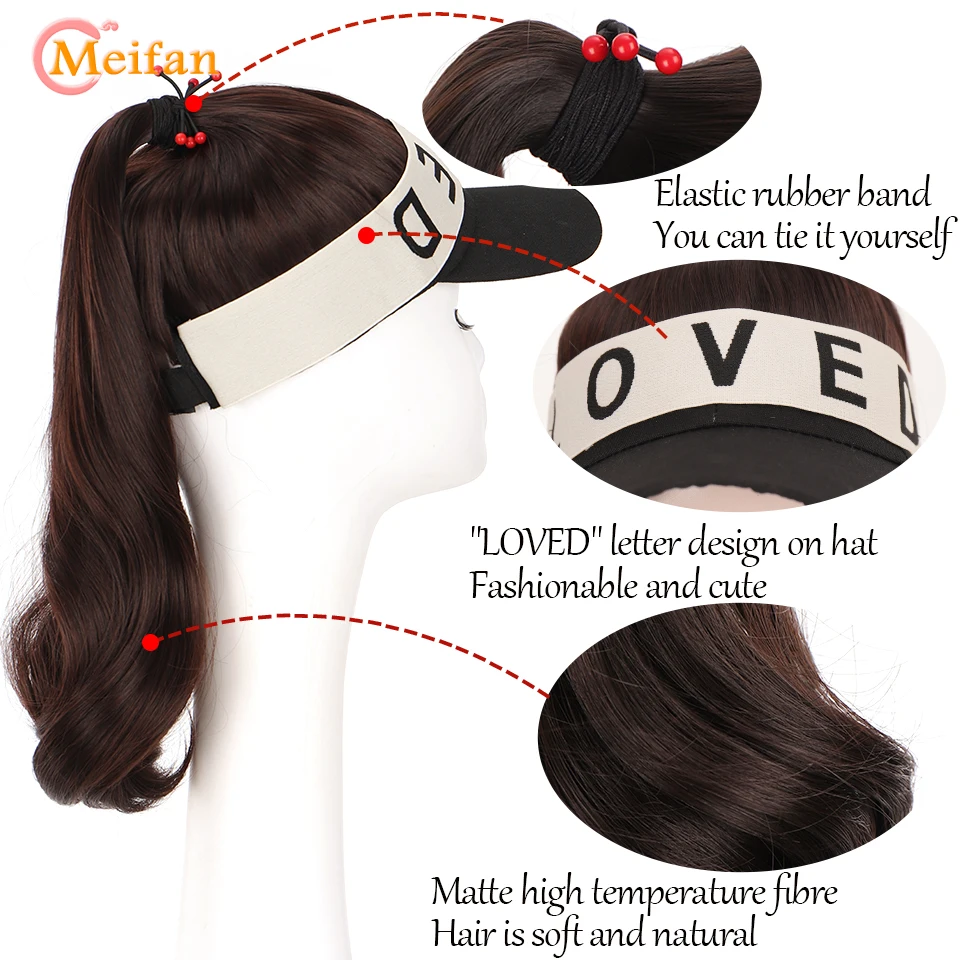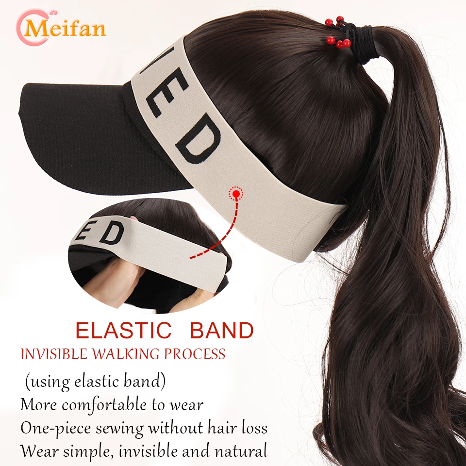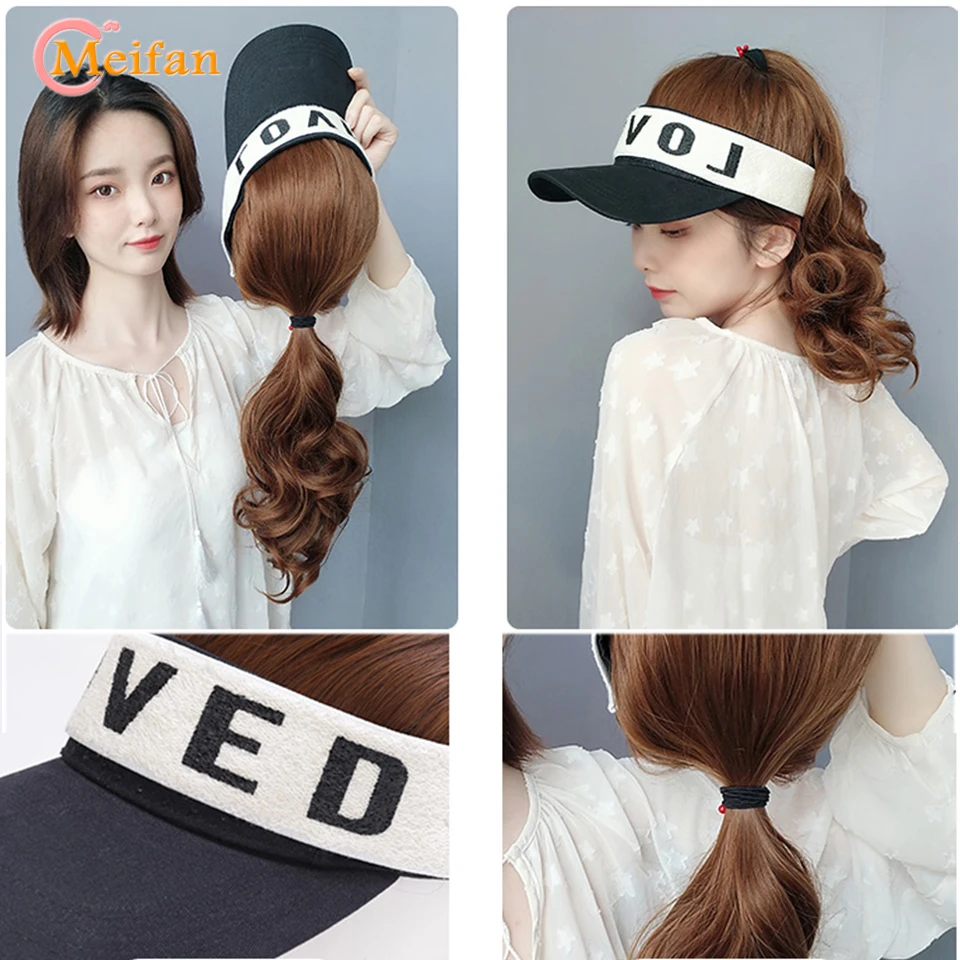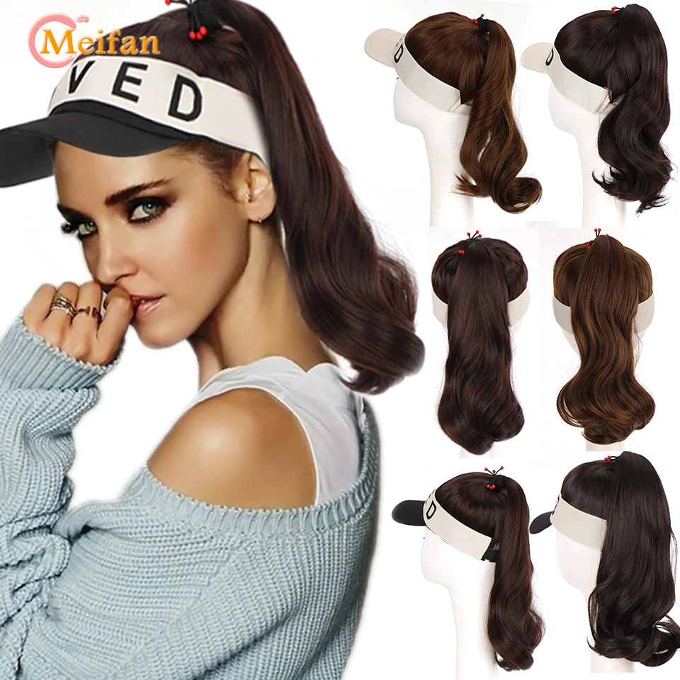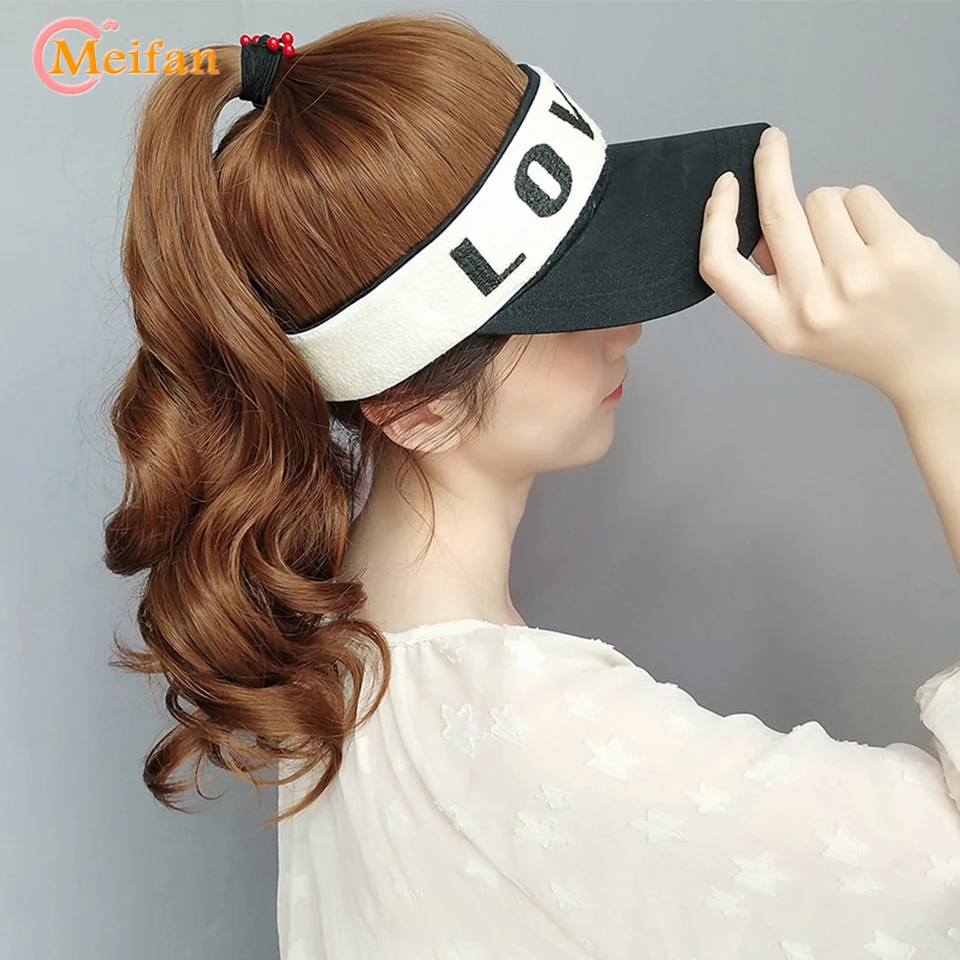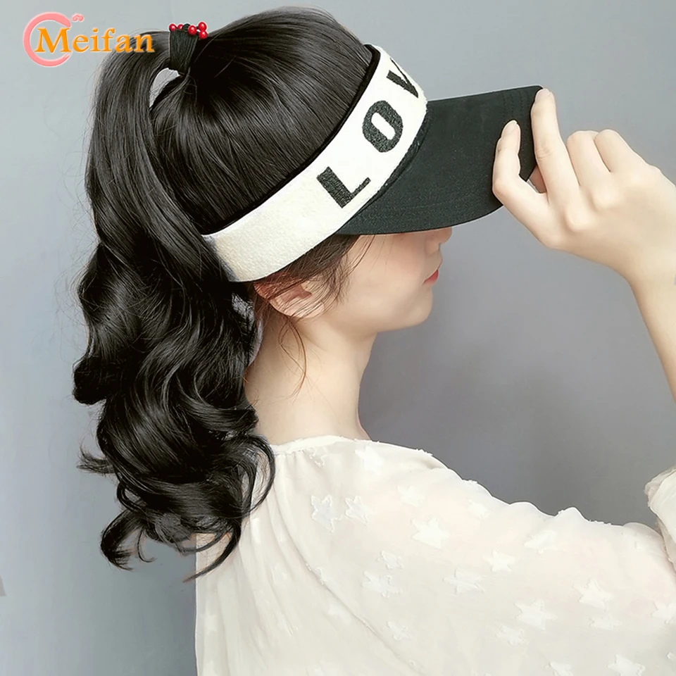 MEIFAN Synthetic Natural Fake Hair Ponytail Extension Wig wiht Hat Travel Beach Shade Baseball Cap All-in-one Easy Wear Hat Wig