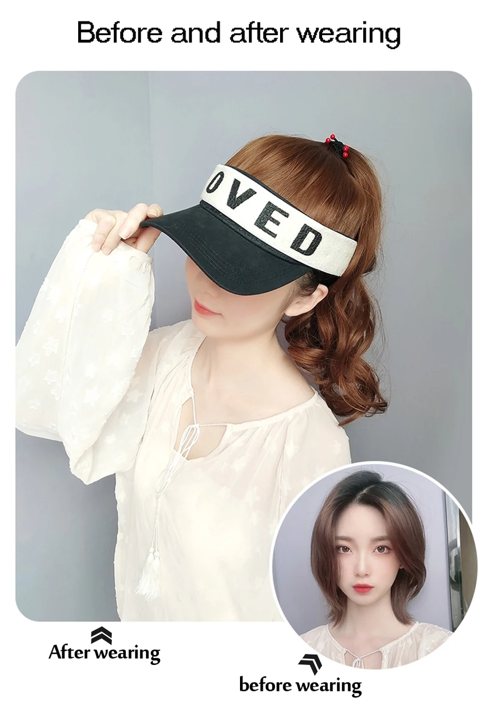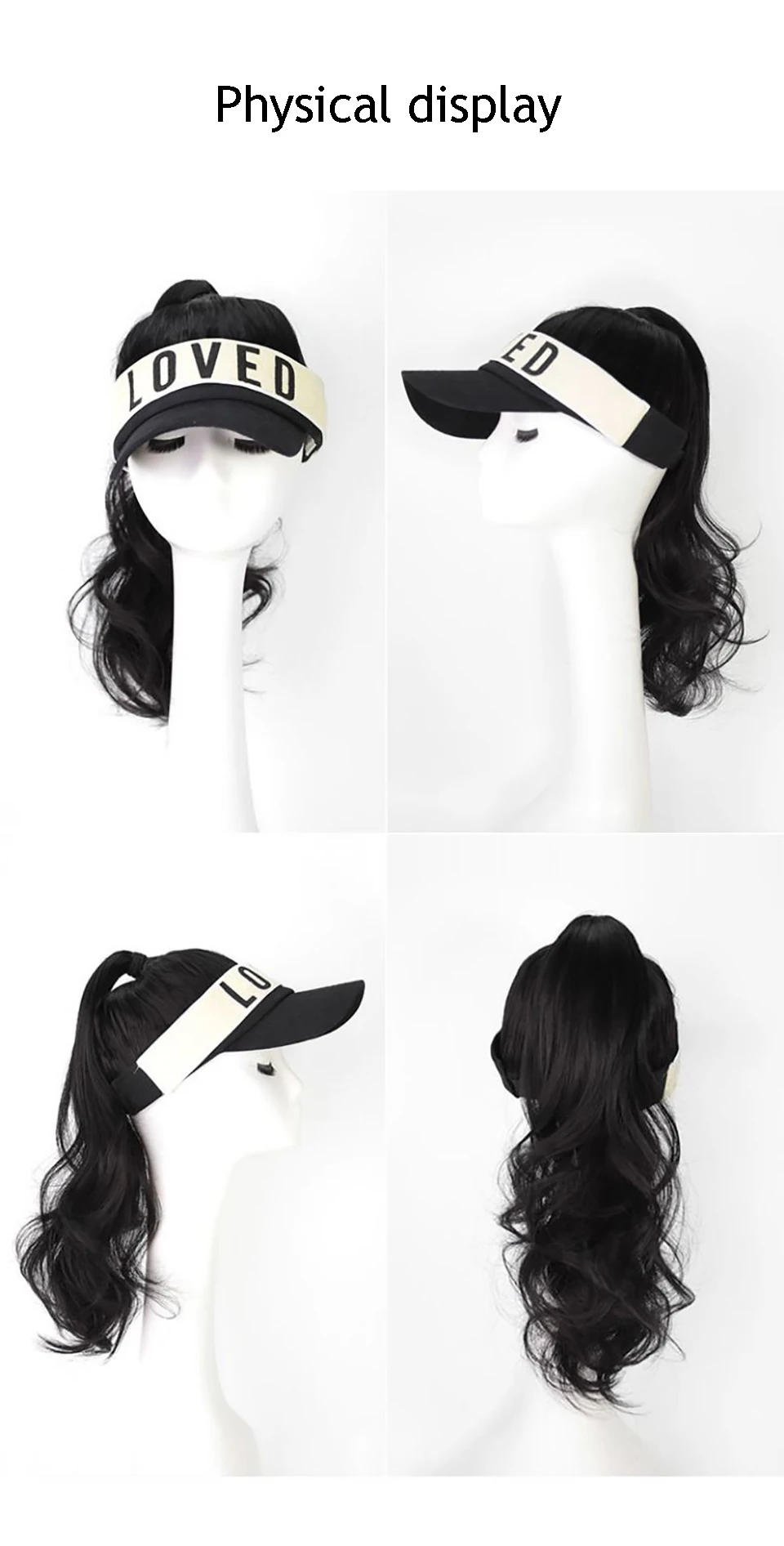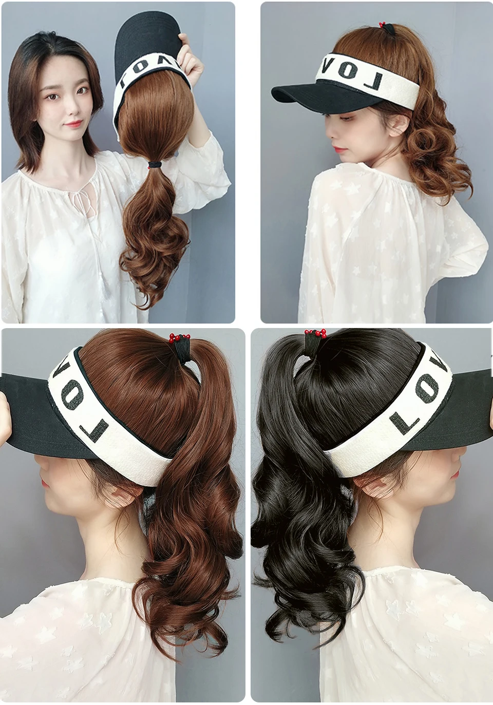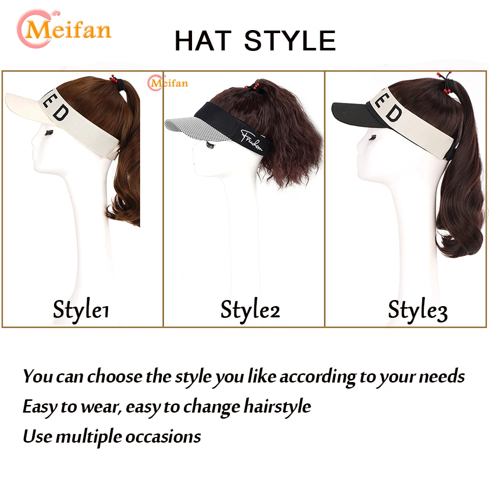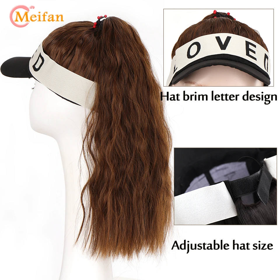 MEIFAN Synthetic Natural Fake Hair Ponytail Extension Wig wiht Hat Travel Beach Shade Baseball Cap All-in-one Easy Wear Hat Wig