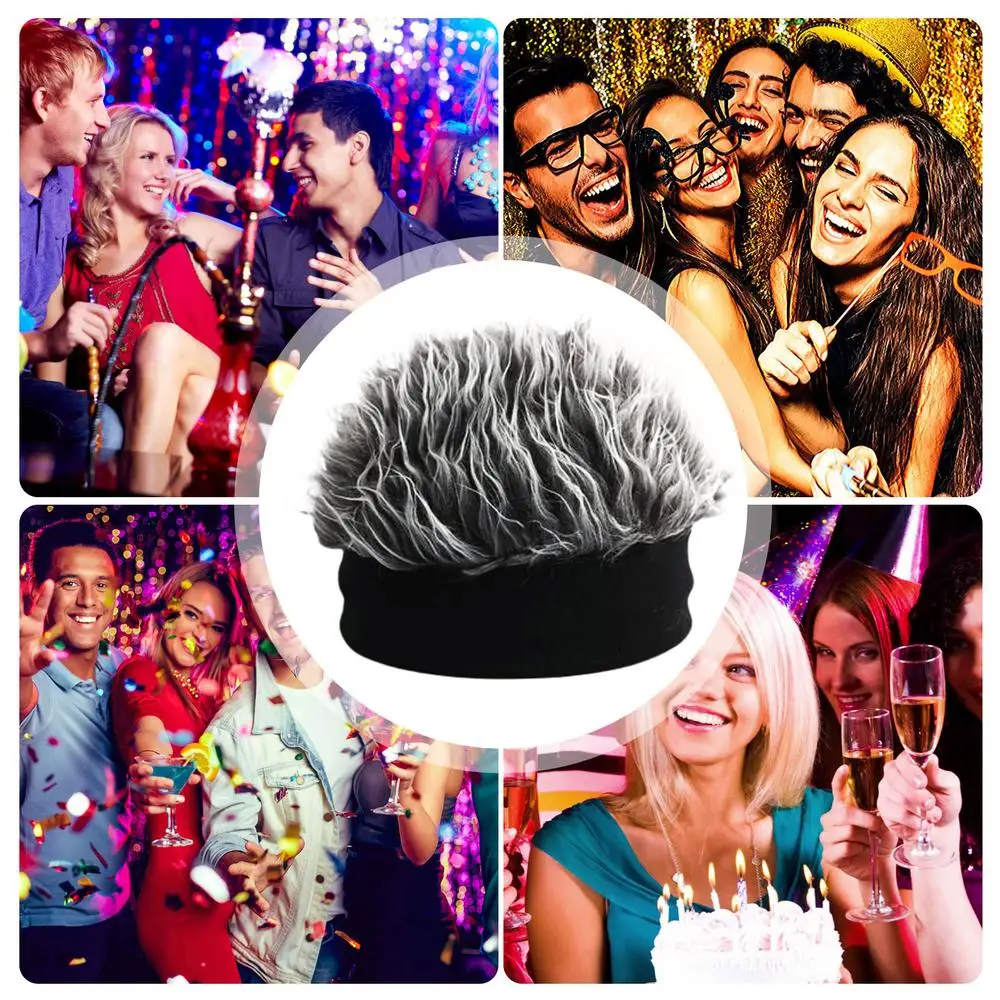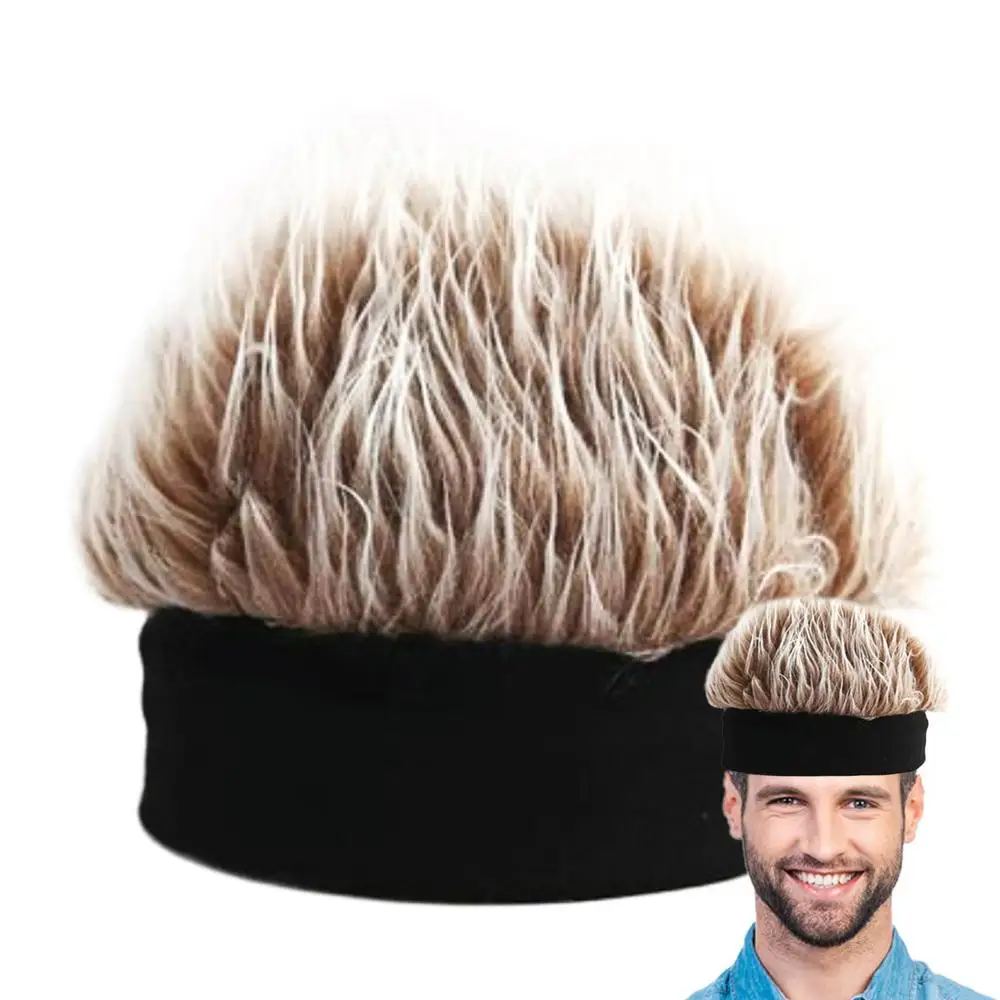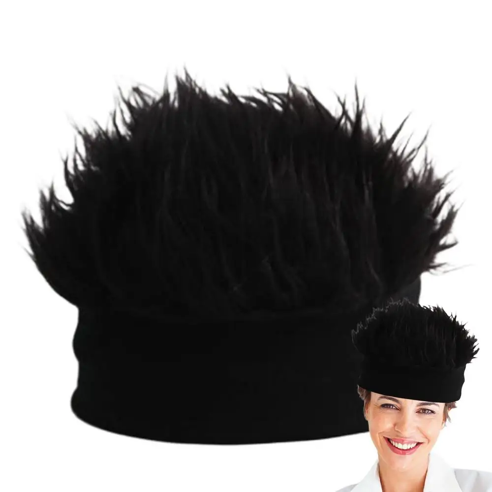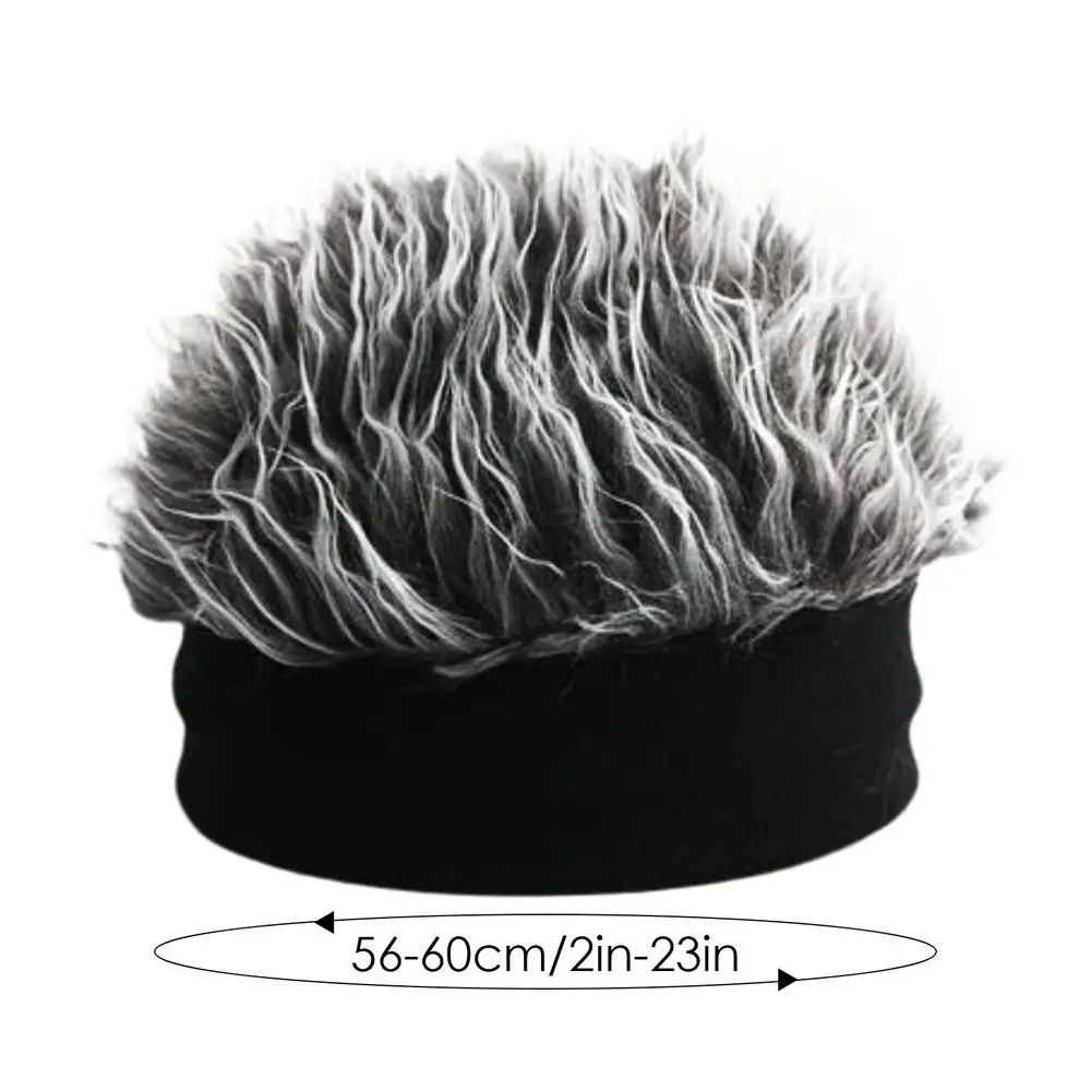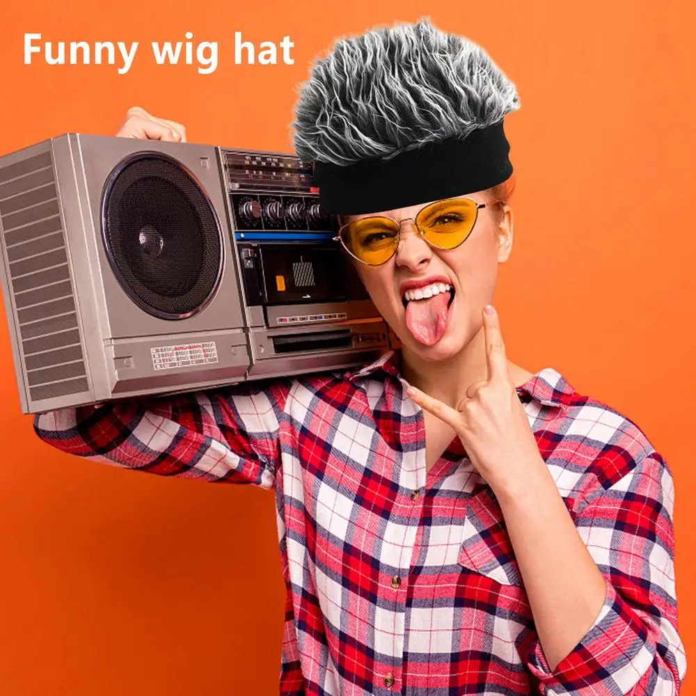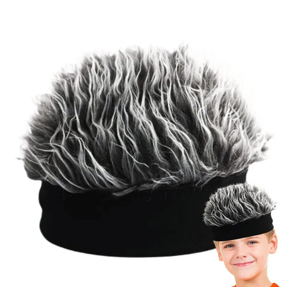 Men Women Beanie Wig Hat Fun Short Hair Caps Novelty Hip Hop Beanie Hat with Spiked Fake Hair Wig Funny Retro Short Melon Wig