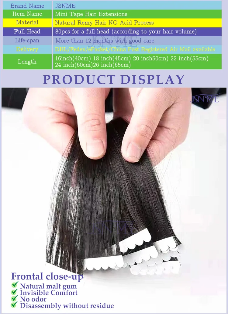Mini Tape in Human Hair Extensions Natural Seamless Invisible Straight Tape Ins Remy Human Hair Black Brown Blonde For Salon