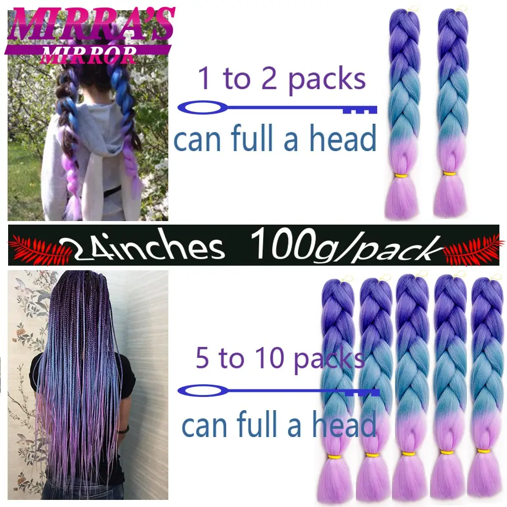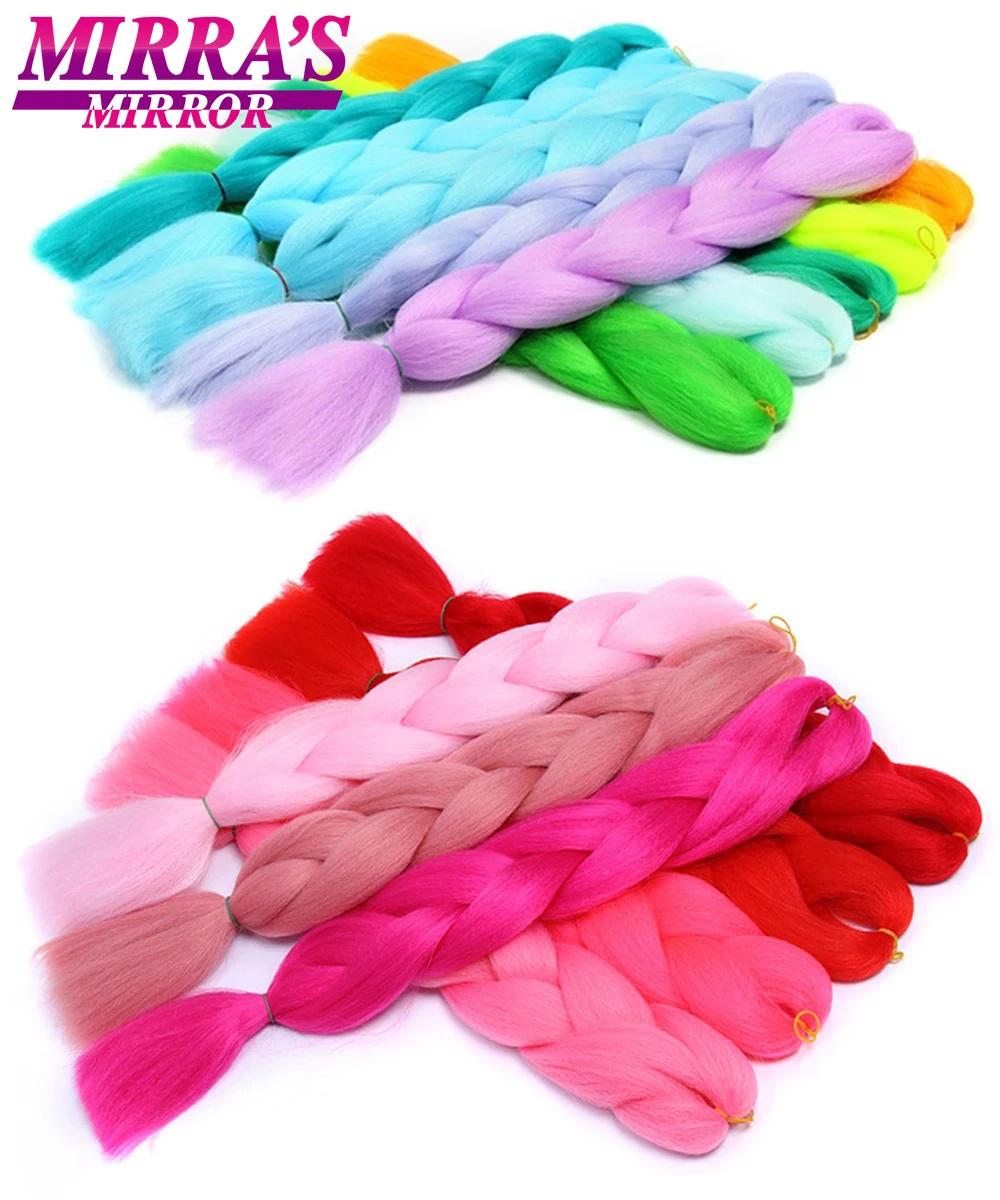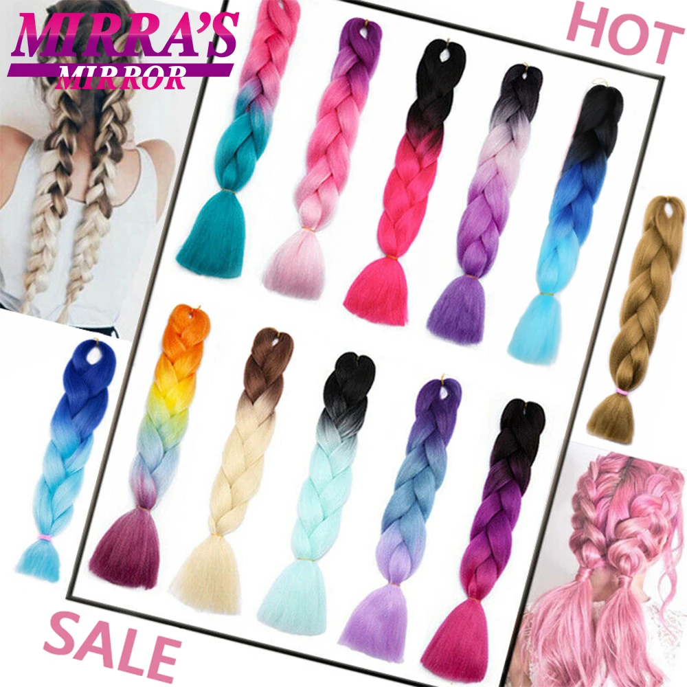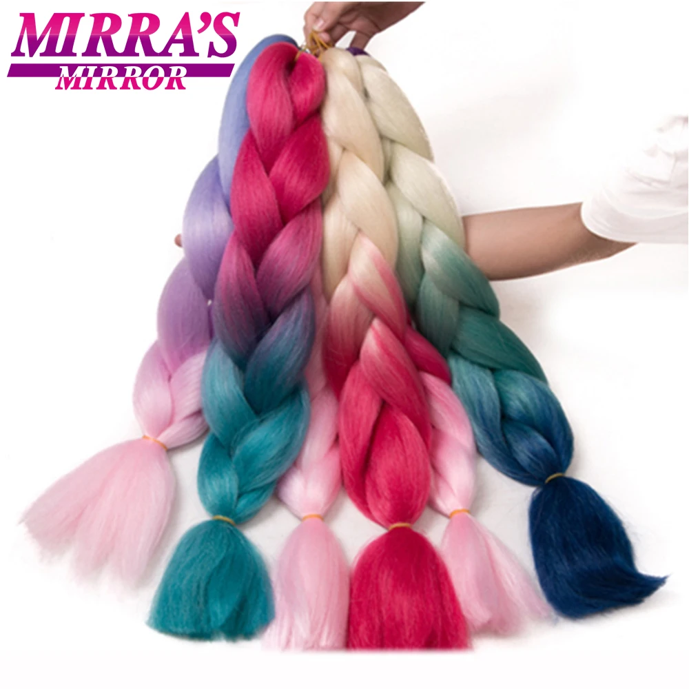 Mirra's Mirror Ombre Braiding Hair Extensions 24inch Jumbo Braids Hair Synthetic Braiding Hair Black Brown Blonde Pink Blue Red