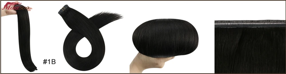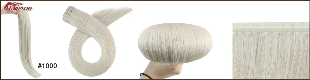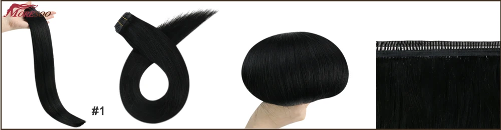 Moresoo Flat Silk Weft Extensions 100% Virgin Human Hair 10A Grade Double Drawn Sew In Weft Flat Track Weaves Natural Straight