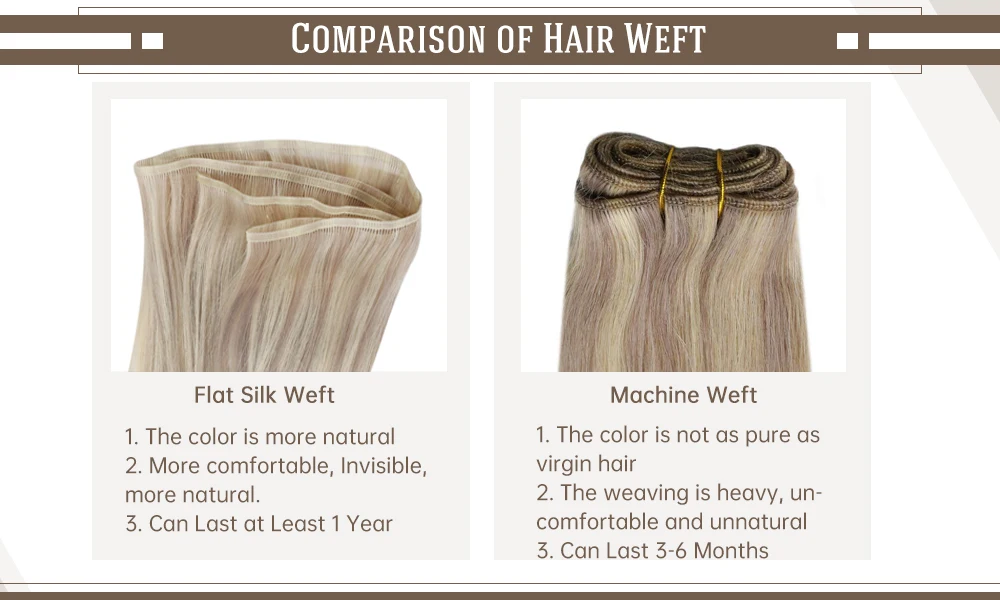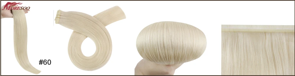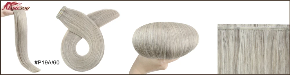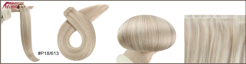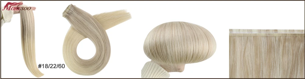 1. Brand Name: Moresoo Hair2. Hair Style: Flat Silk Weft3. Hair Meterial: 100% real human hair4. Hair Color: Highlight Color: #P18/613, #P19A/60;