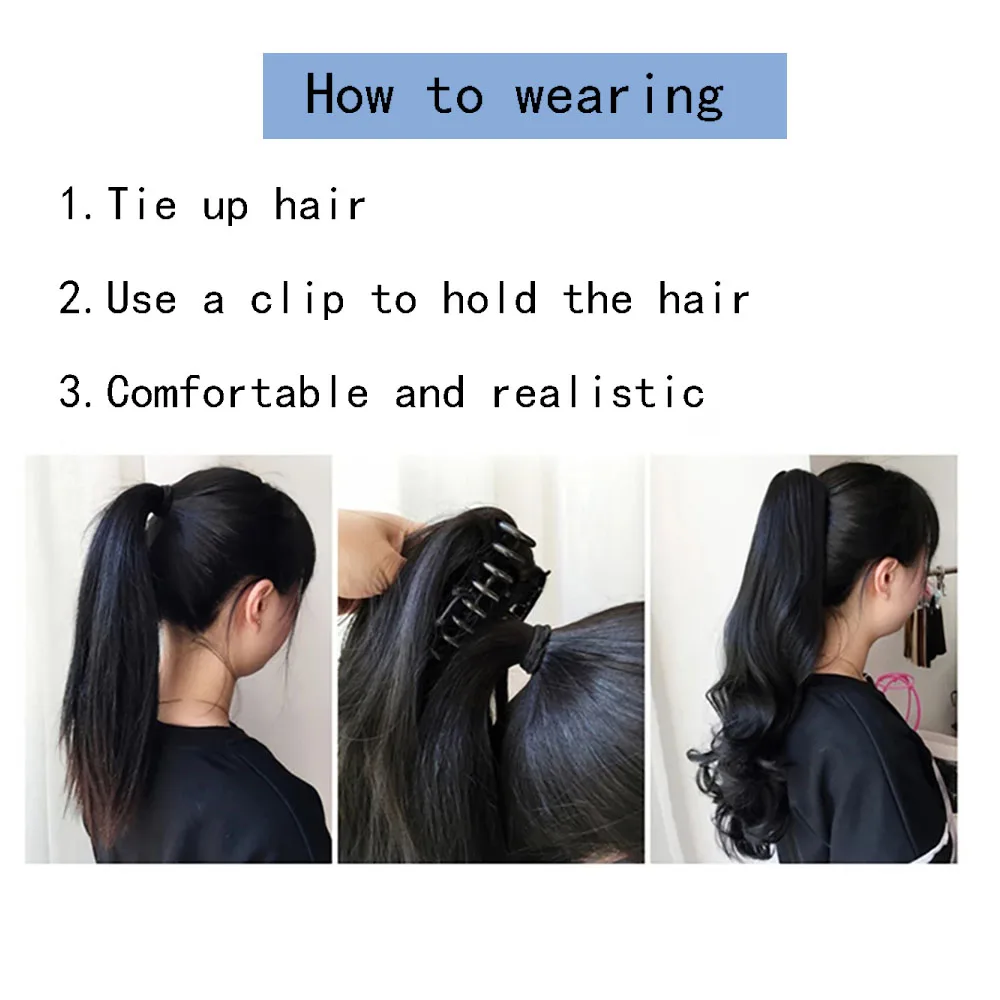 MSTN Long Curly Claw Clip On Ponytail Hair Extension Heat Resistant Synthetic Curly Pony Tails Wig Fake Hair Extensions