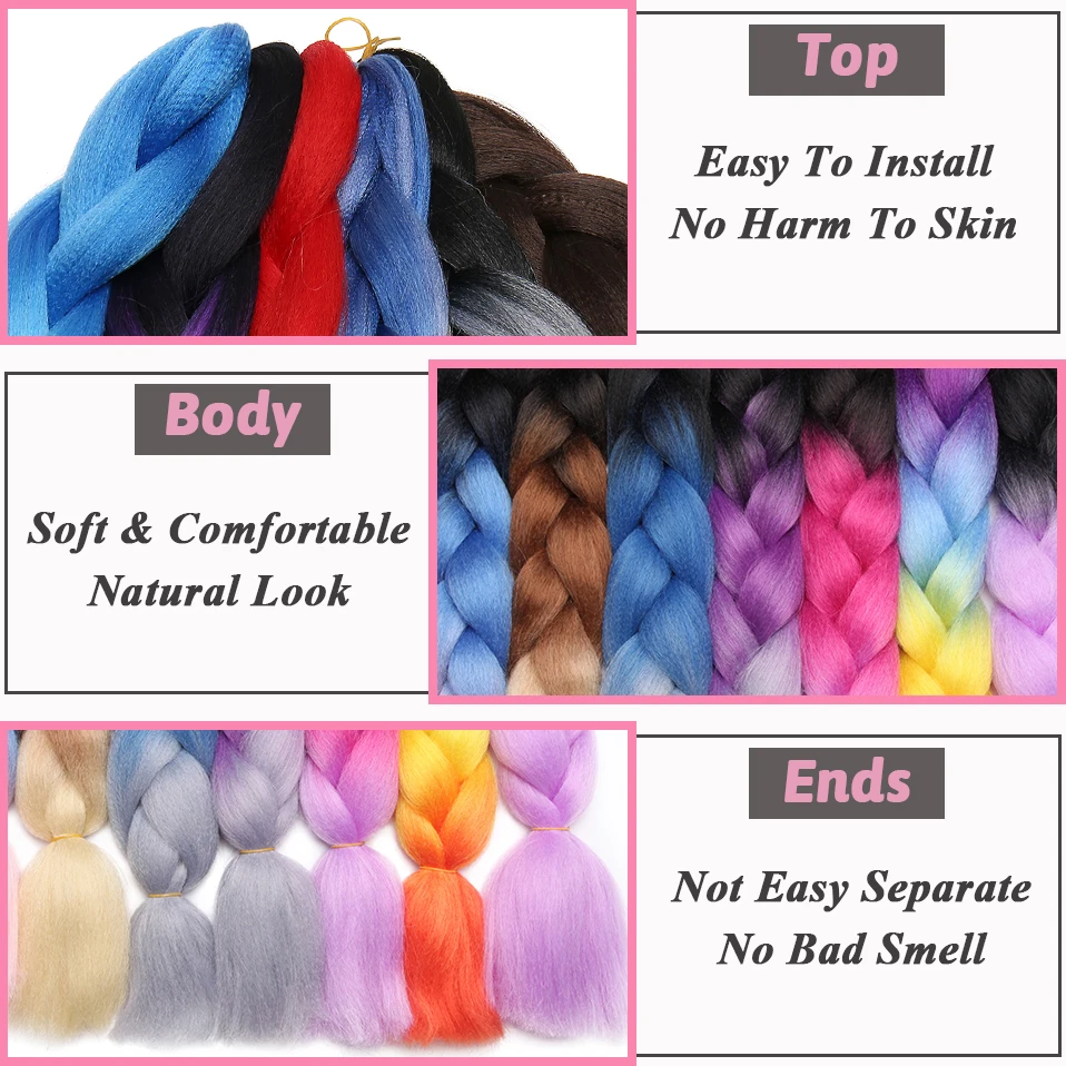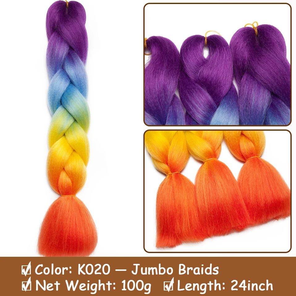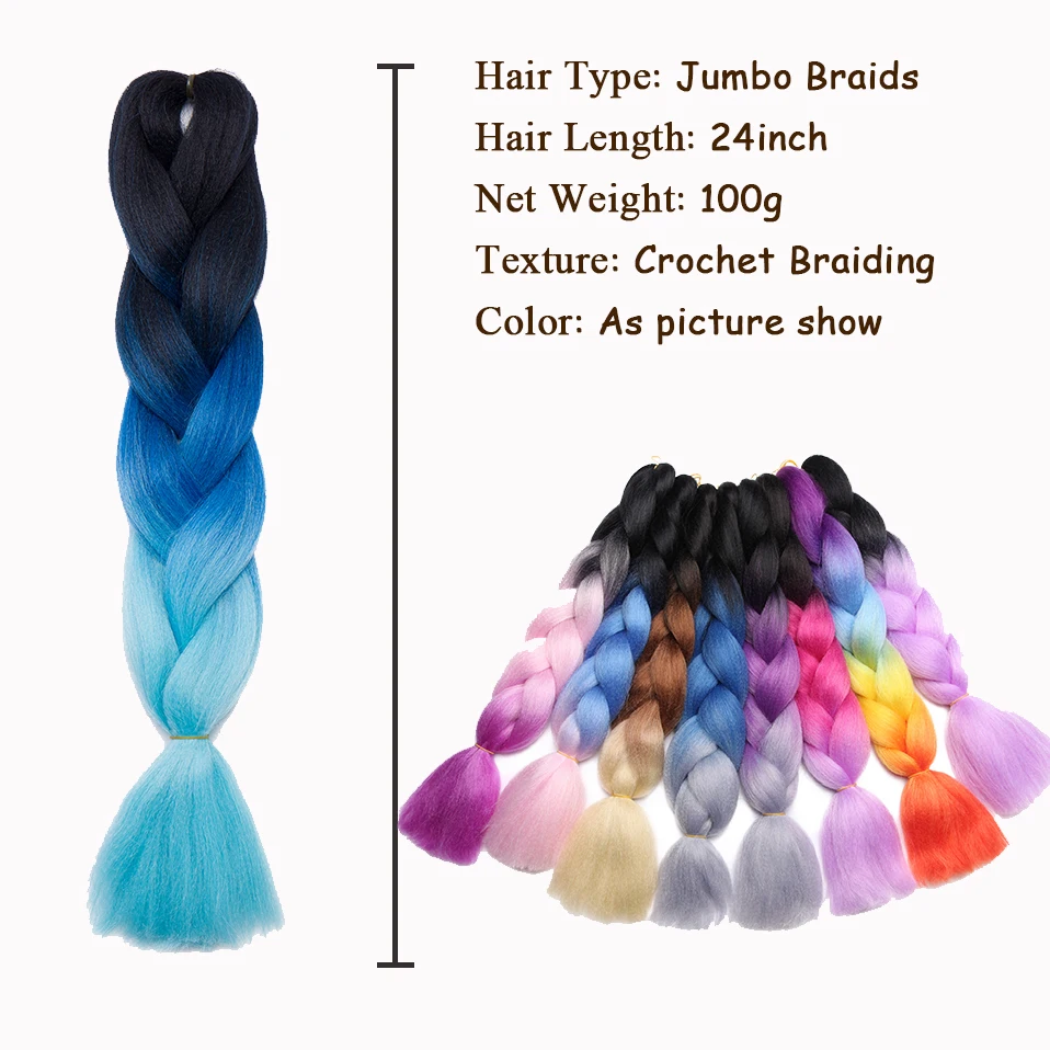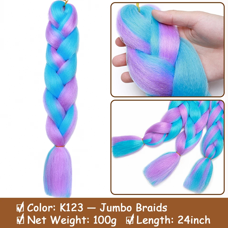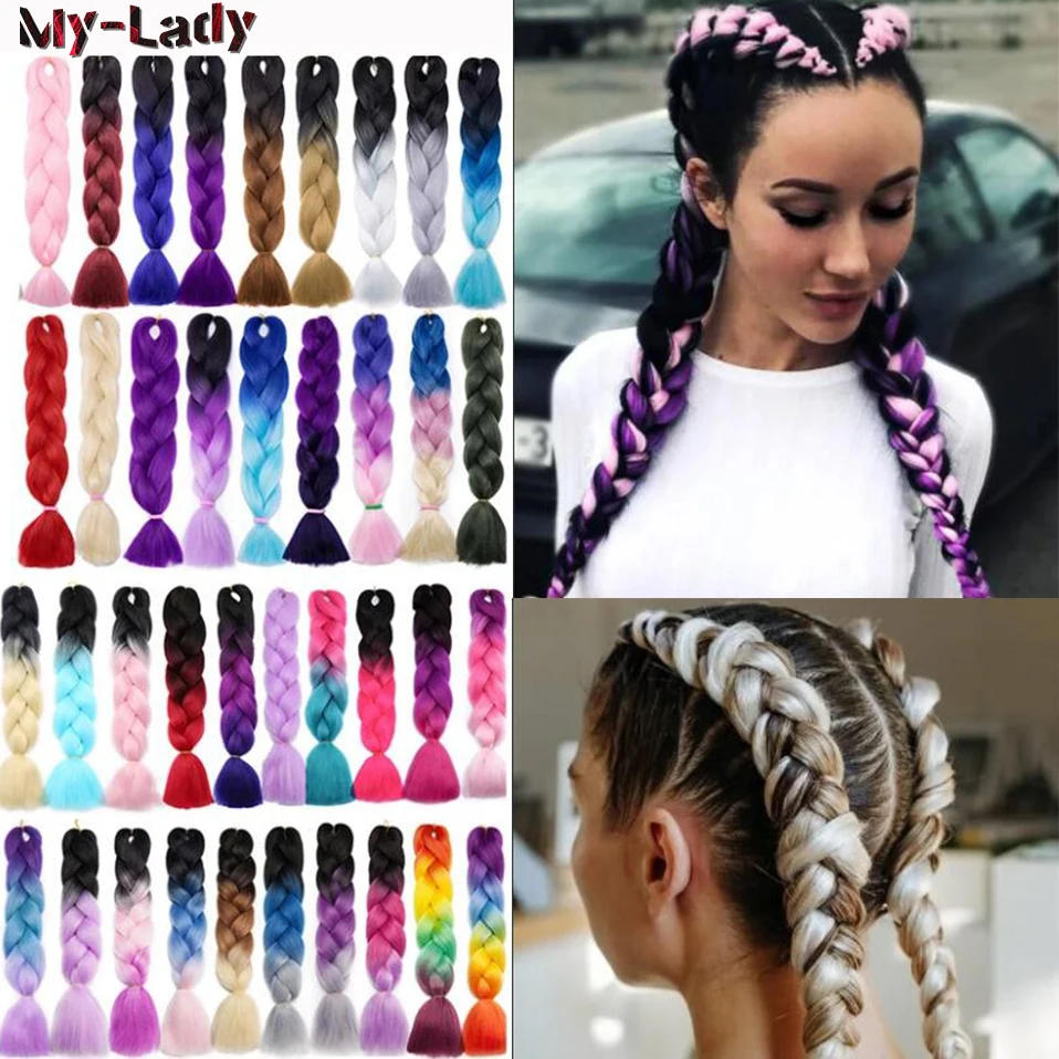 My-Lady 24 Inch Jumbo Braids Synthetic Single Ombre Color Glowing Crochet Braiding Hair Wholesale Twist Rainbow Hair Kanekalone