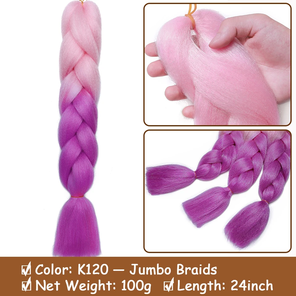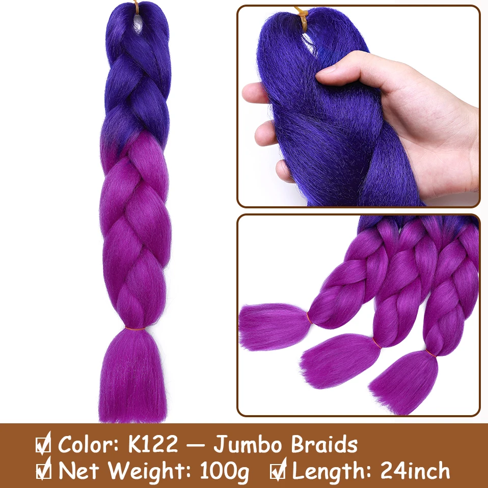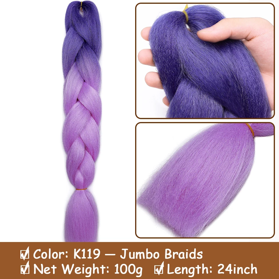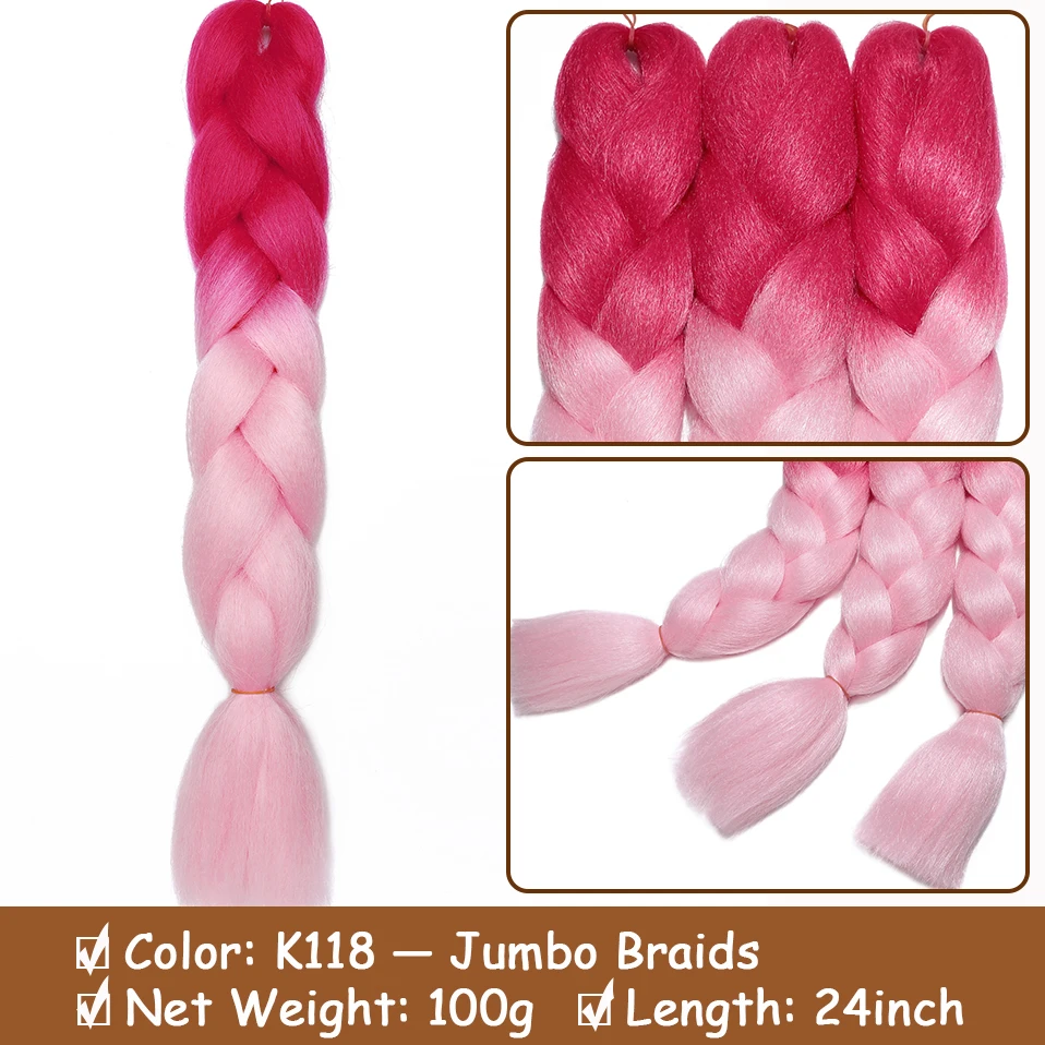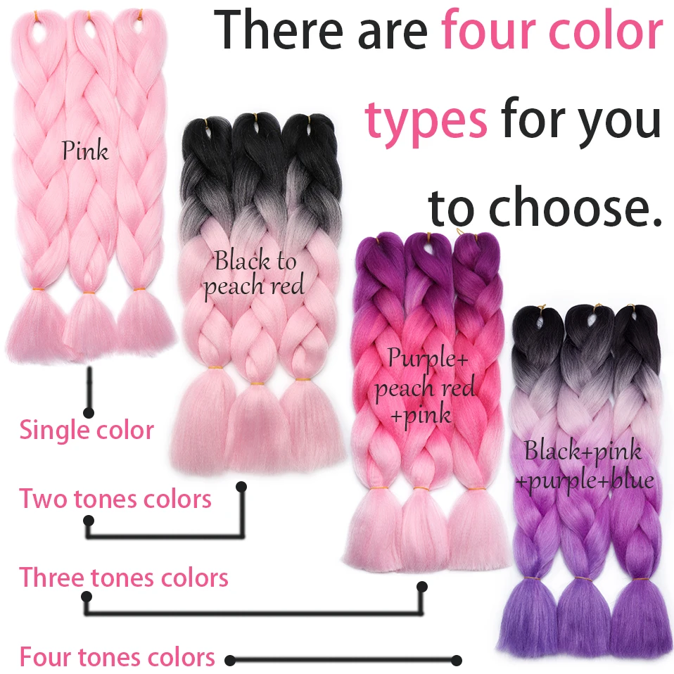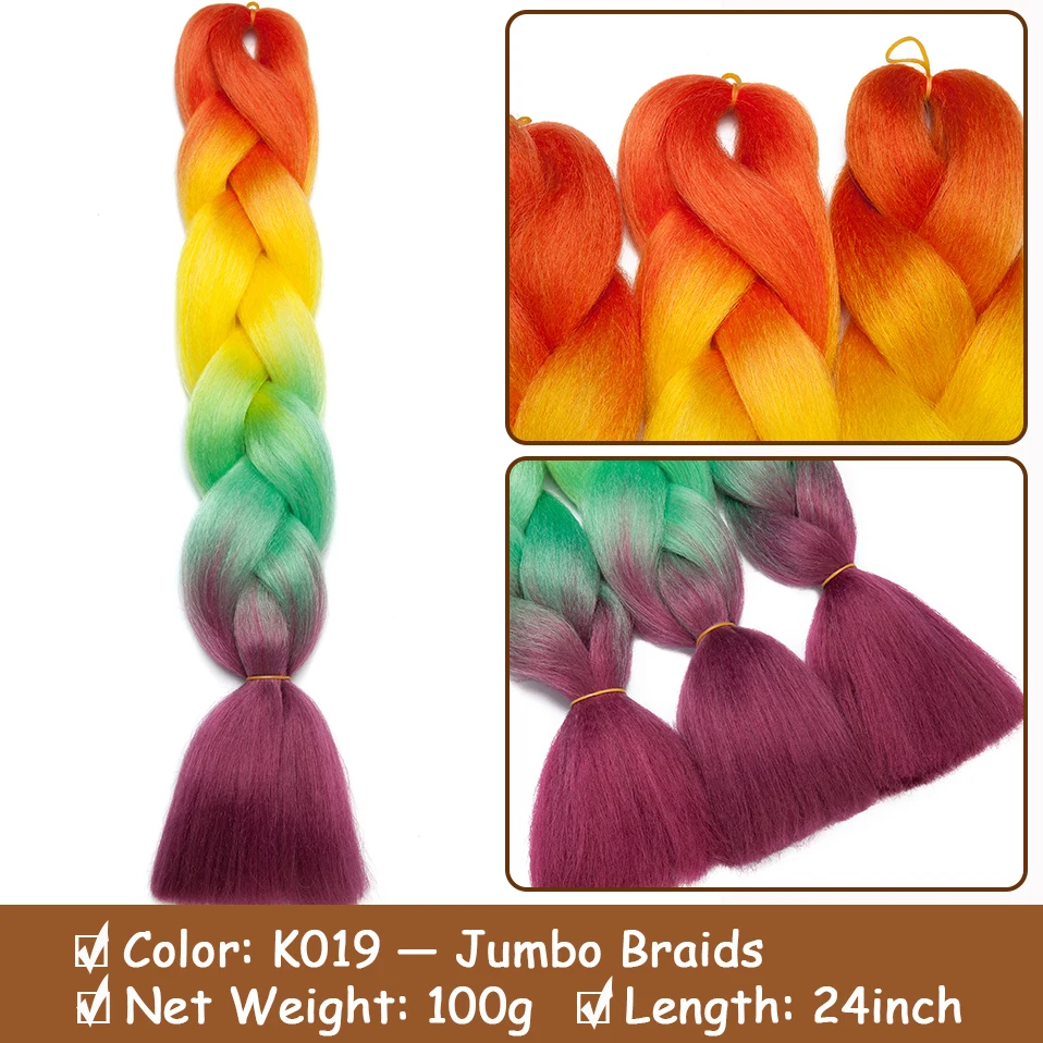 My-Lady 24 Inch Jumbo Braids Synthetic Single Ombre Color Glowing Crochet Braiding Hair Wholesale Twist Rainbow Hair Kanekalone