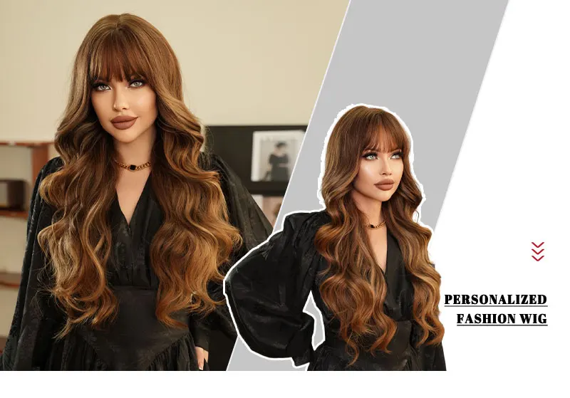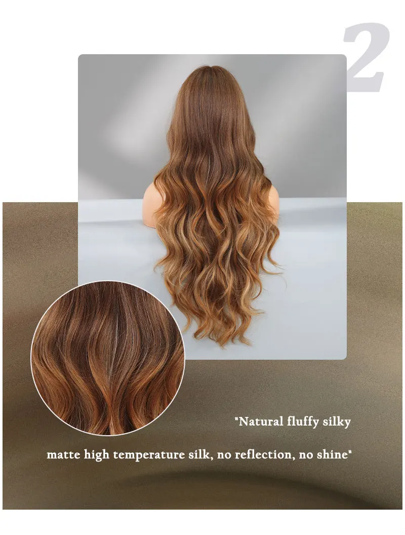 NAMM Long Synthetic Wig Long Body Wavy Dark Ombre Blonde Wig for Women Daily Party High Density Hair Wigs with Bangs