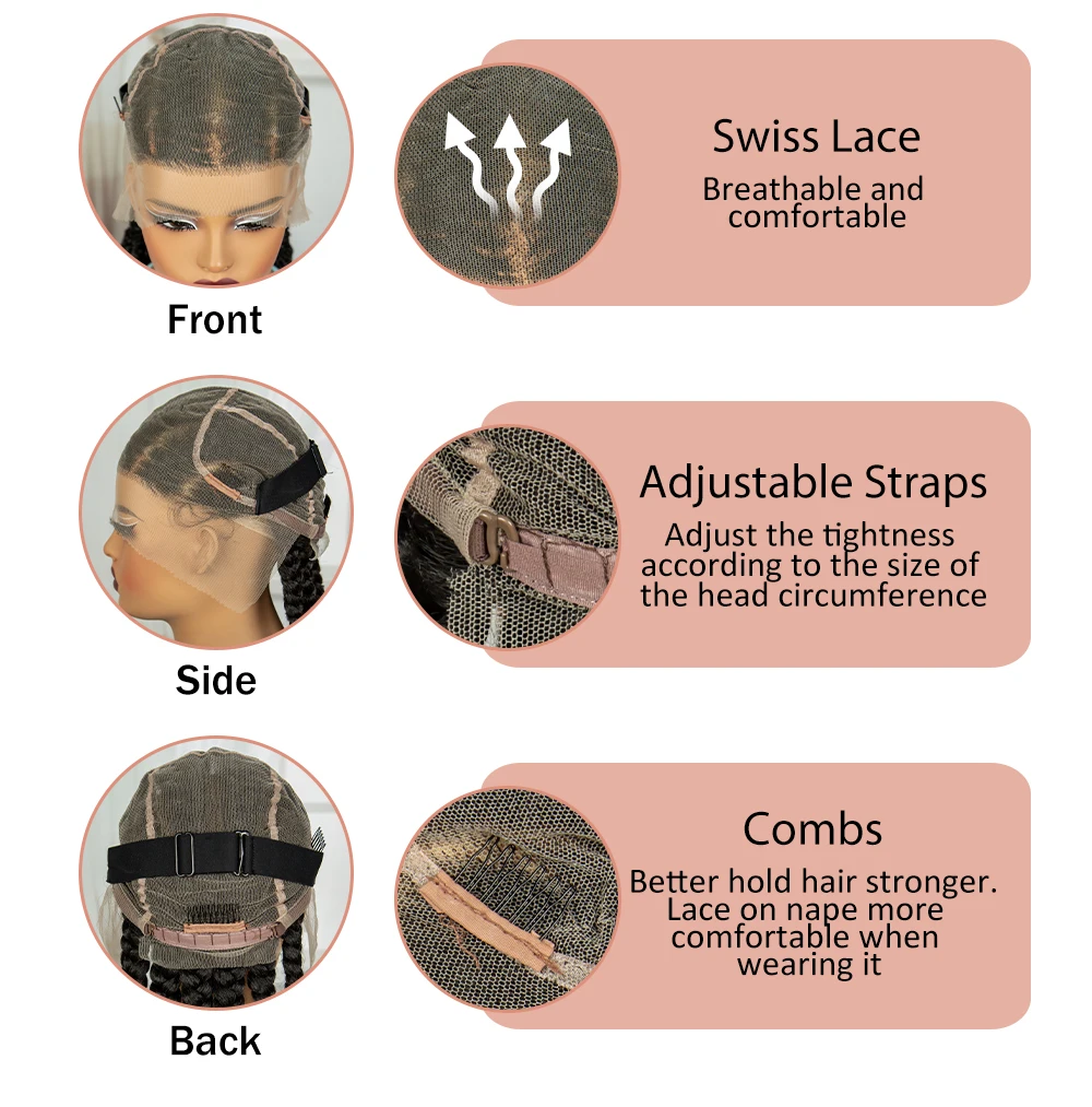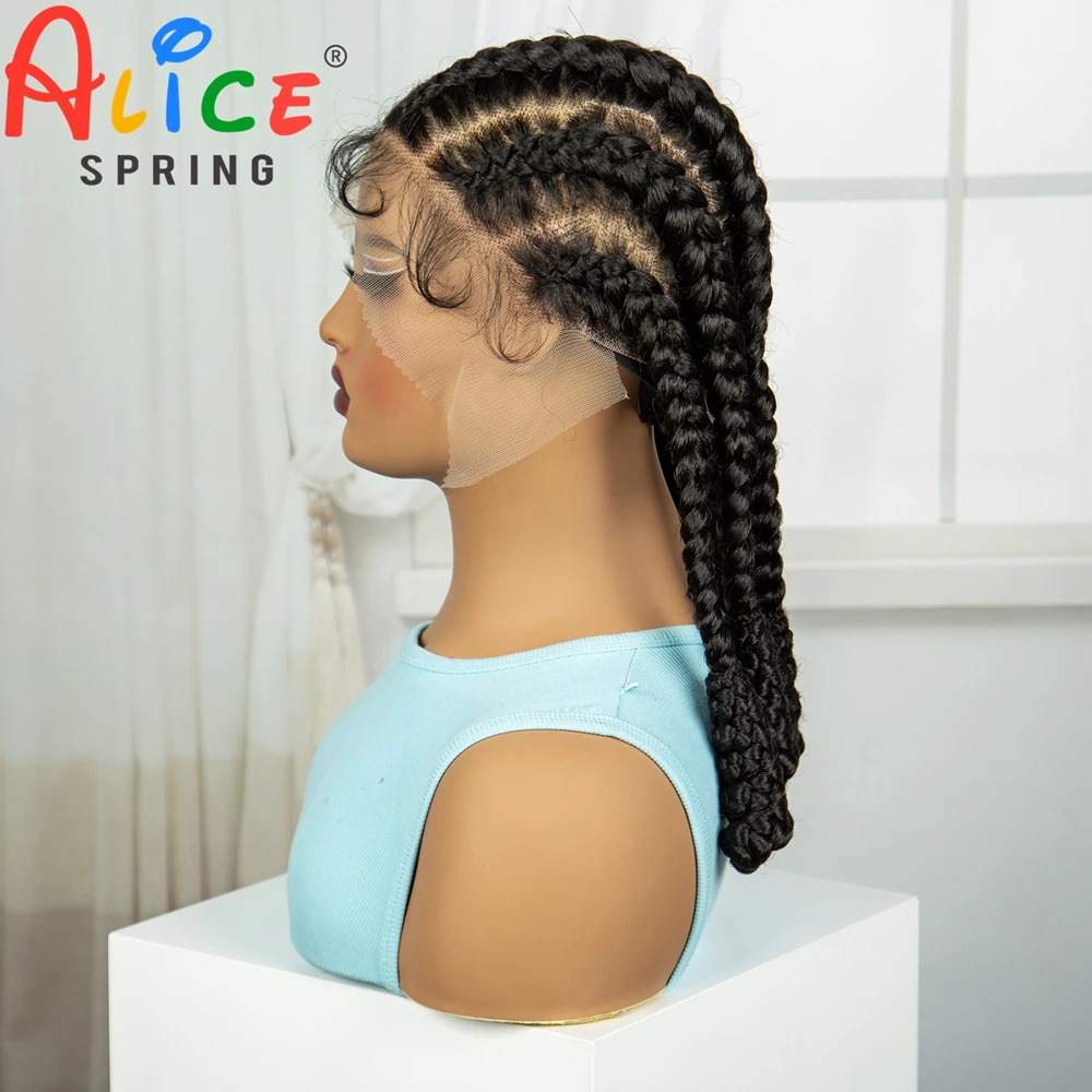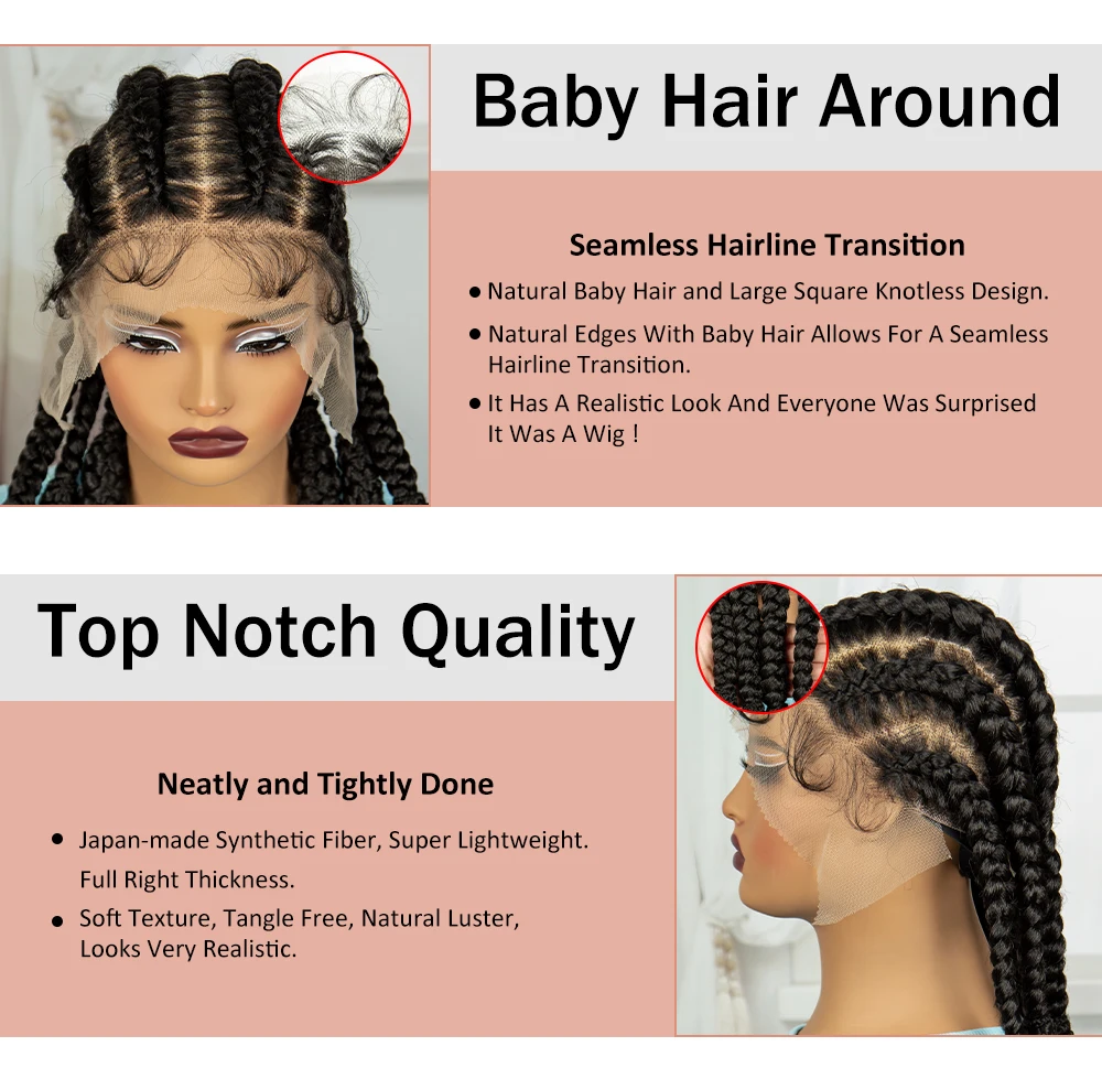 Natural 16 Inch Synthetic Transparent Full Lace Cornrow Braided Wigs with Baby Hair for Black Women Handmade Braiding Hair Wigs