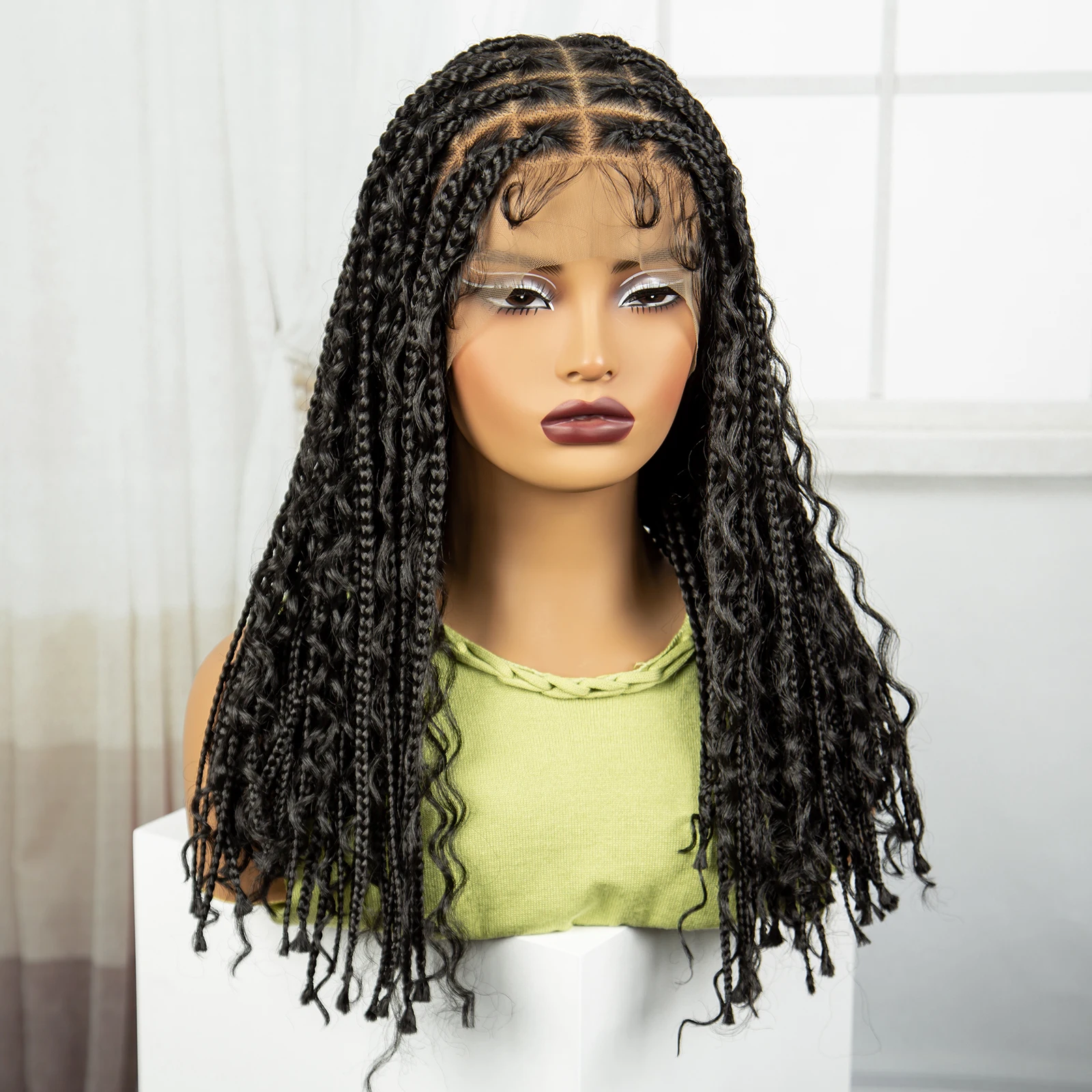 Natural 18Inch Synthetic Knotless Box Braided Wig for Black Woman Lace Braided Wig Synthetic Deep Wave Braids Wig With Baby Hair