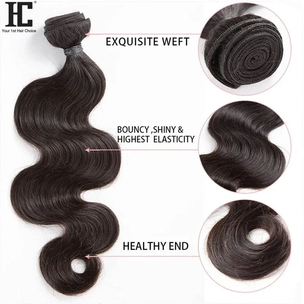 Natural Black Brazilian Body Wave Human Hair Bundles 100% Human Hair Weave Remy Hair Extensions For Women 1/3/4pcs