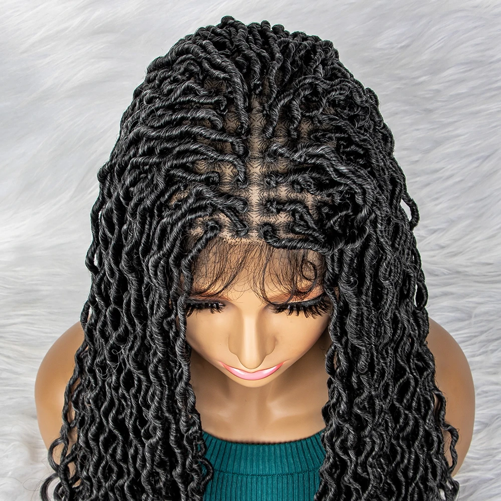 New Arrival 32" Synthetic Lace Front Wig Braided Wigs Braid African With Baby Hair Braided Lace Front Wigs Curly Dreadlocks Wigs