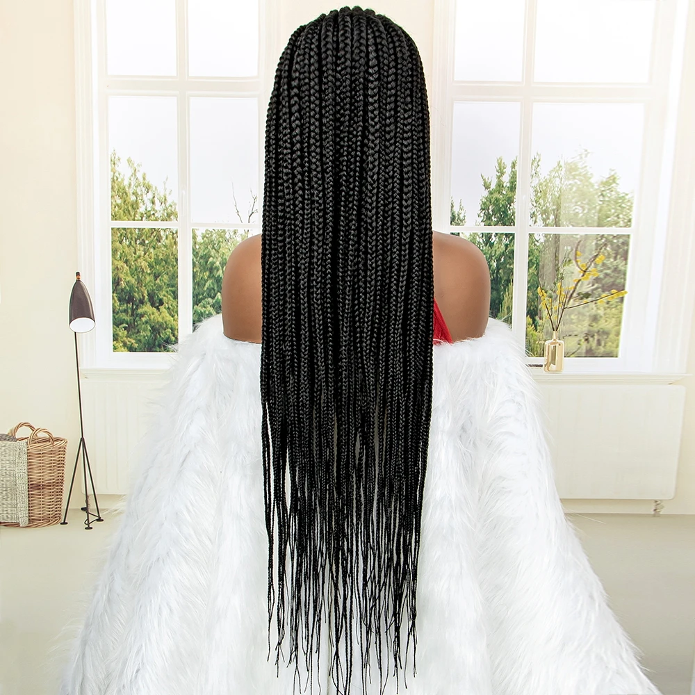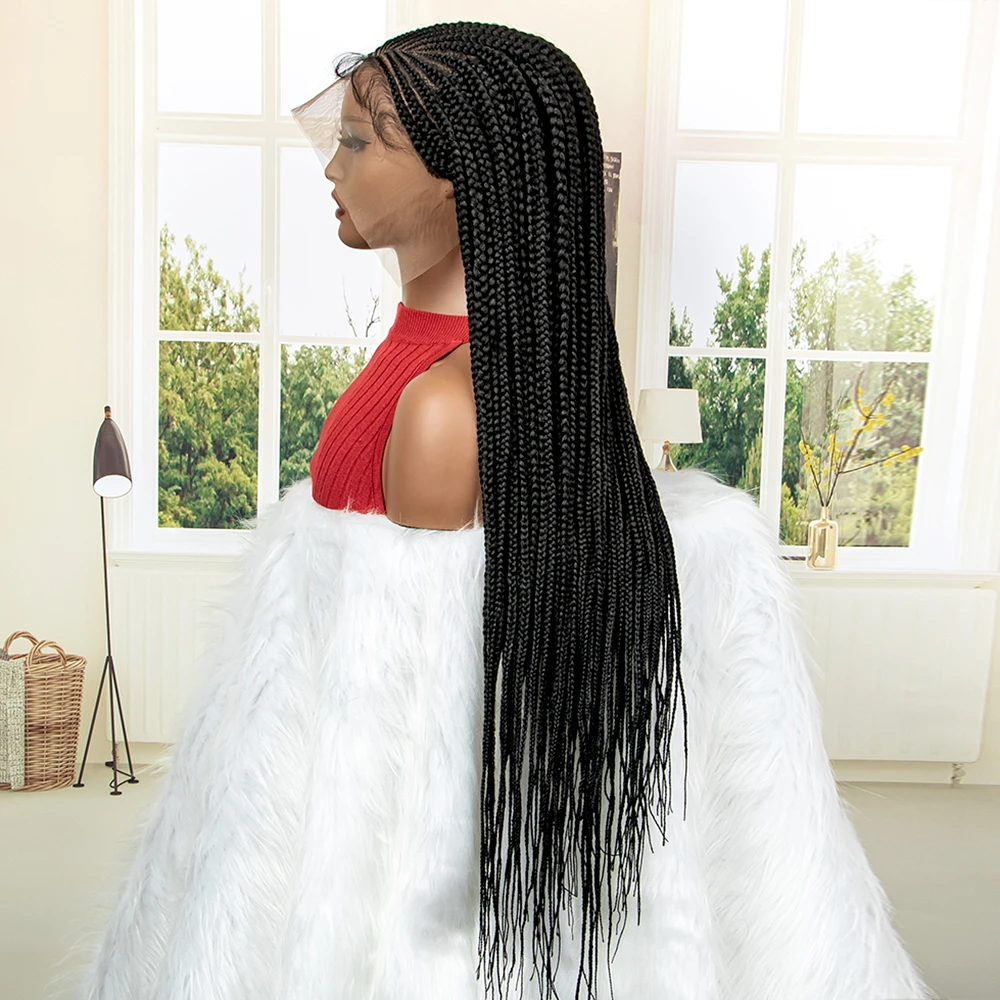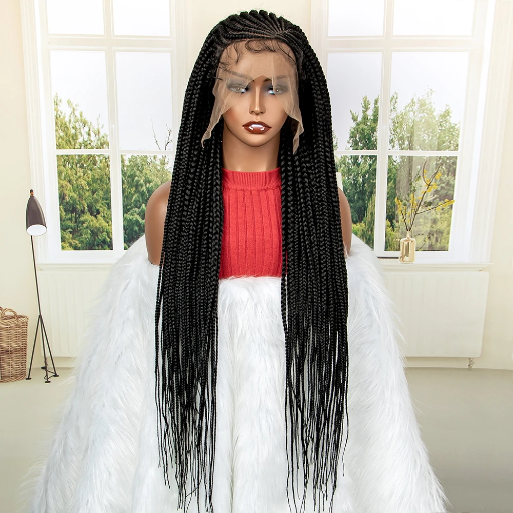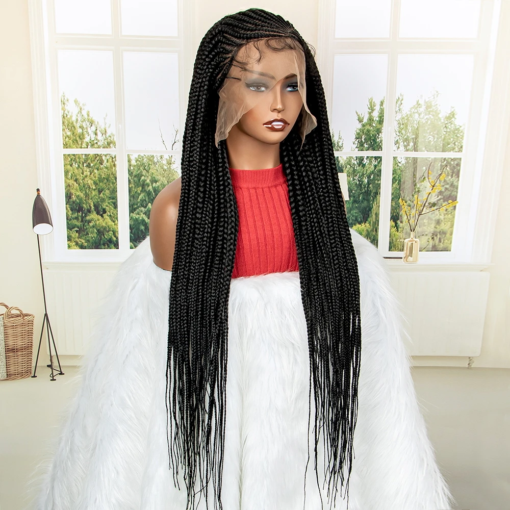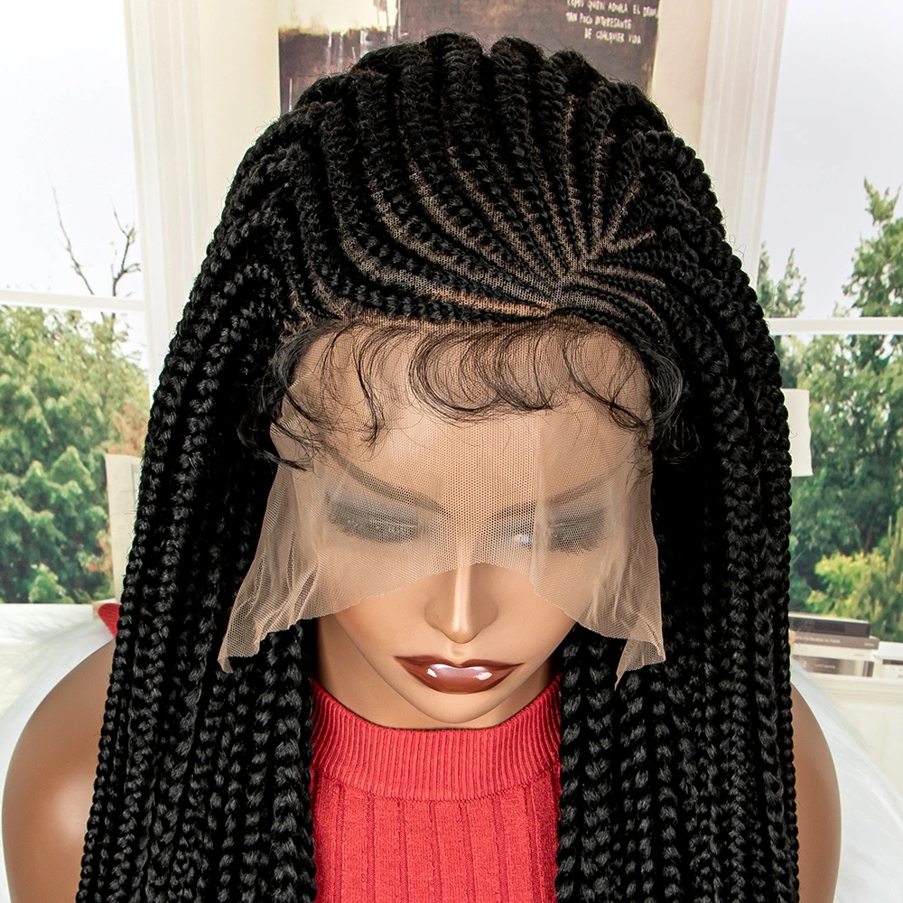 New Arrival 34 Inches Braided Wigs Synthetic Full Lace Wig with Baby Hair for Black Women Black Cornrow Braiding Hair Wigs