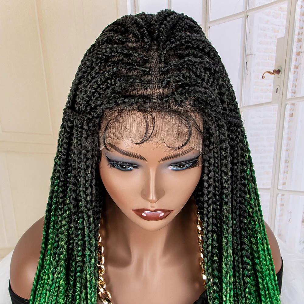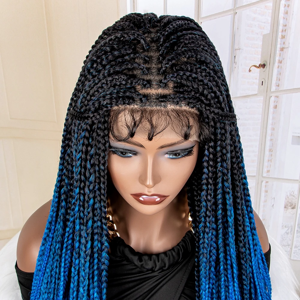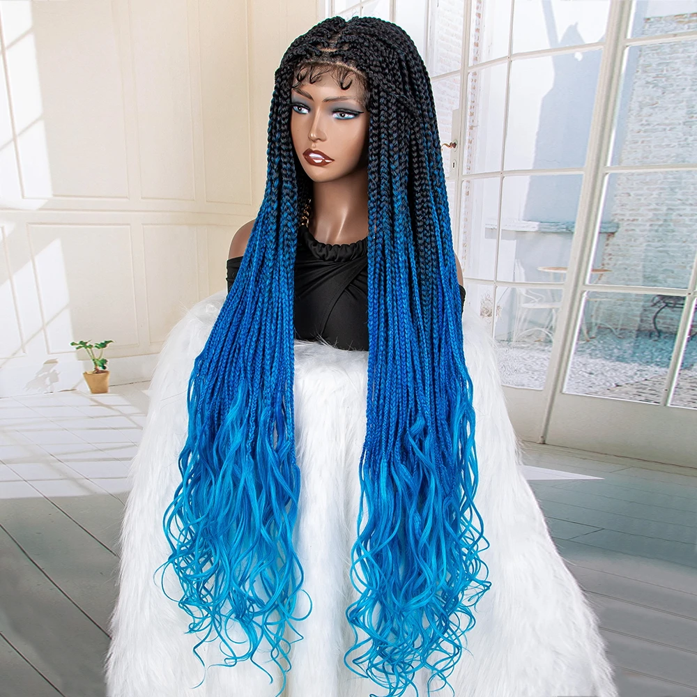 New Arrival Blue Braided Wigs Synthetic Lace Frontal Wigs 36 Inches Wavy with Baby Hair for Black Women Curly Braiding Wigs