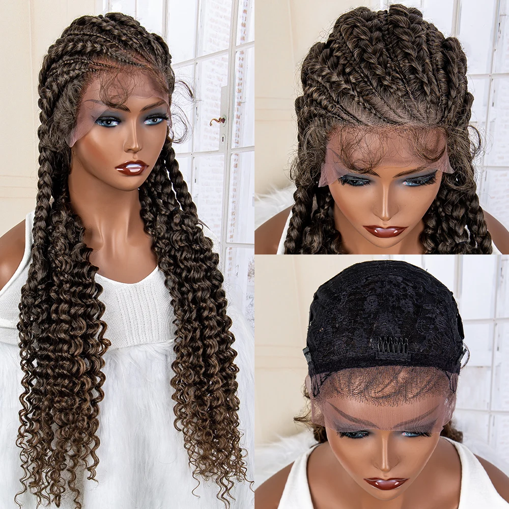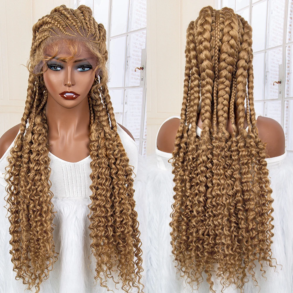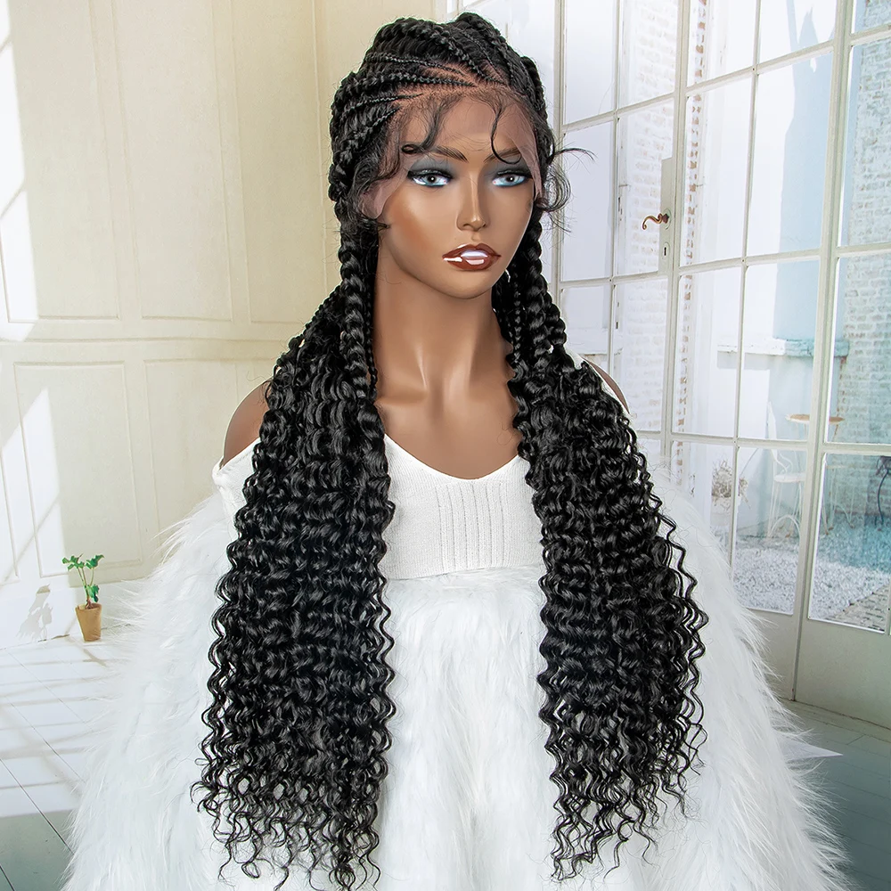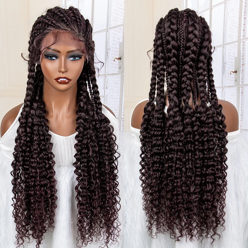 New Arrival Curly Synthetic Lace Frontal Box Braided Wigs 28 Inches Long Natural Curly Hair with Baby Hair for Black Women