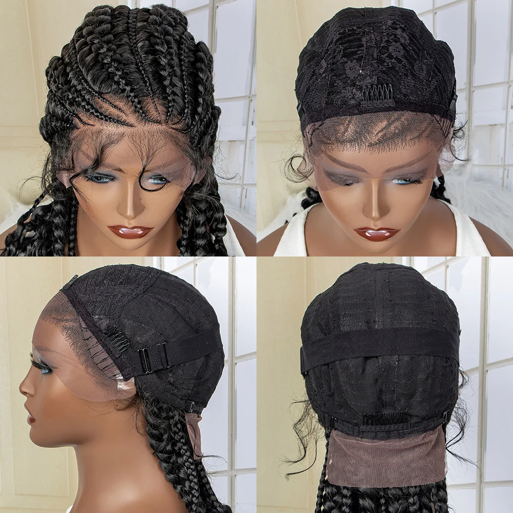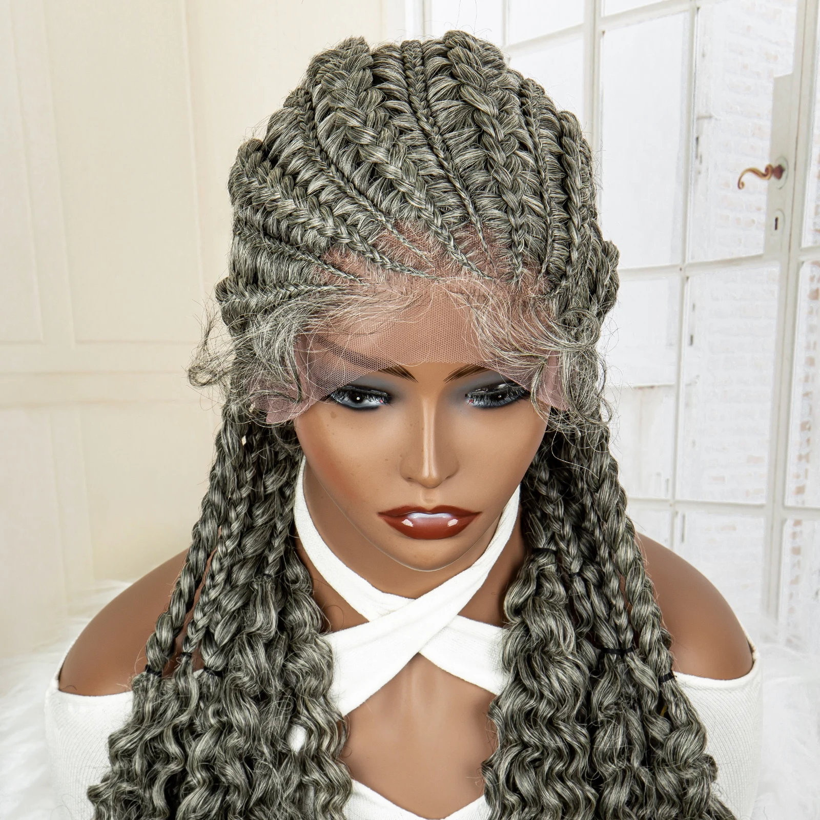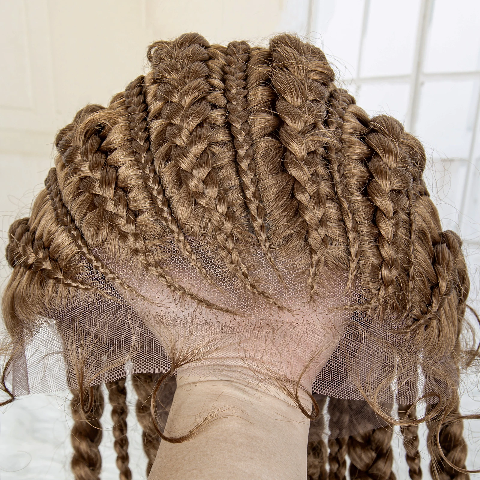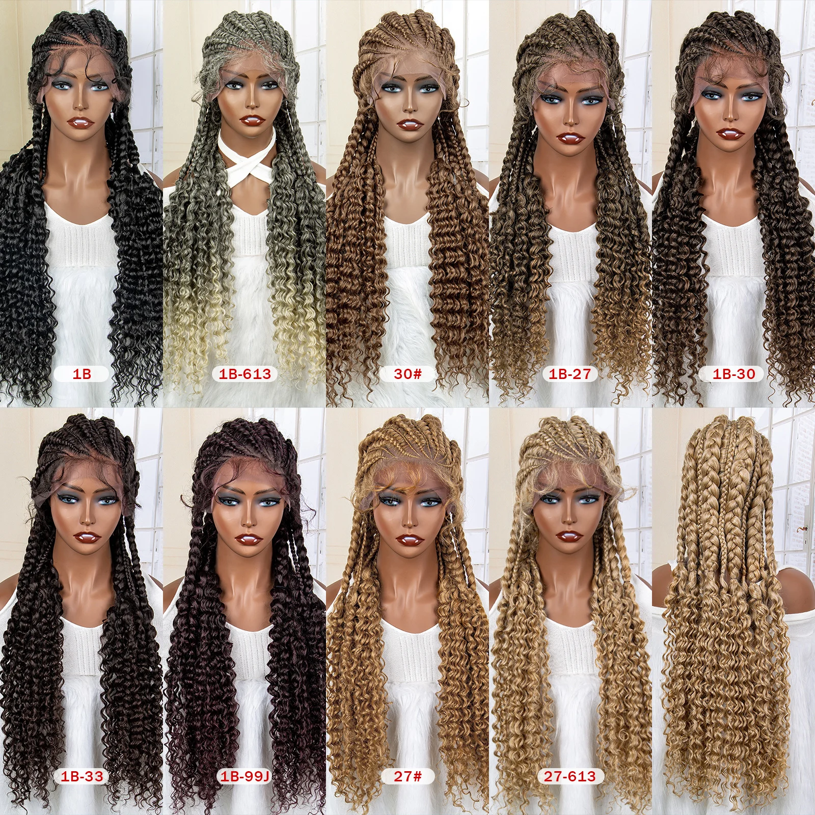 New Arrival Curly Synthetic Lace Frontal Box Braided Wigs 28 Inches Long Natural Curly Hair with Baby Hair for Black Women