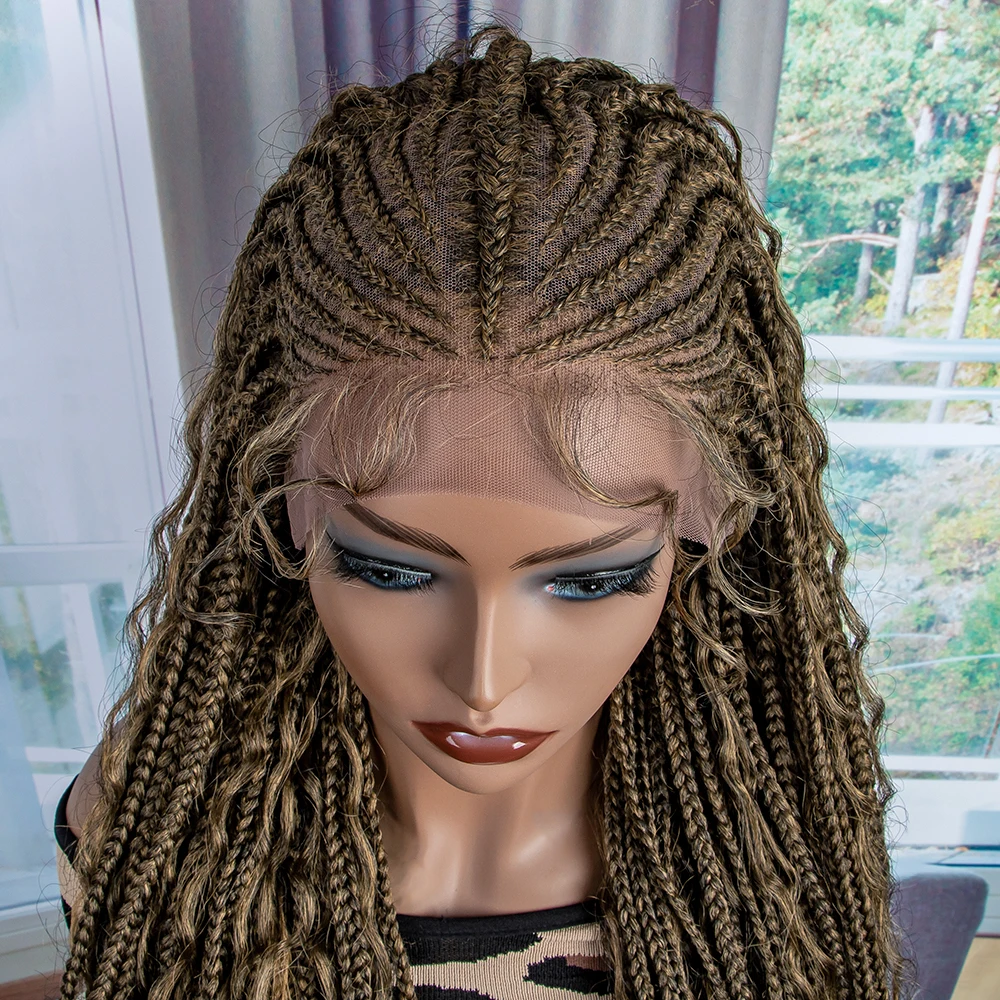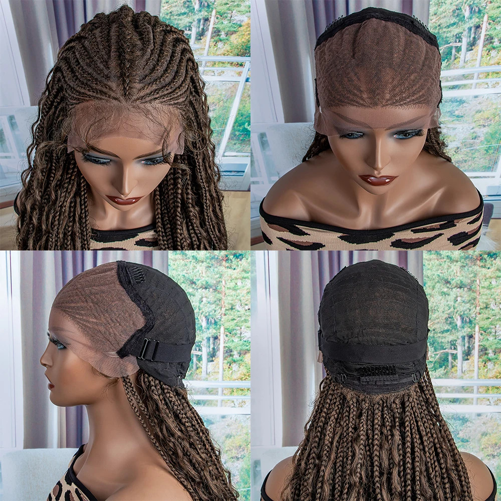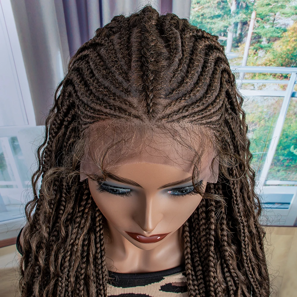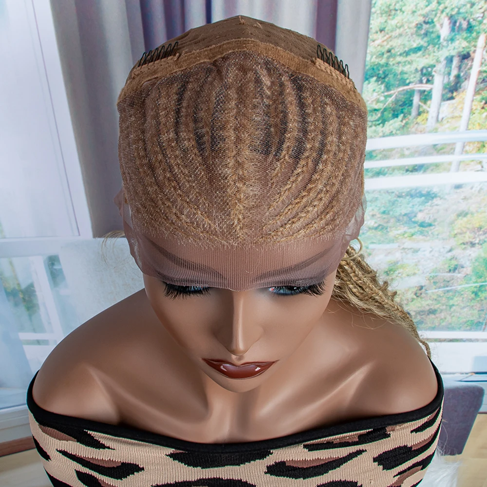 New Braided Wigs Synthetic Lace Front Wigs 28 inches Braided Wigs With Baby Hair Brown Transparent Lace Front Wigs