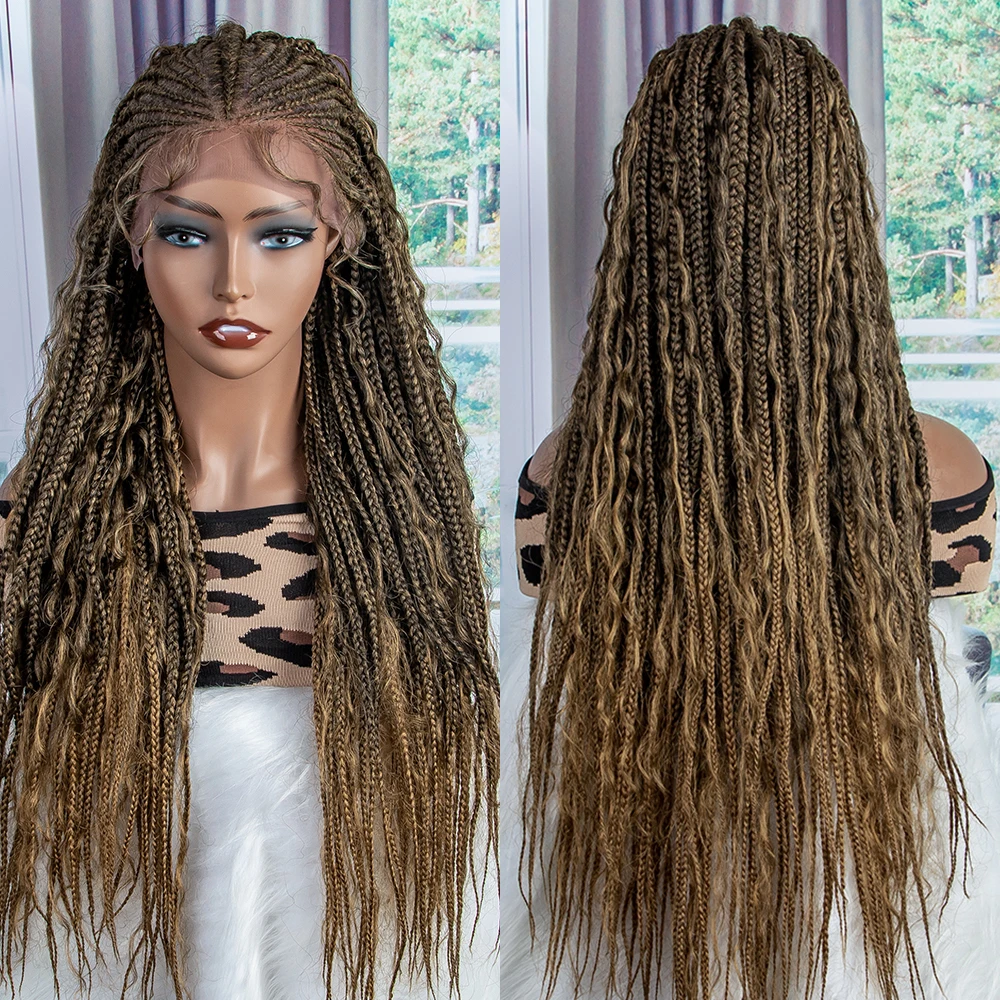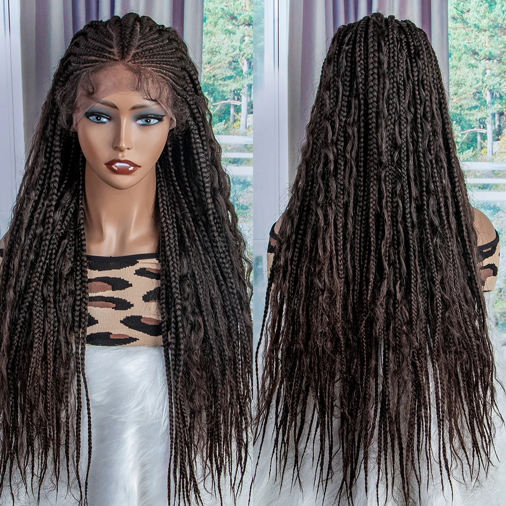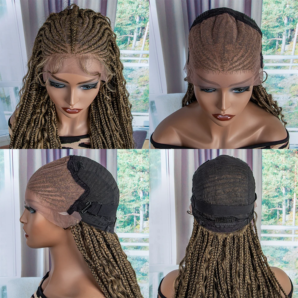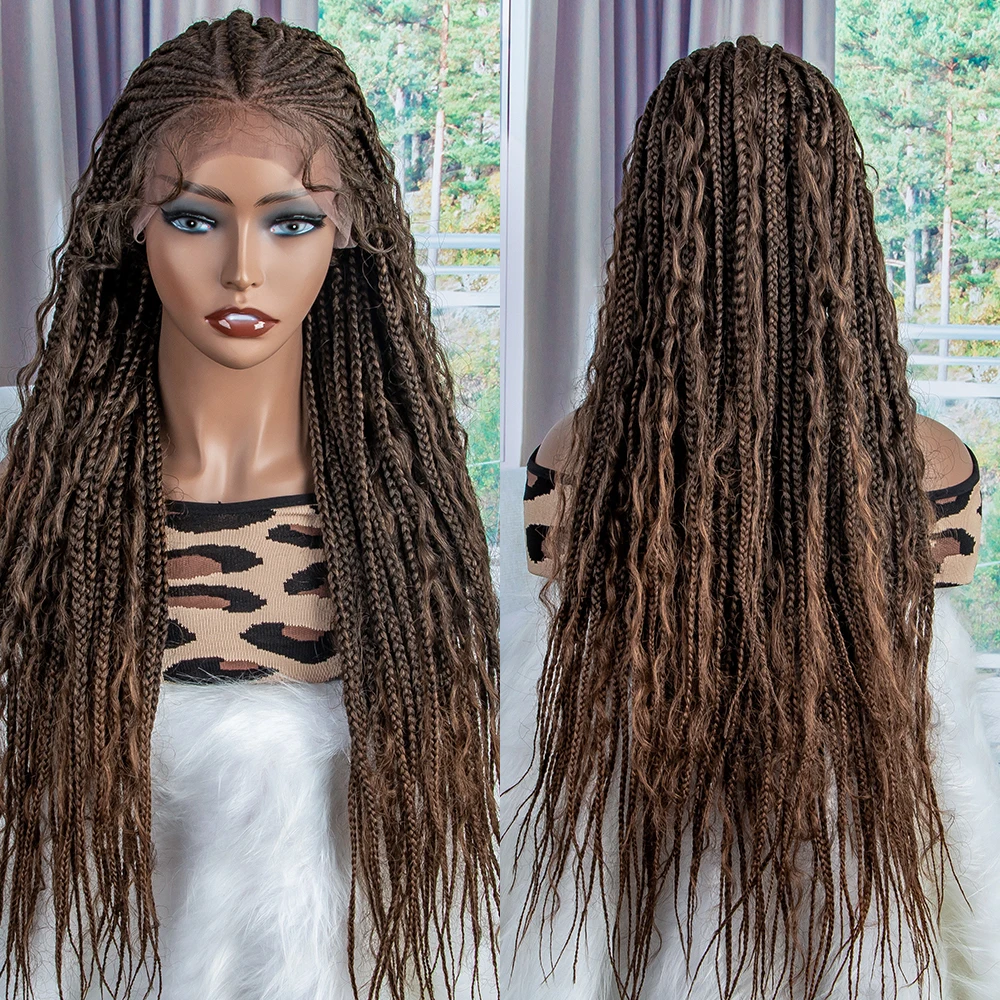New Braided Wigs Synthetic Lace Front Wigs 28 inches Braided Wigs With Baby Hair Brown Transparent Lace Front Wigs