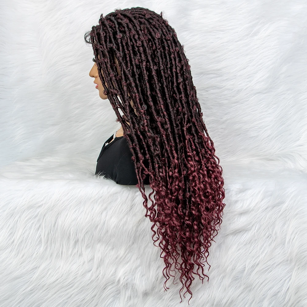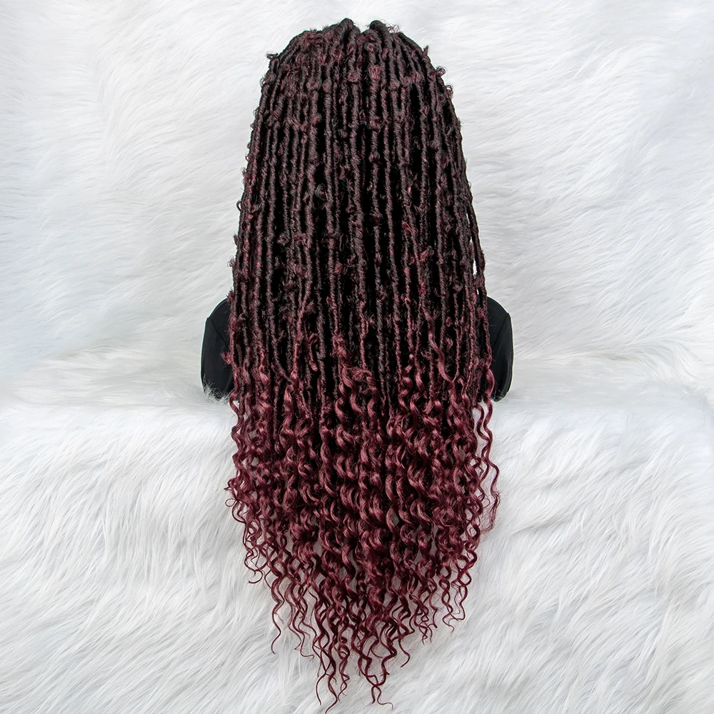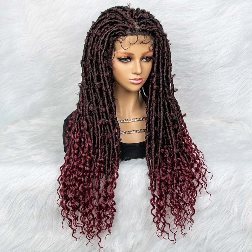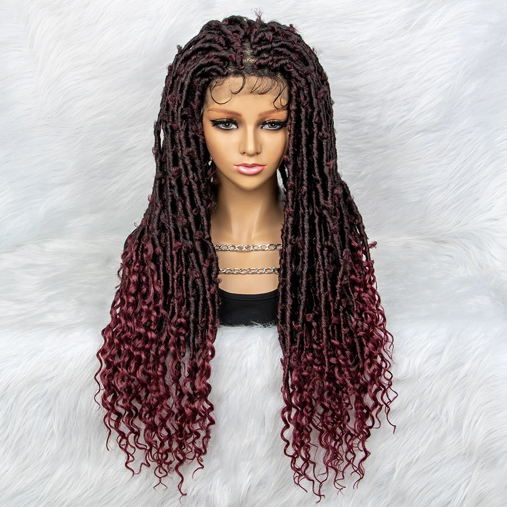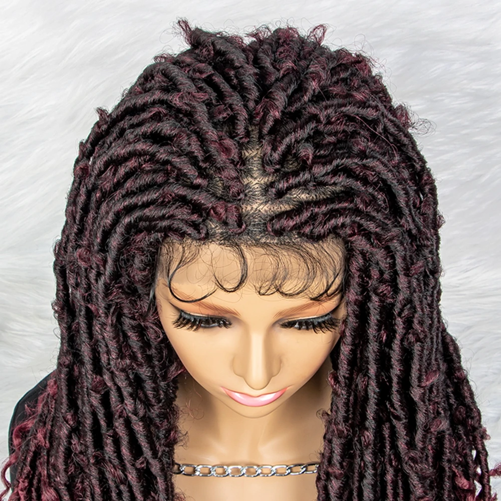 New Burgundy Color Synthetic Lace Front Wig Braided Wigs With Baby Hair Braided Lace Front Wigs Water Wave Wigs Dreadlocks Wigs