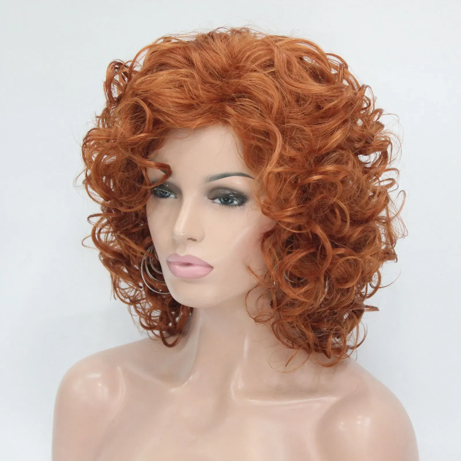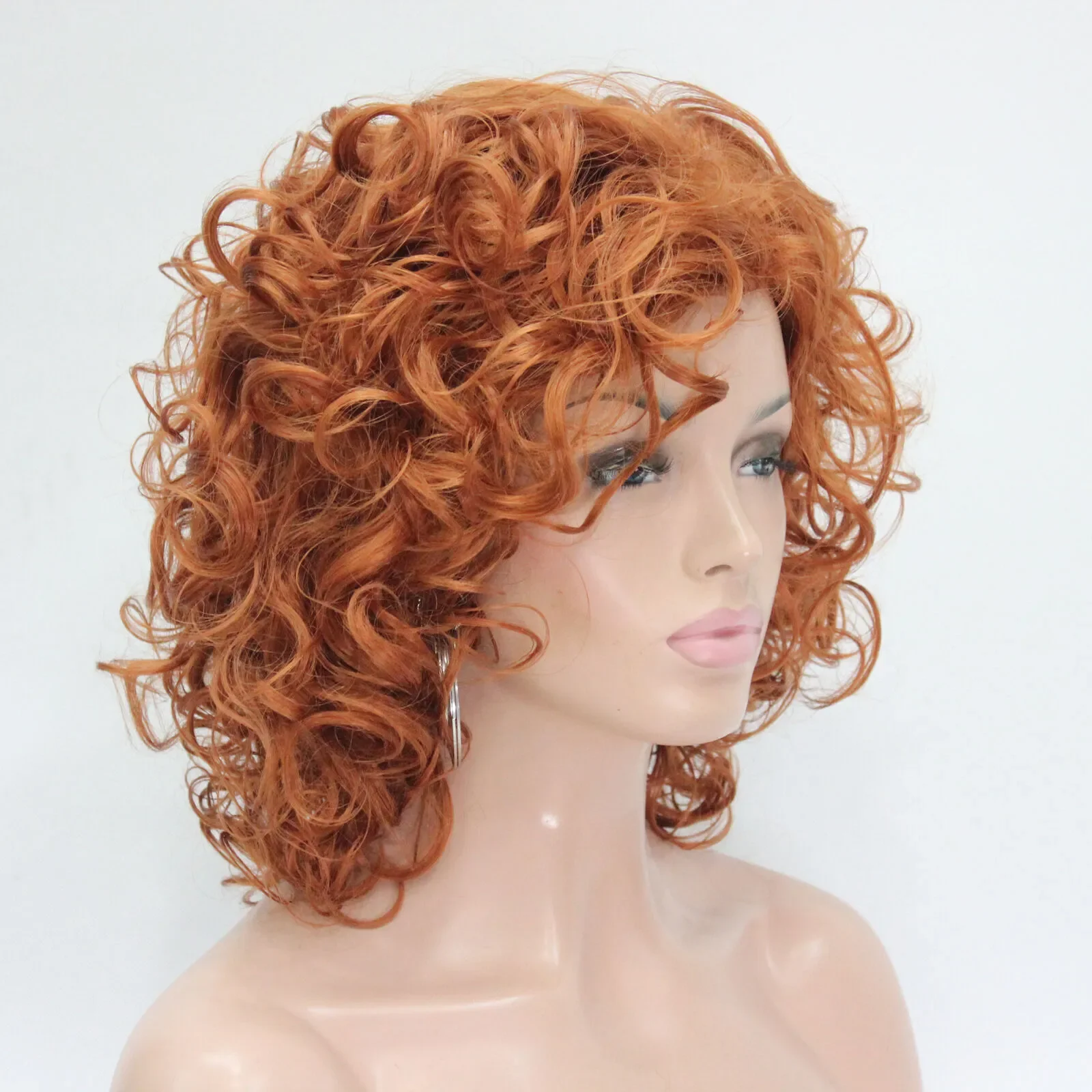 New Fashion 40cm Length Orange Brown Curly Synthetic Hair Women's Cosplay Wig