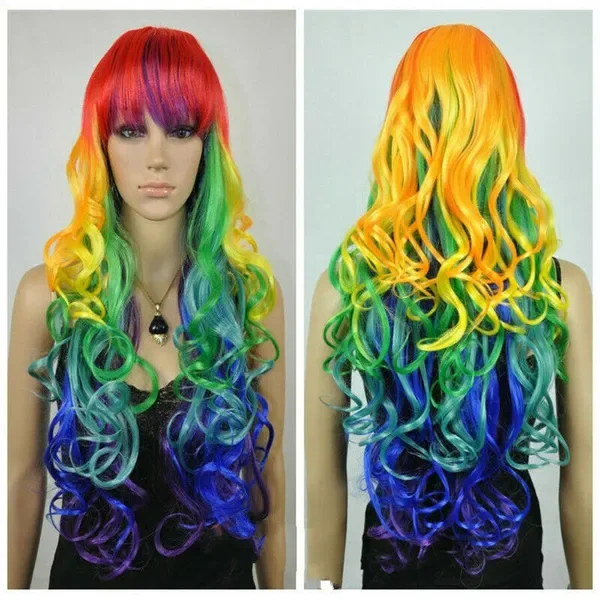 New Ladies Wig Long Multi-colour Curly Women's Cosplay Party Hair Wig