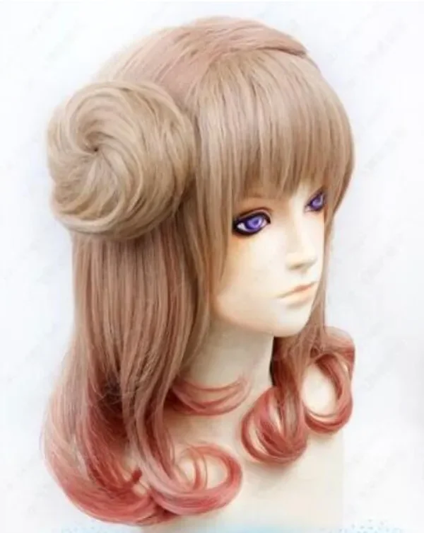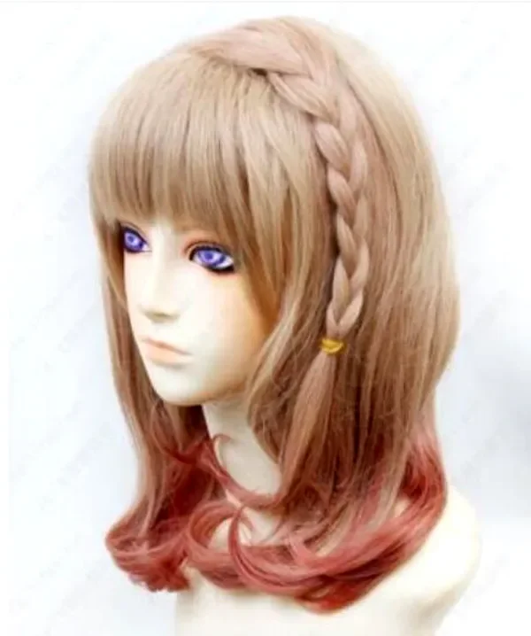 New long Medium brown mix pink Party Braided Styled Hair Wig