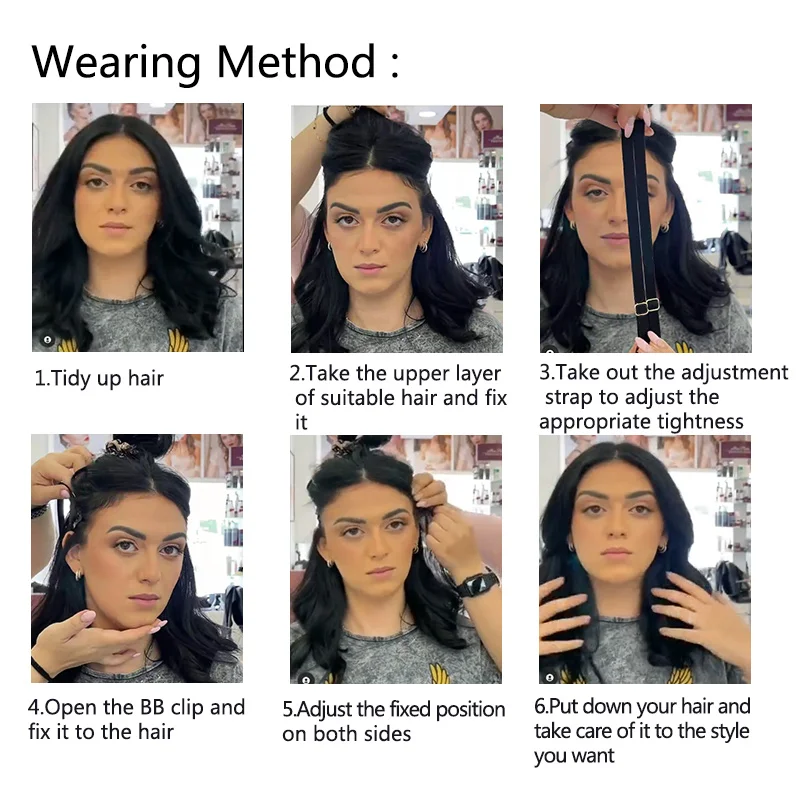 4.While Pulling One Section Back, Clip The Lift Band Right Above The Ear. Pull Your Band Along The Hair Line To The Other Size , To Clip