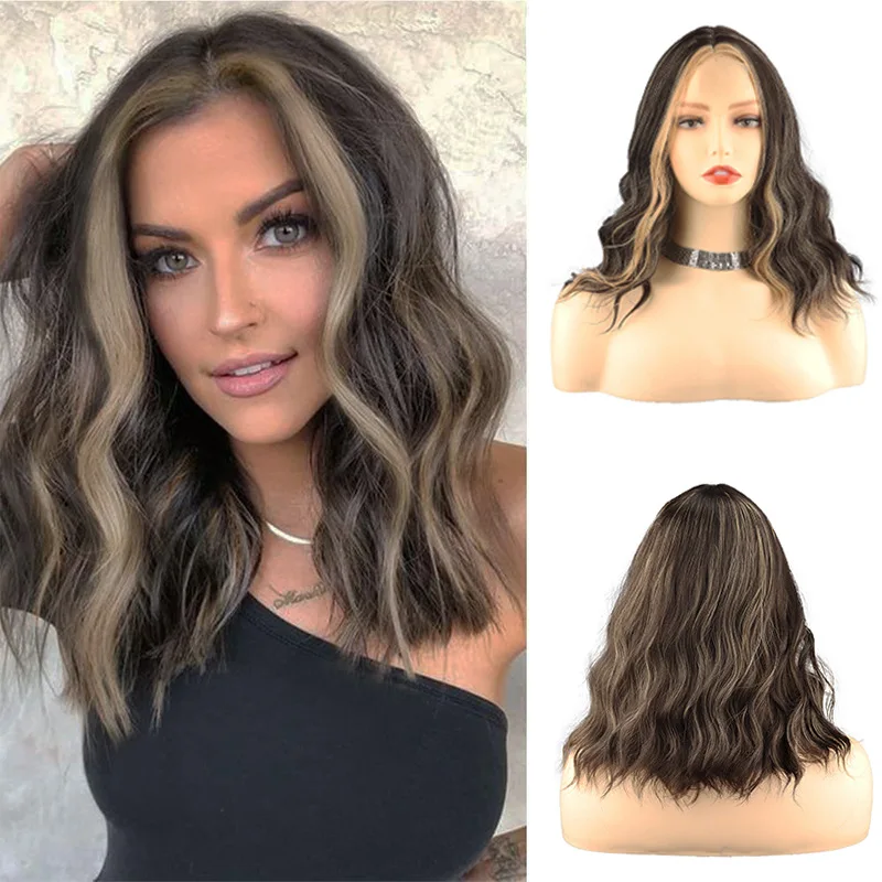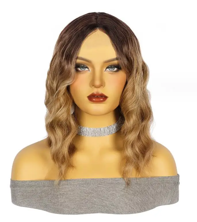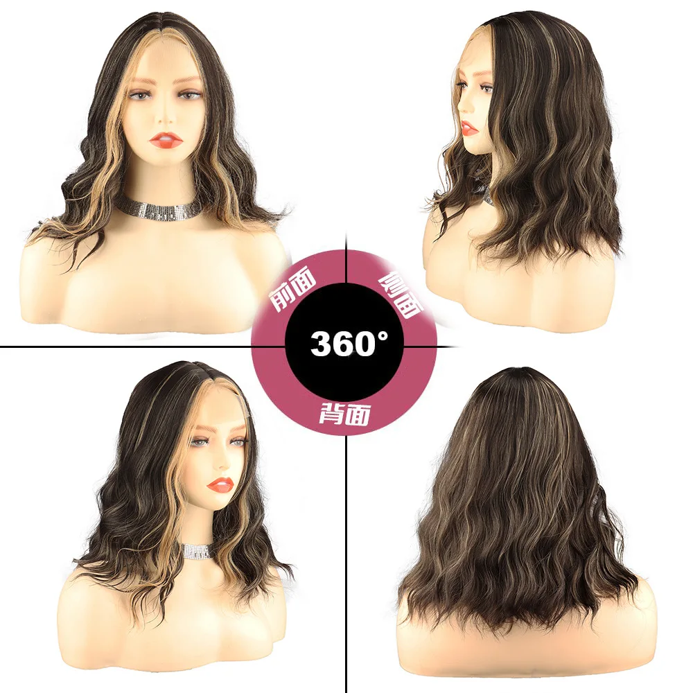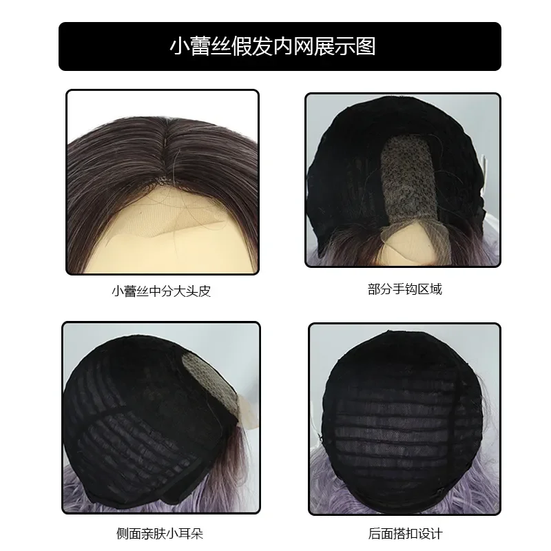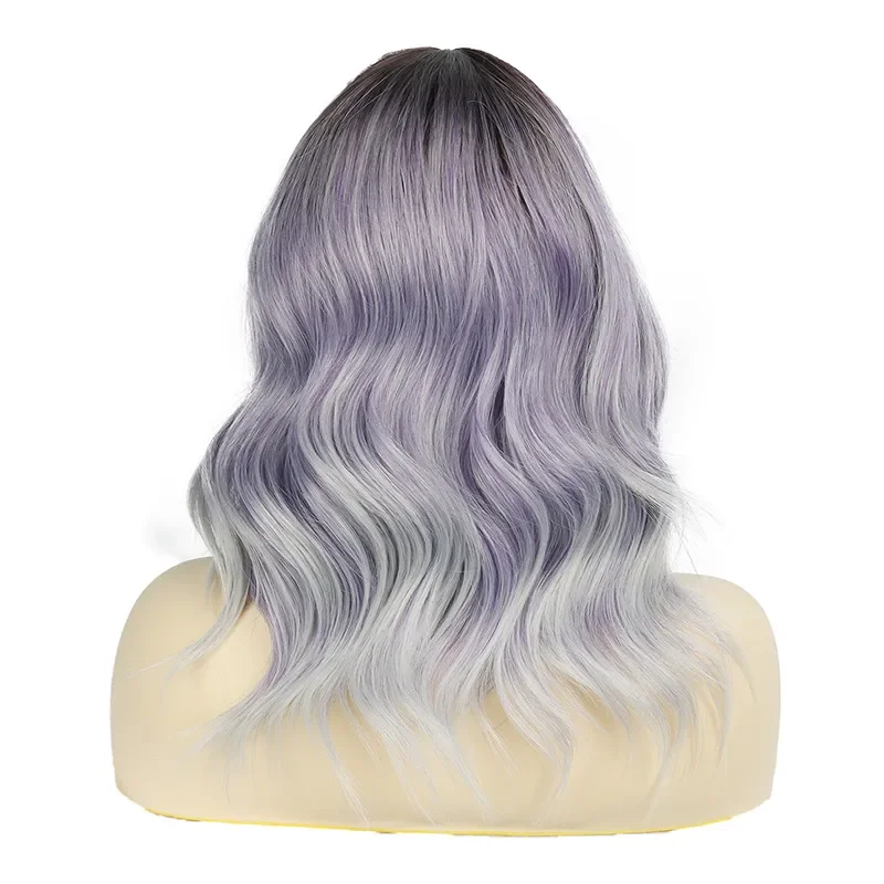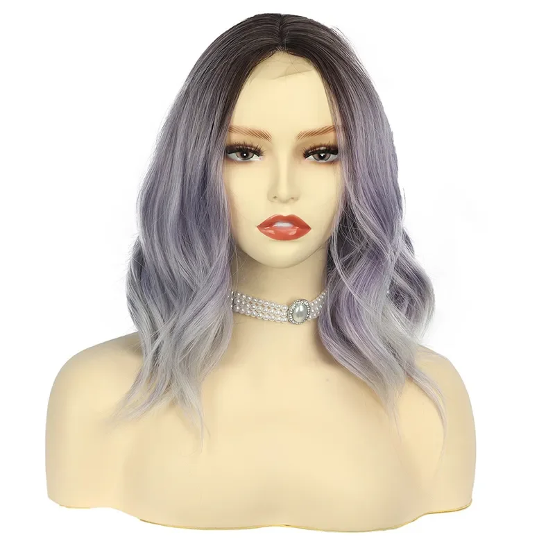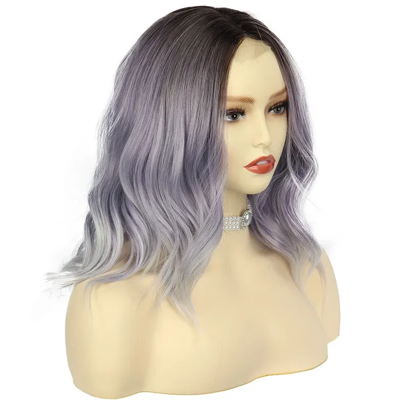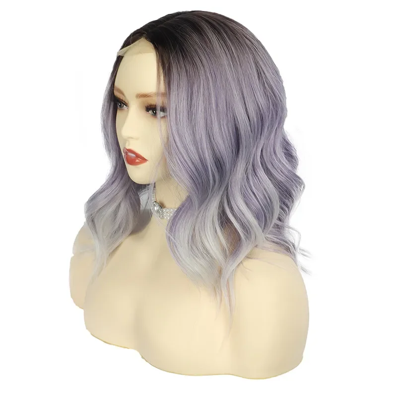 New Sexy 5Color Short Middle grey & Purple Brown Part Ombre Wavy small Lace Women's Cosplay Party Synthetic hair wigs
