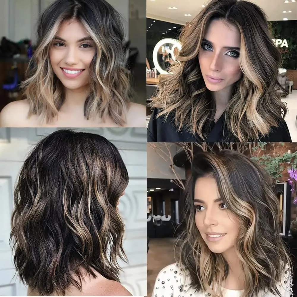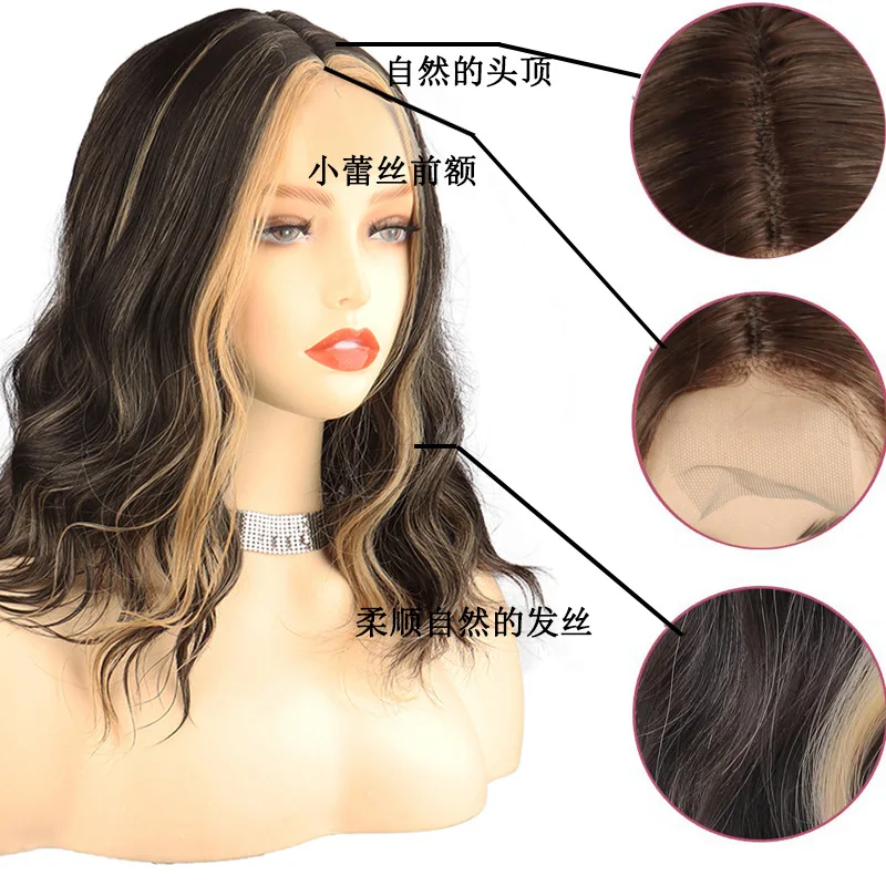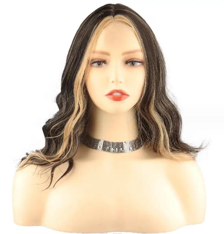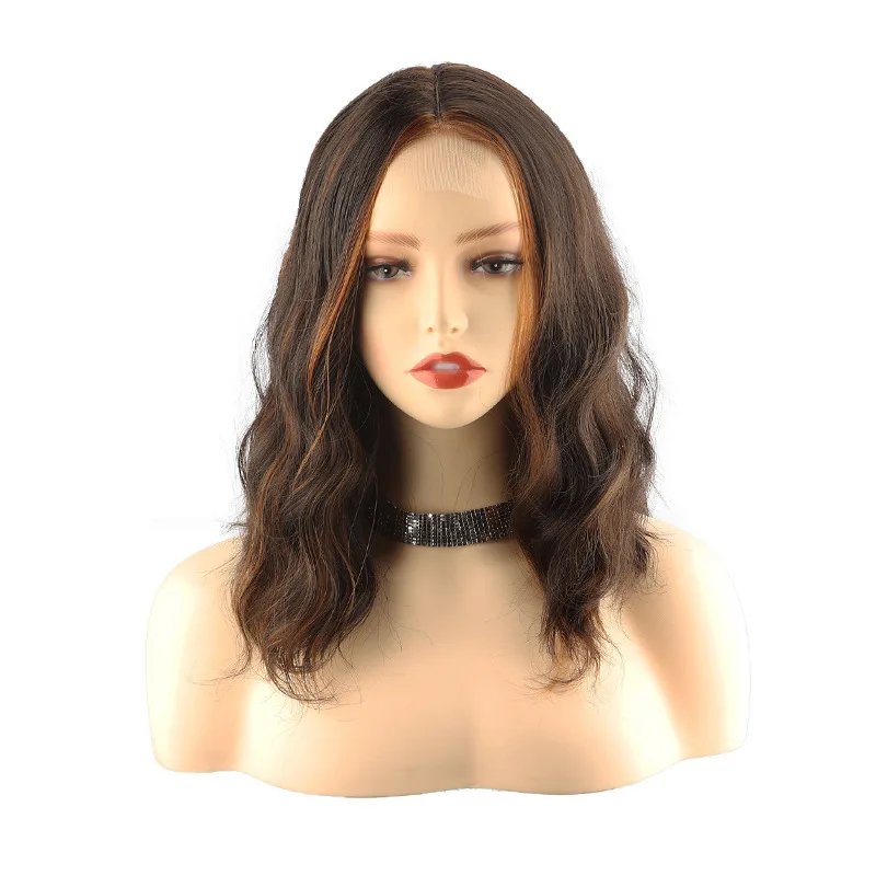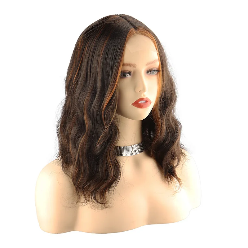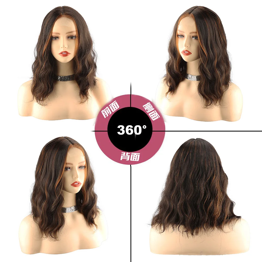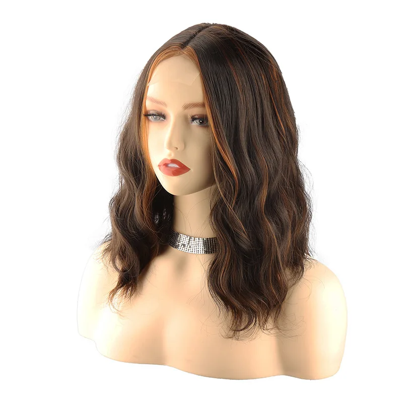 New Sexy 5Color Short Middle grey & Purple Brown Part Ombre Wavy small Lace Women's Cosplay Party Synthetic hair wigs