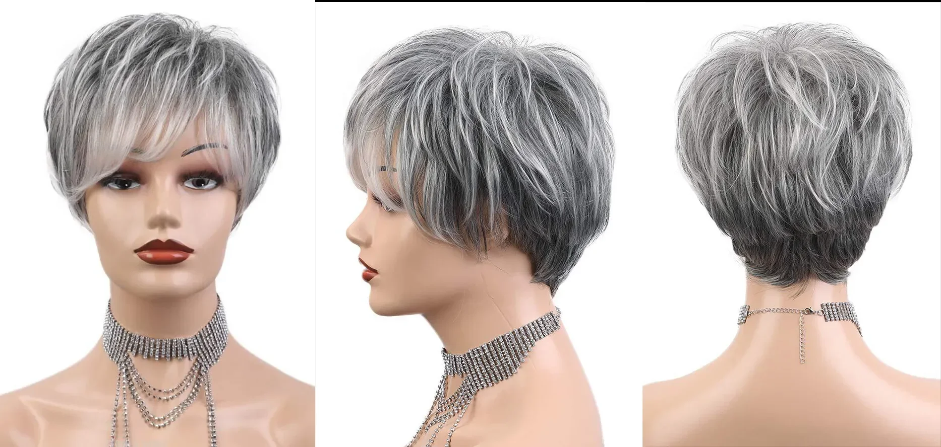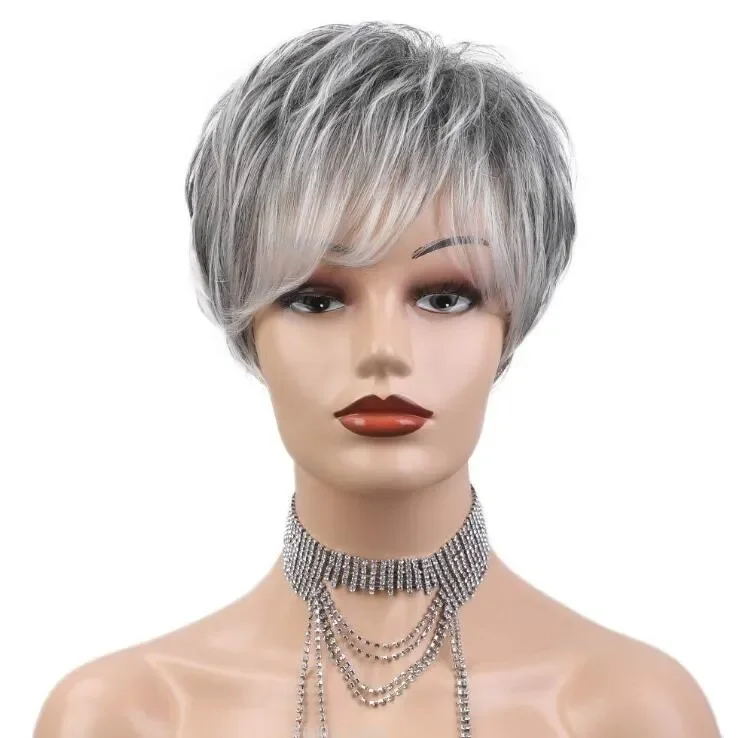 New Sexy Short mix grey Women's Cosplay Party Synthetic hair wigs