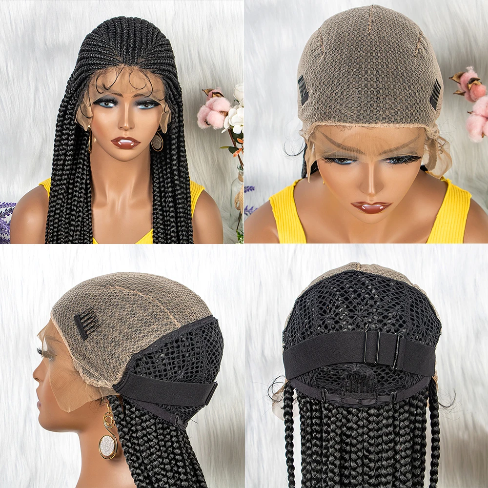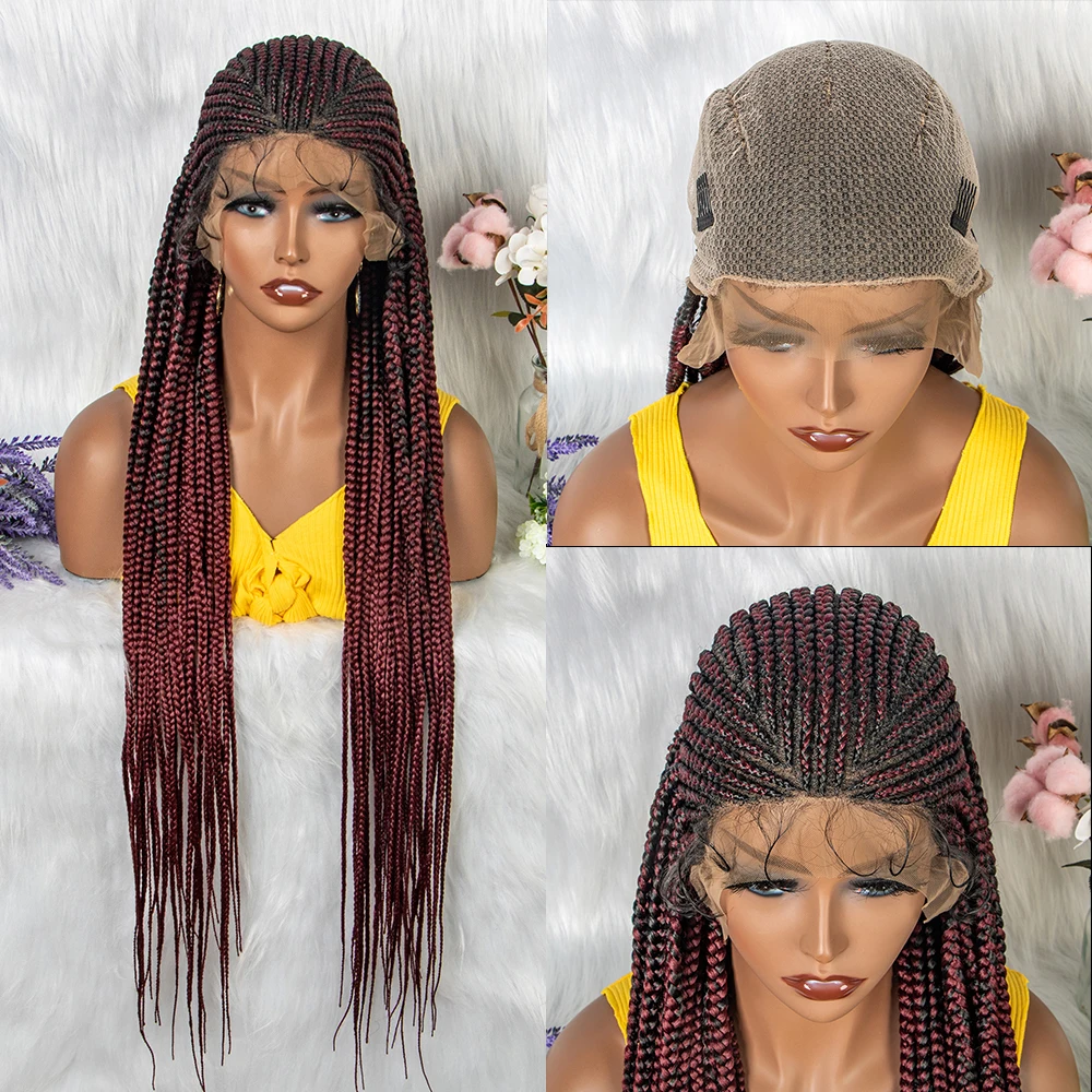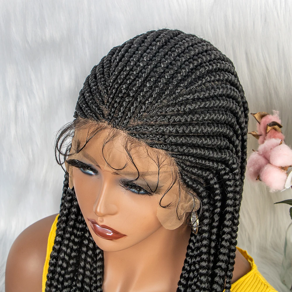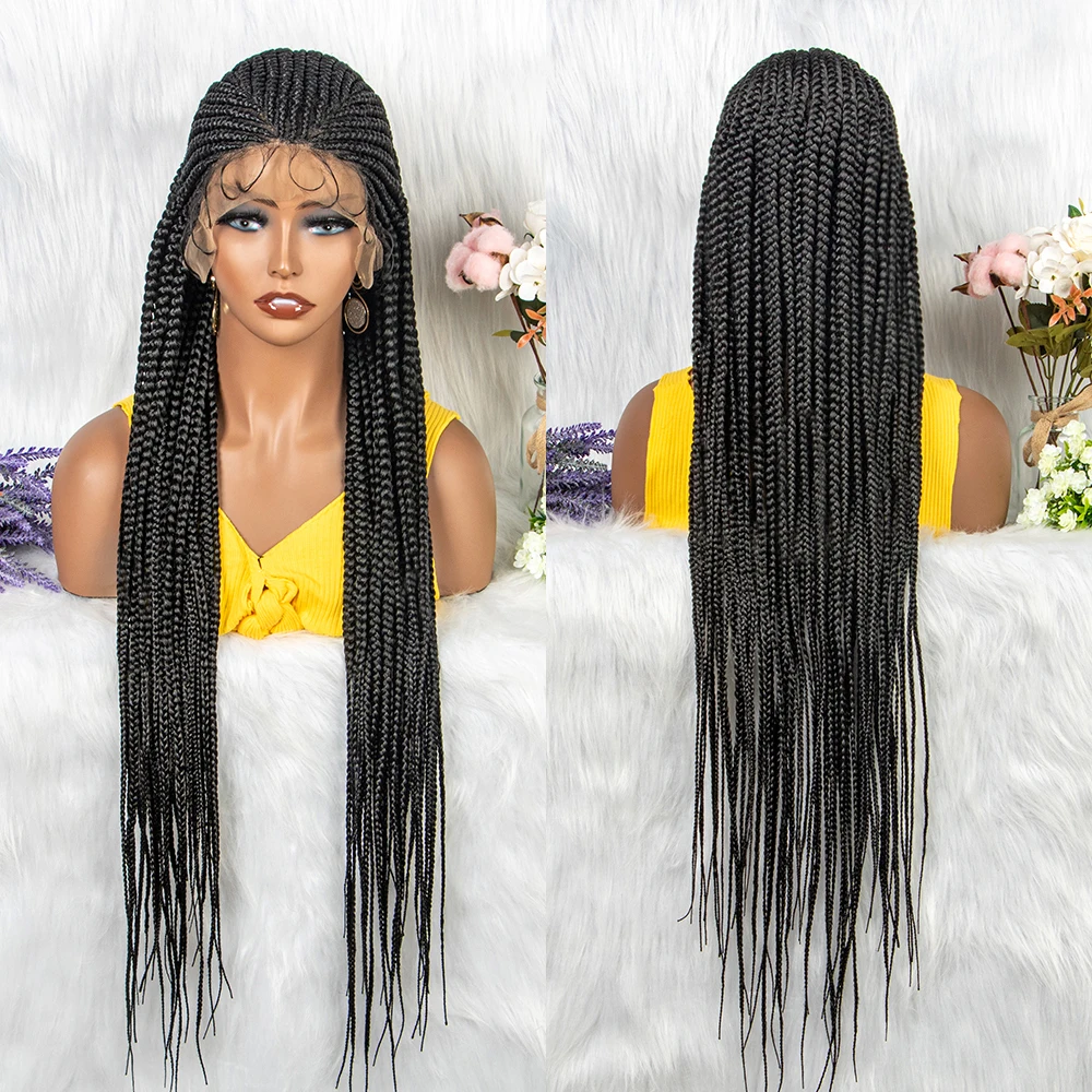 New Style 36 Inches Synthetic Cornrow Braided Wigs Box Braided Lace Front Wig with Baby Hair Frontal Afro Wig for Black Women