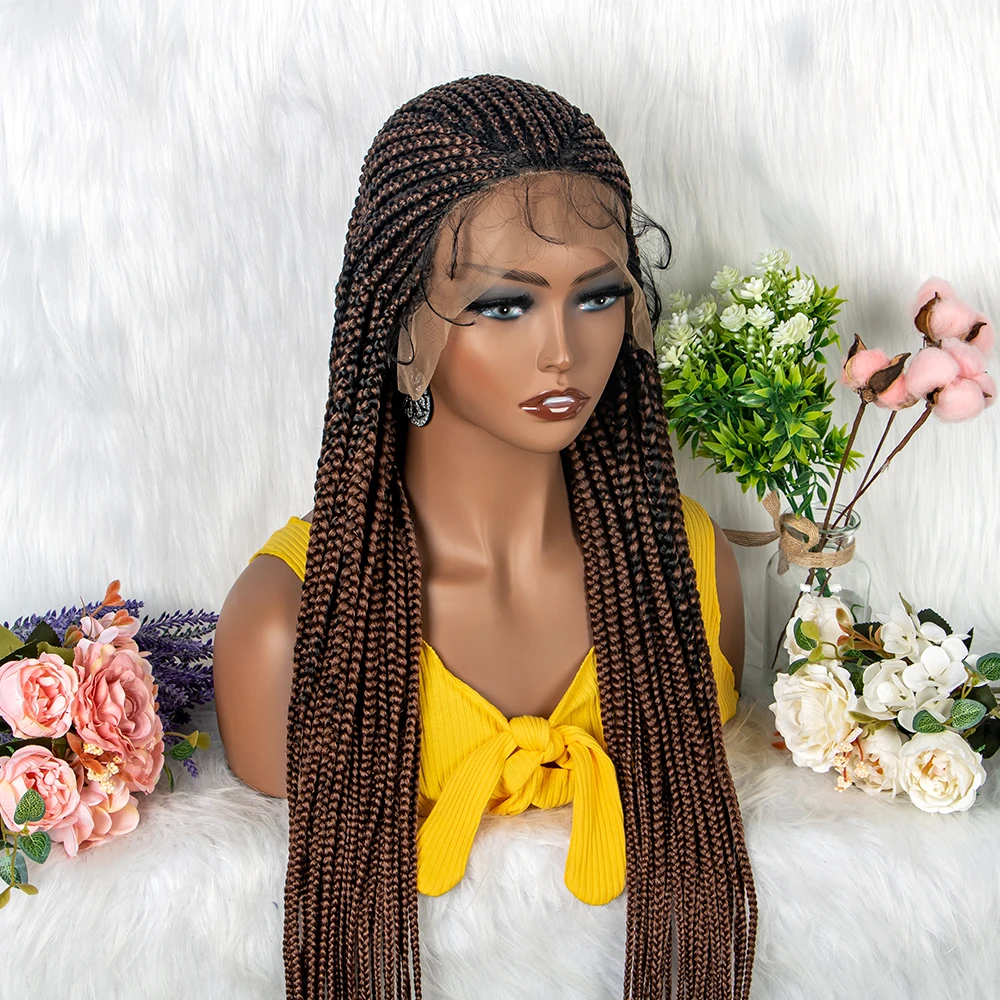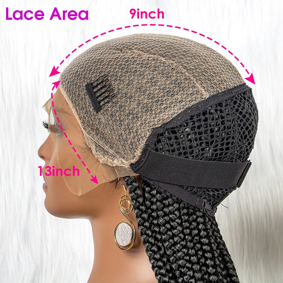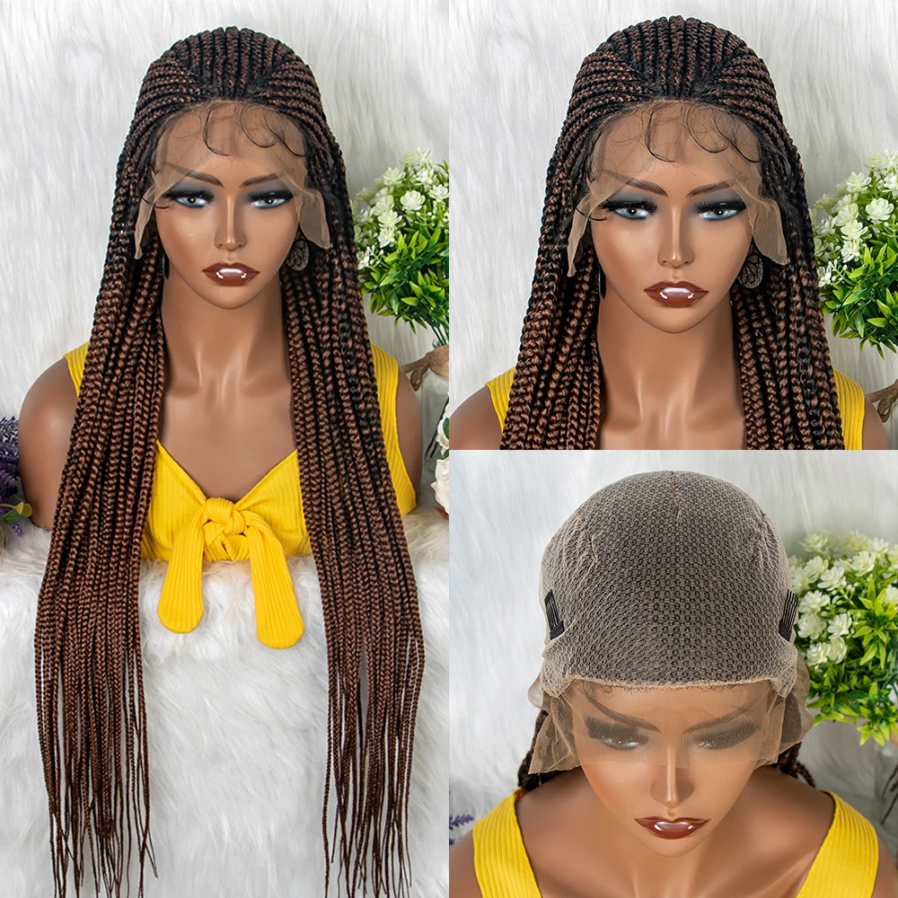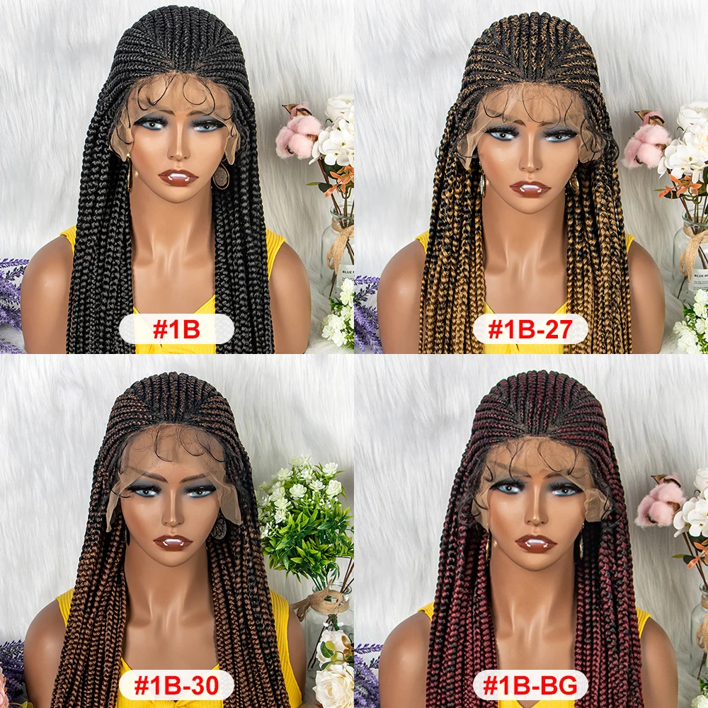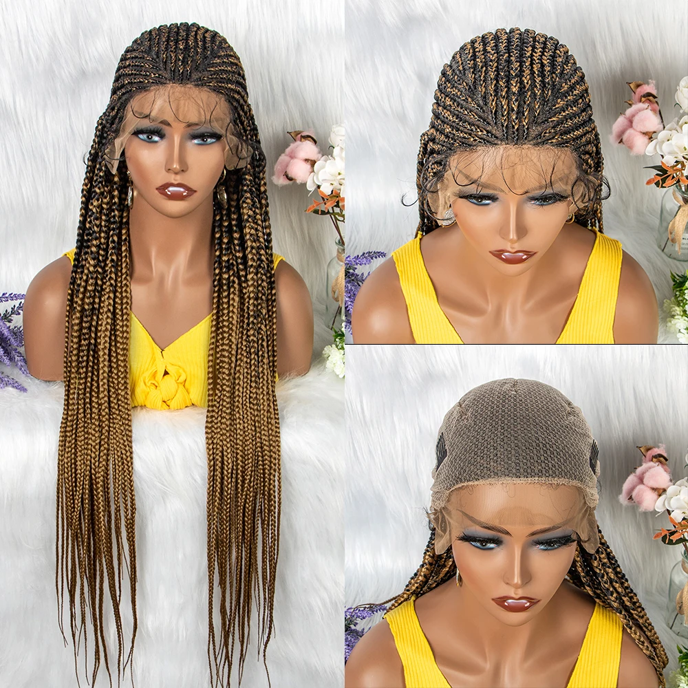 New Style 36 Inches Synthetic Cornrow Braided Wigs Box Braided Lace Front Wig with Baby Hair Frontal Afro Wig for Black Women