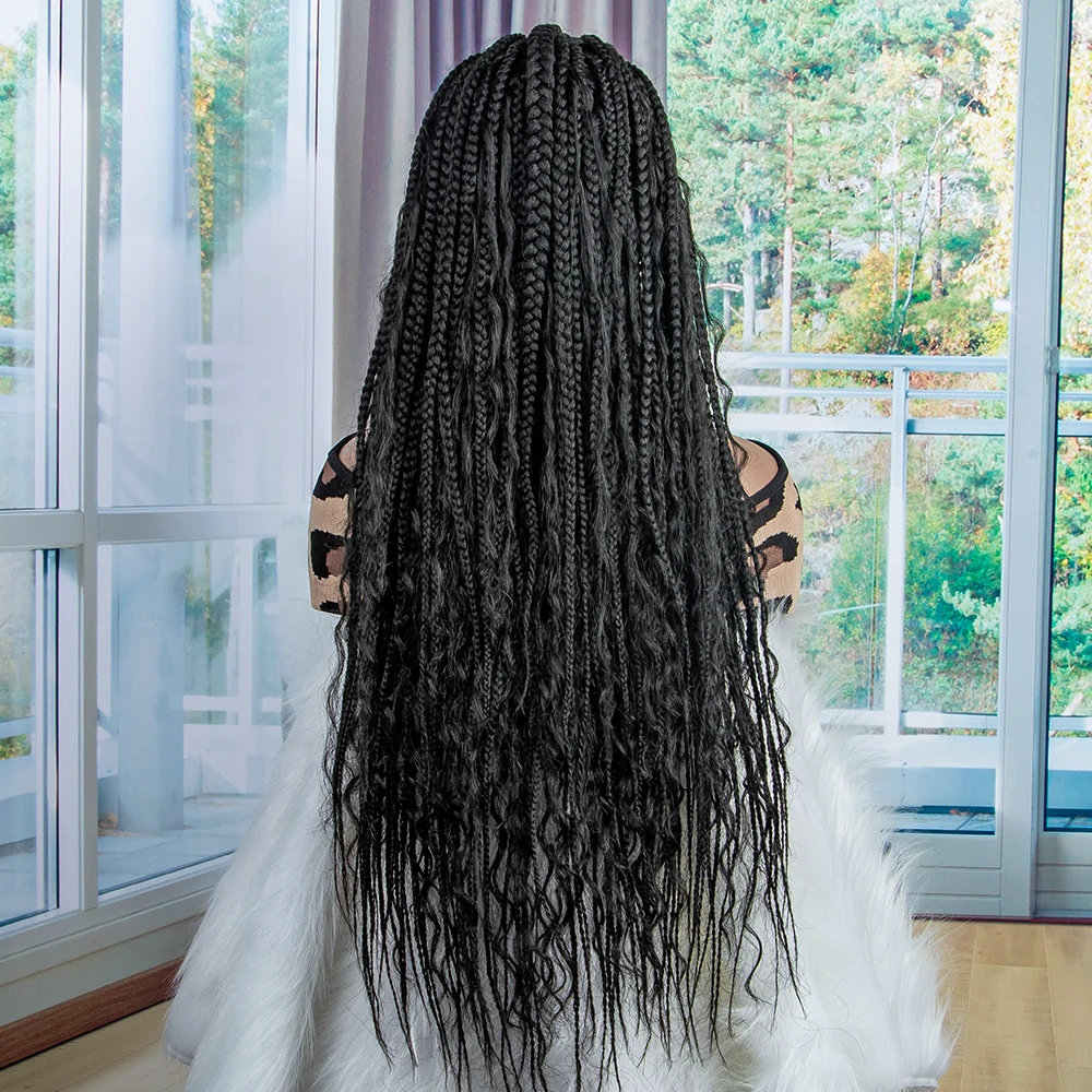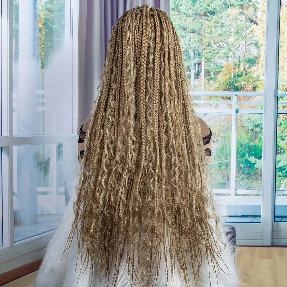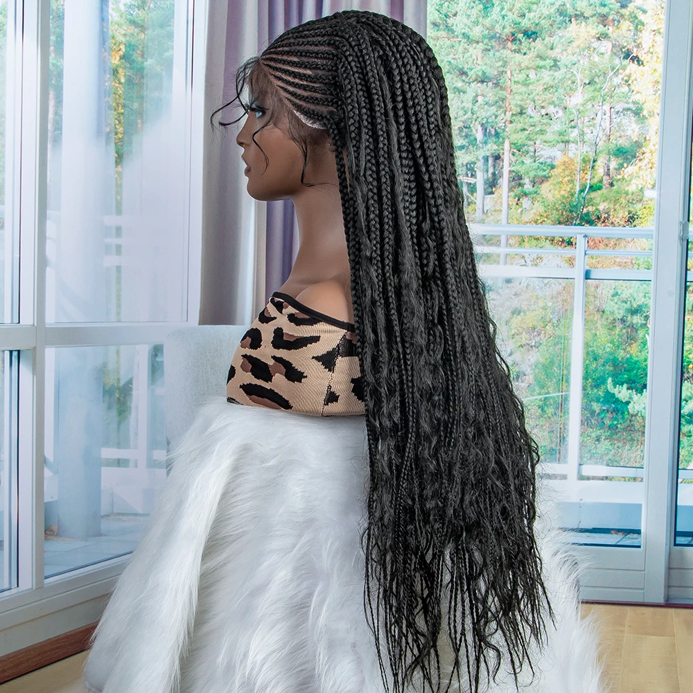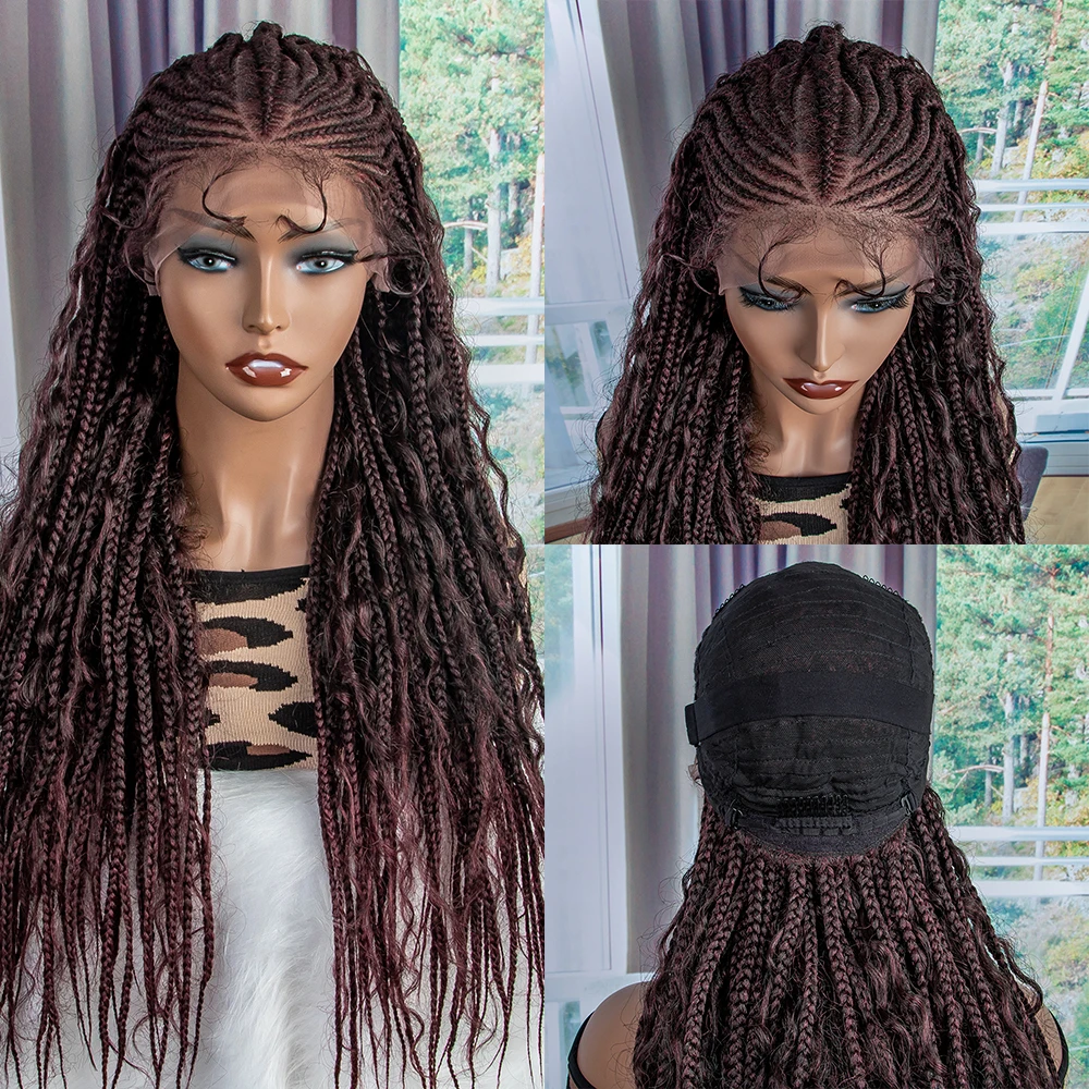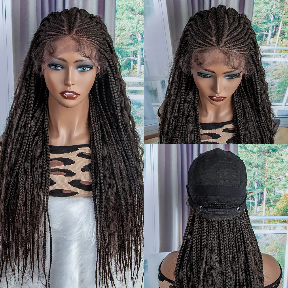 New Synthetic Lace Front Cornrow Long Wig 28 inches Box Braiding Wigs Frontal for Black Woman Long Curly Hair Braided Wigs